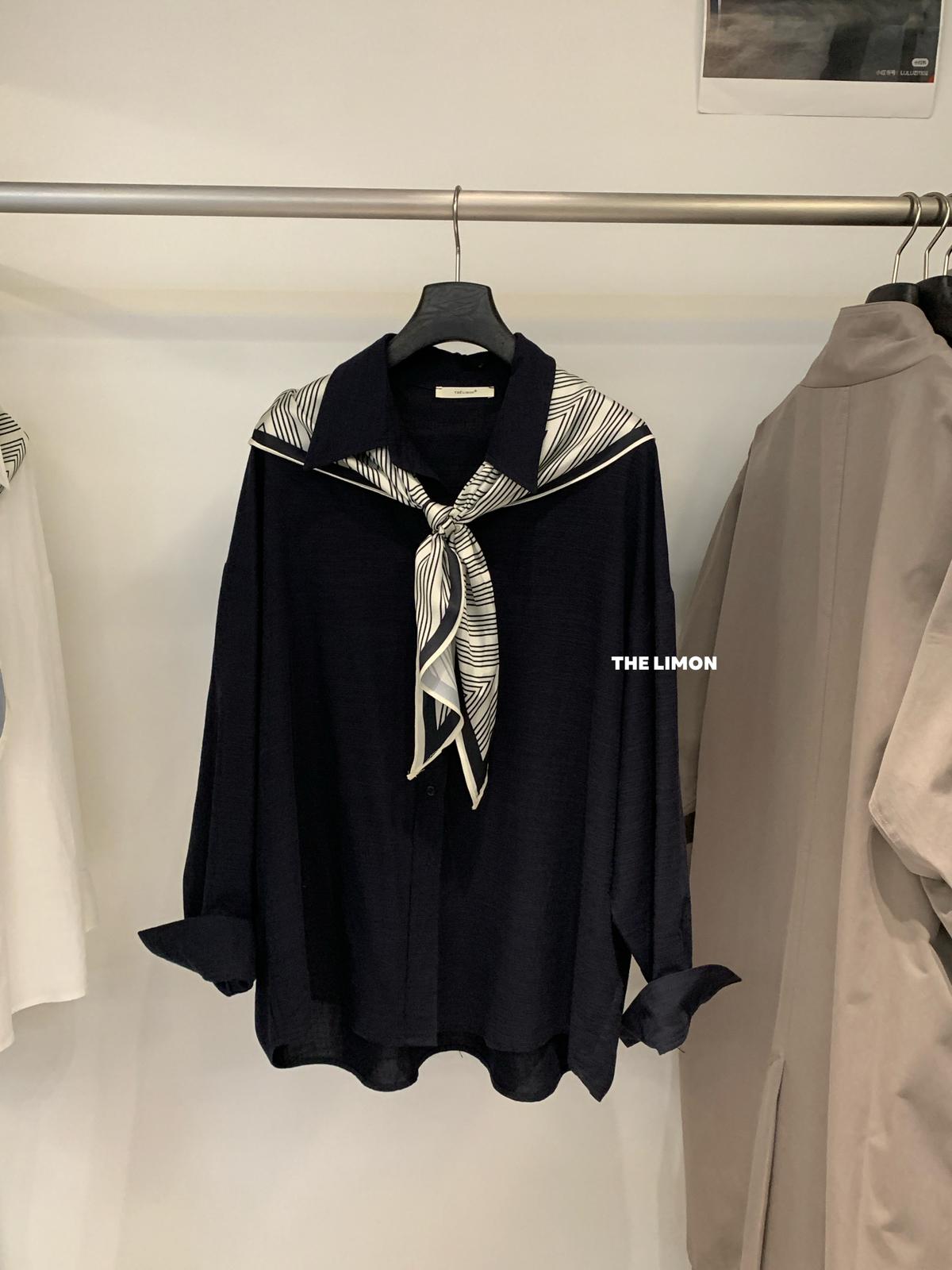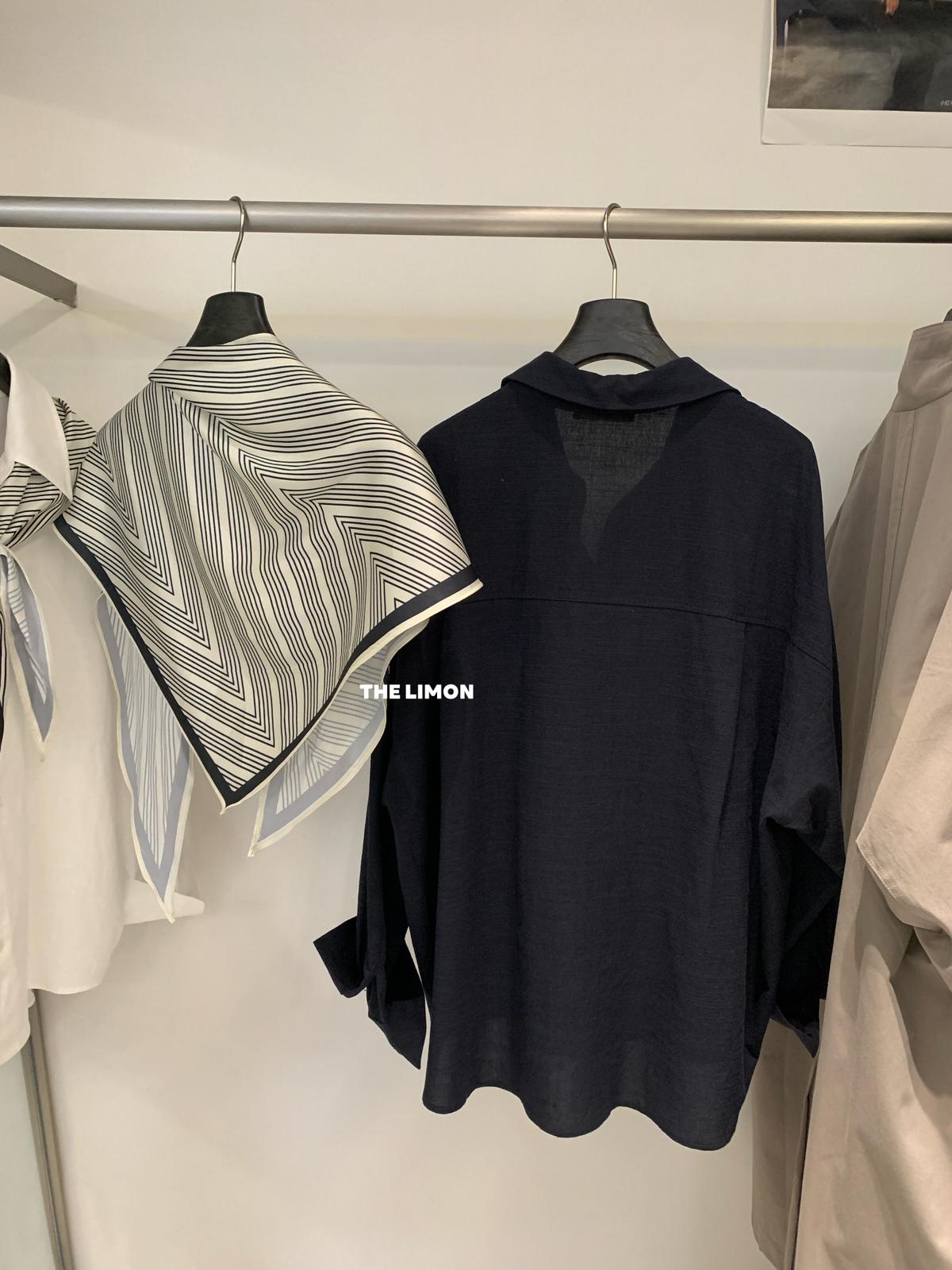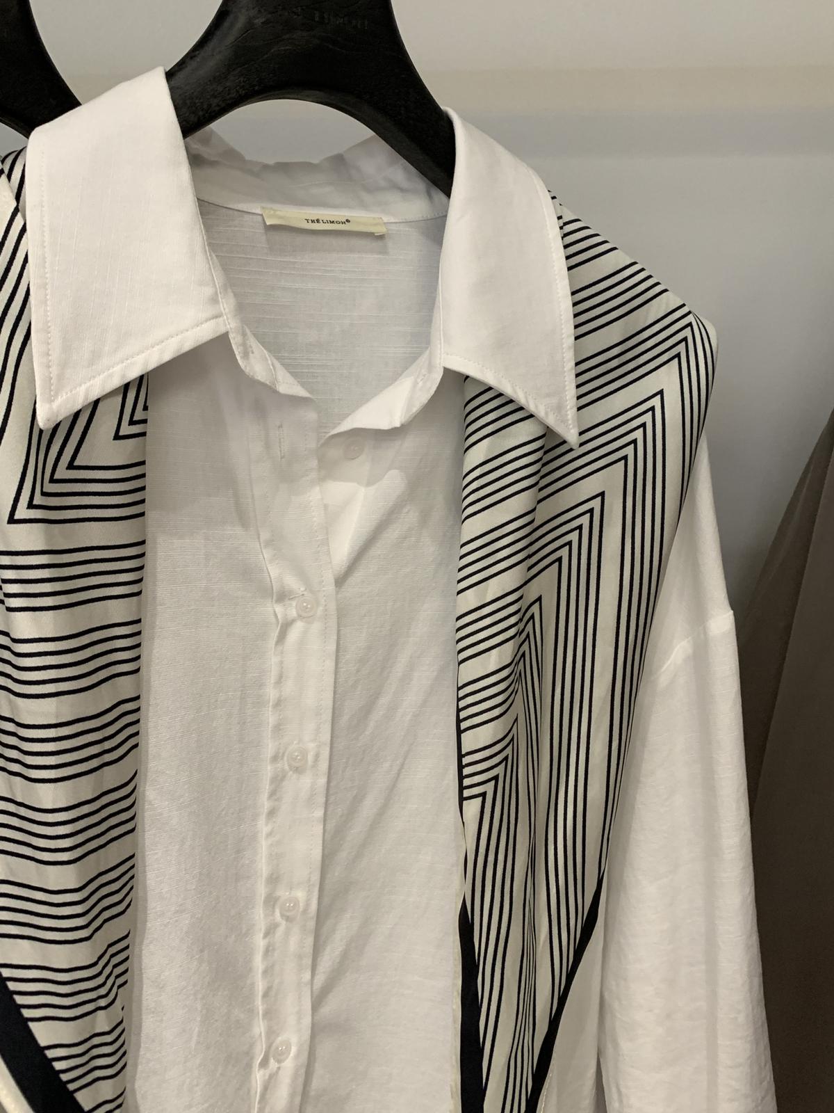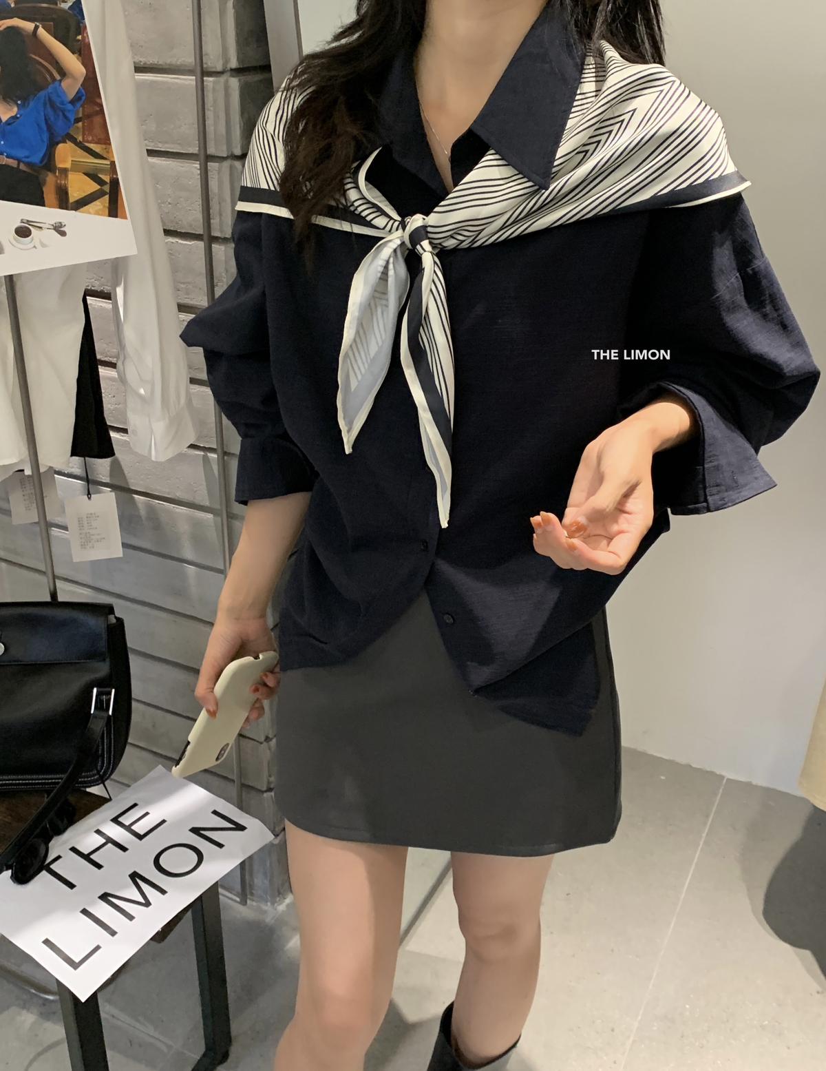 【C6671】寬鬆慵懶麻料防曬襯衫(配絲巾)