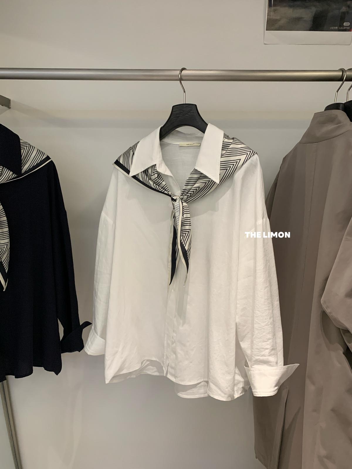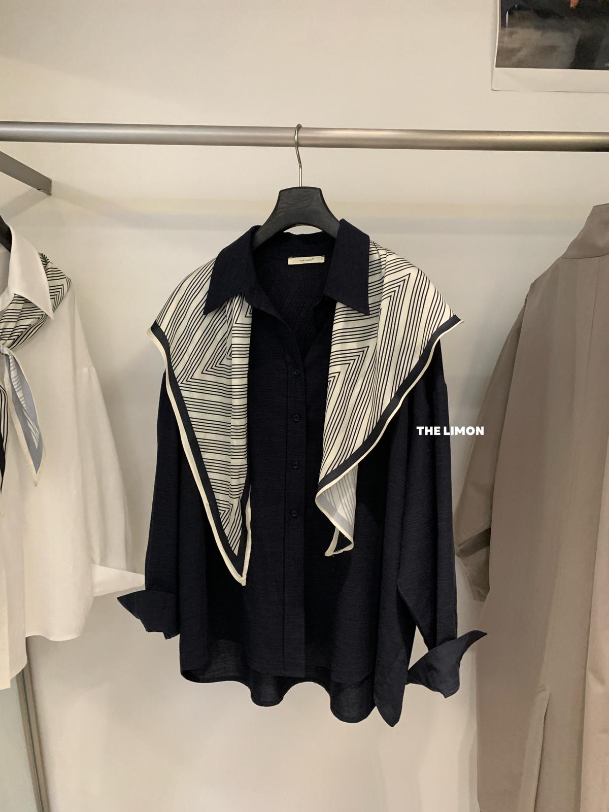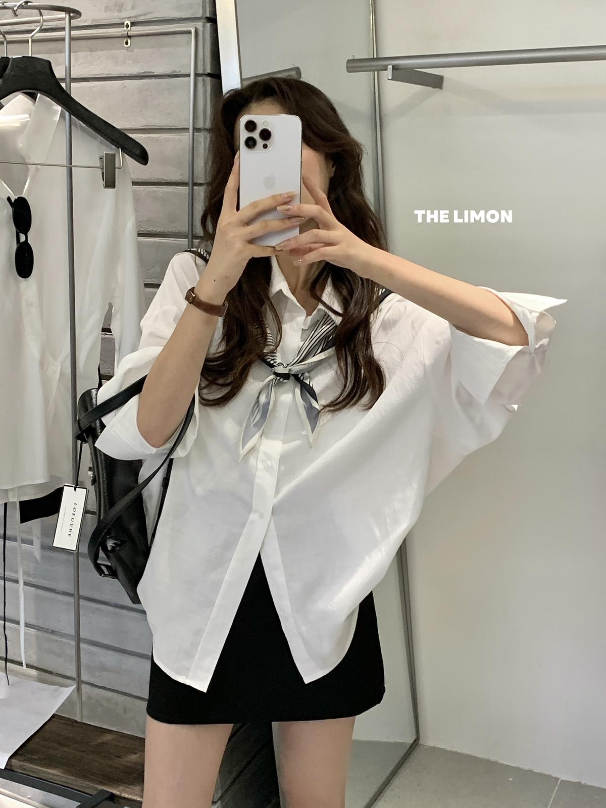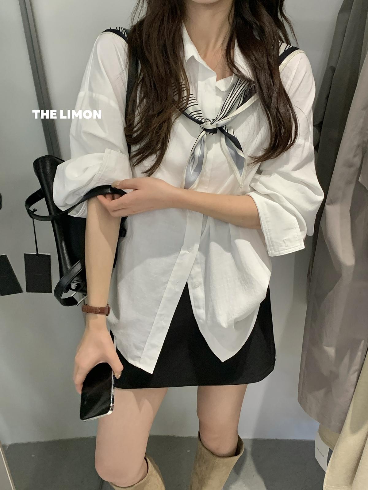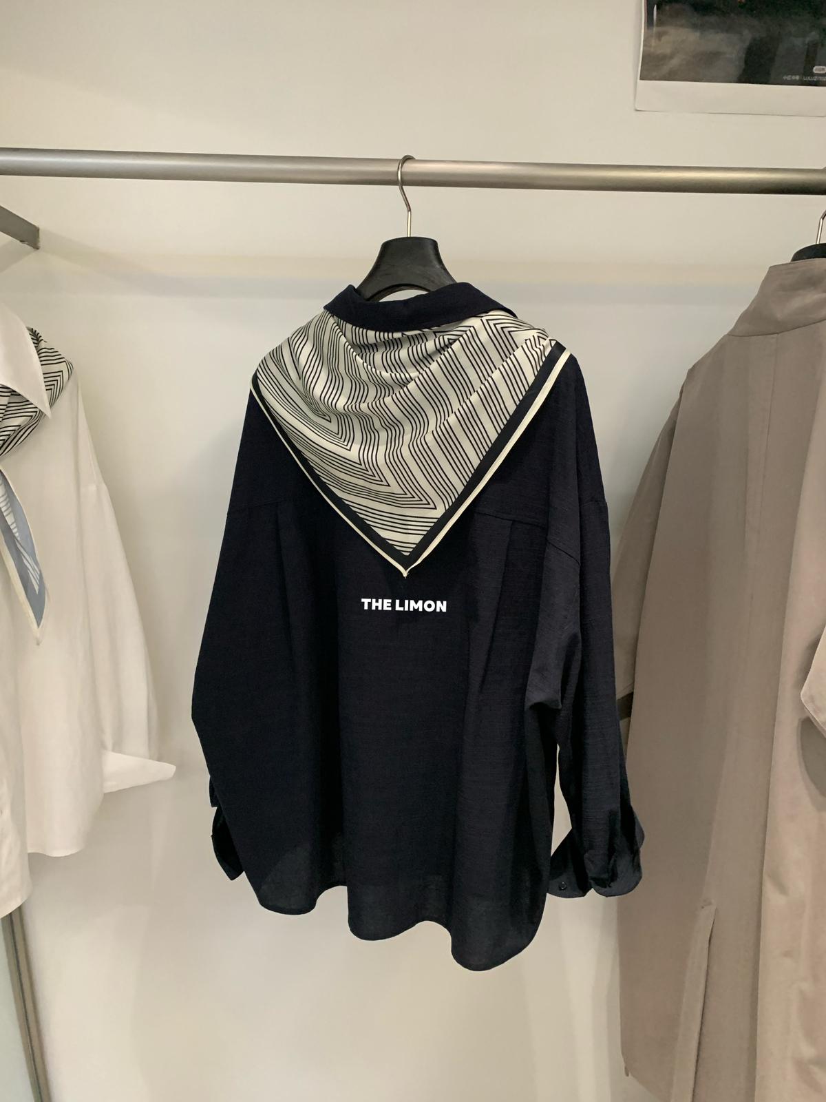 【C6671】寬鬆慵懶麻料防曬襯衫(配絲巾)