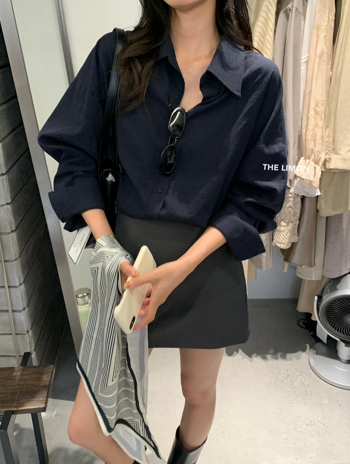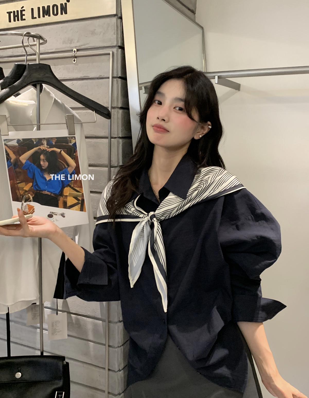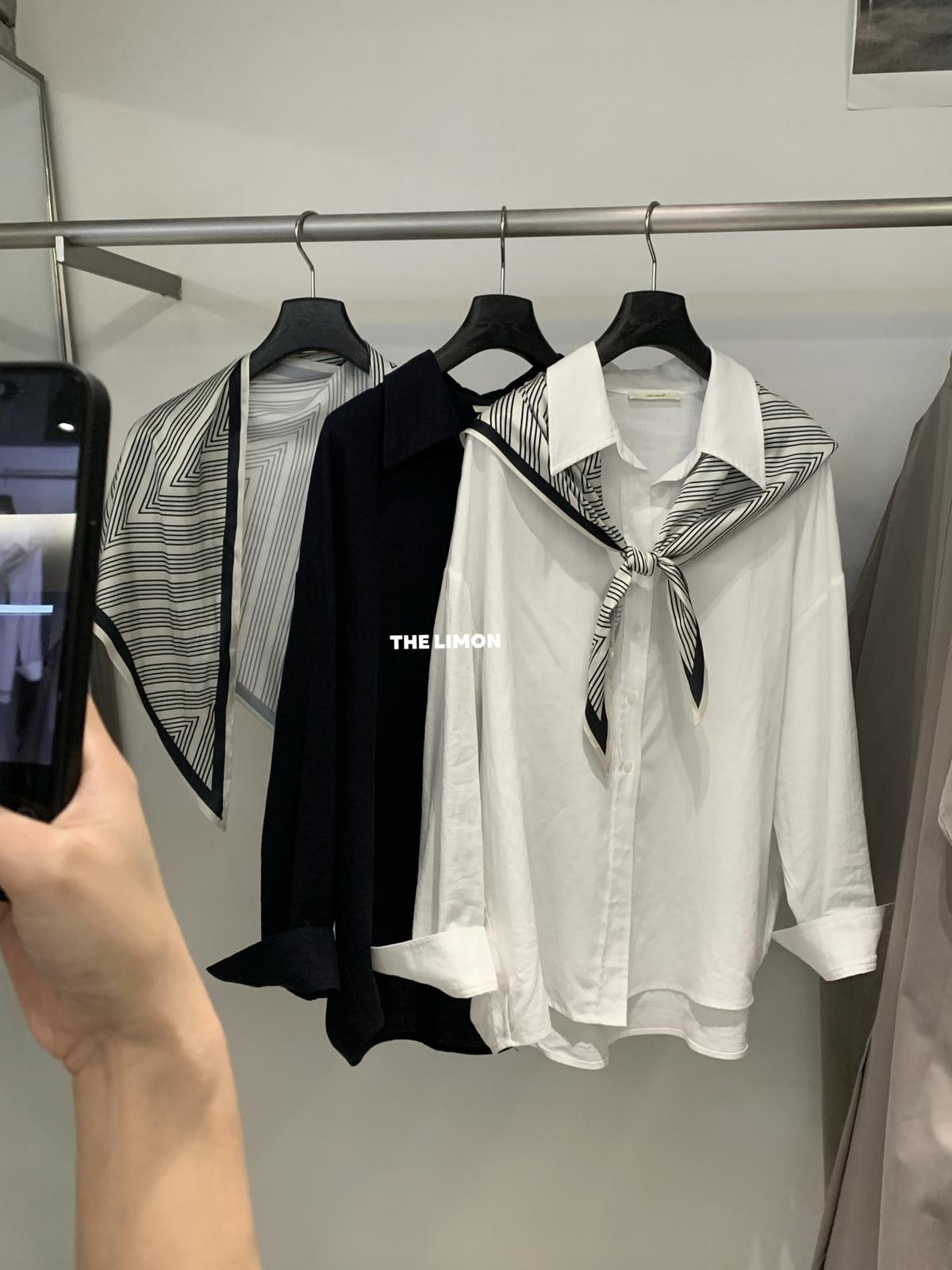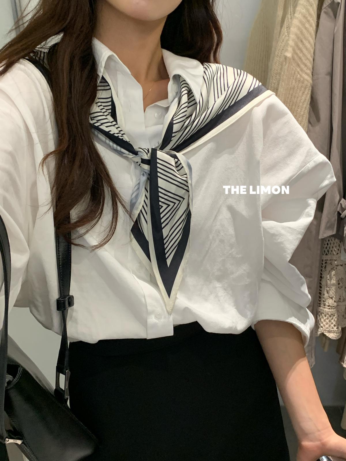 【C6671】寬鬆慵懶麻料防曬襯衫(配絲巾)