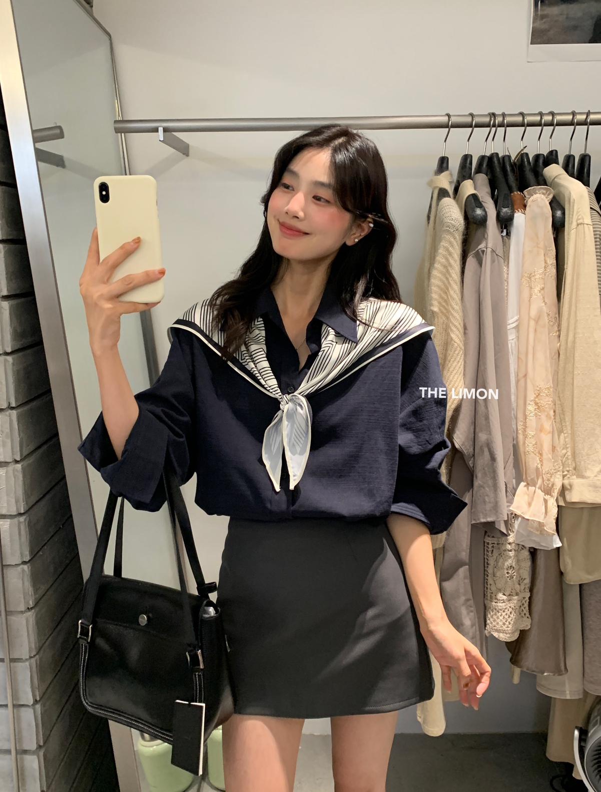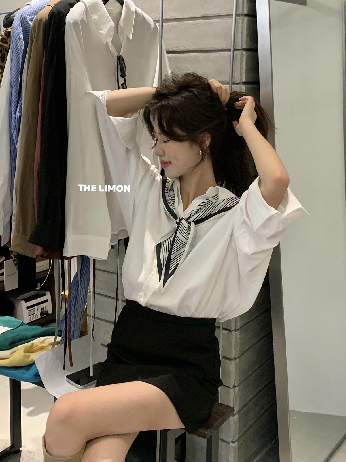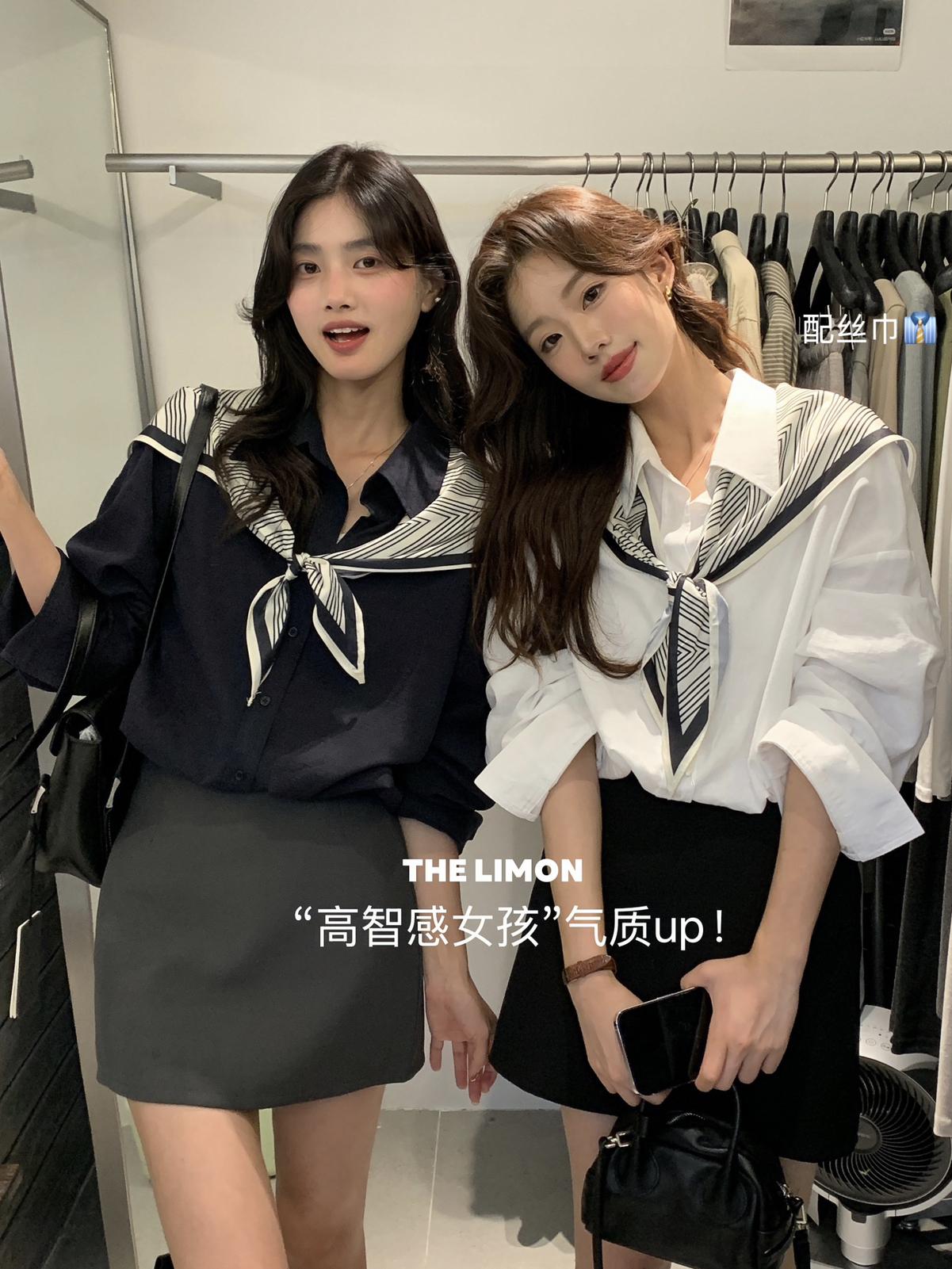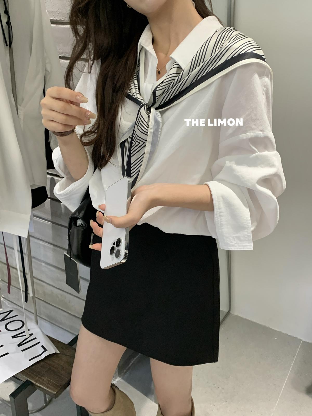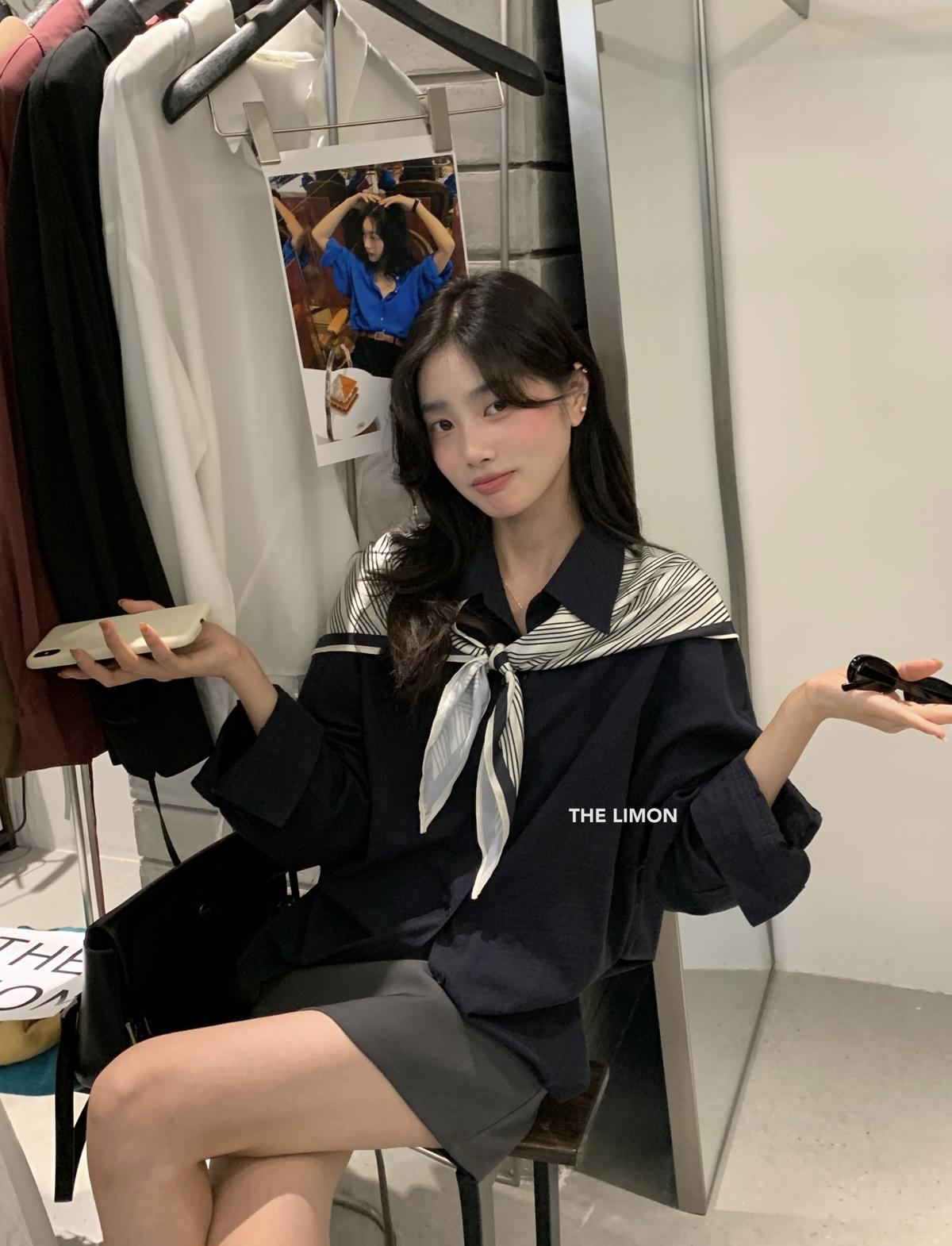 【C6671】寬鬆慵懶麻料防曬襯衫(配絲巾)
