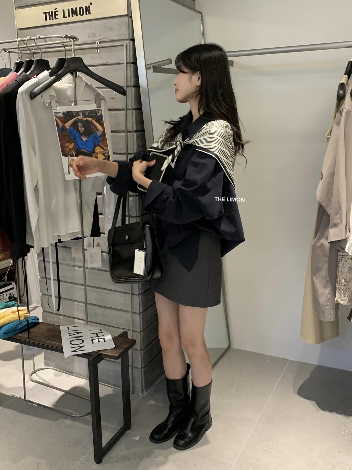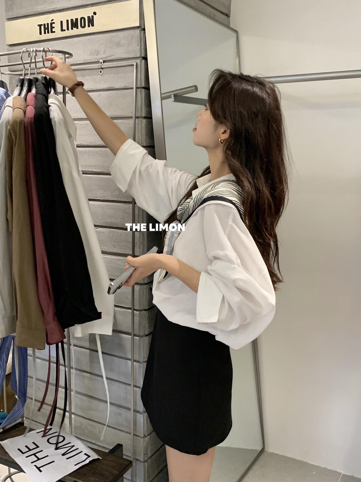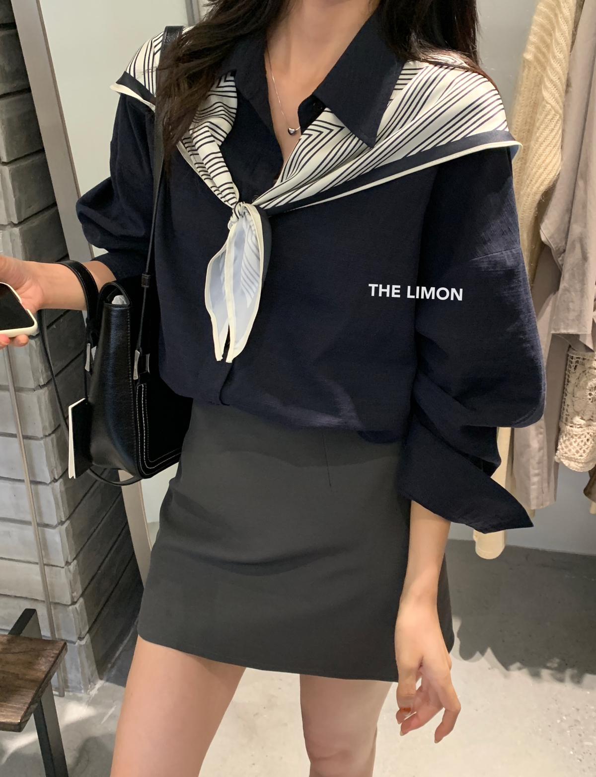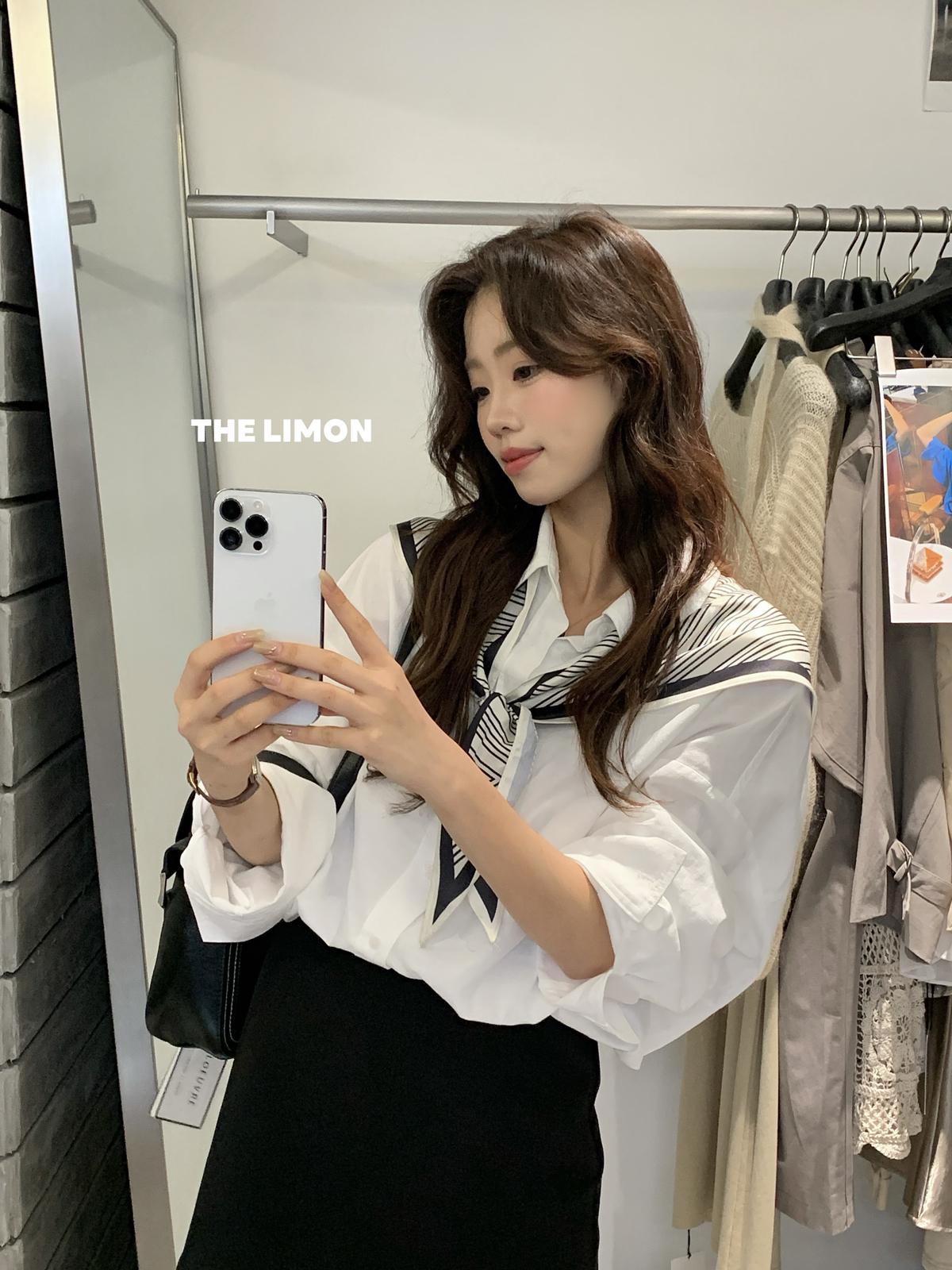 【C6671】寬鬆慵懶麻料防曬襯衫(配絲巾)