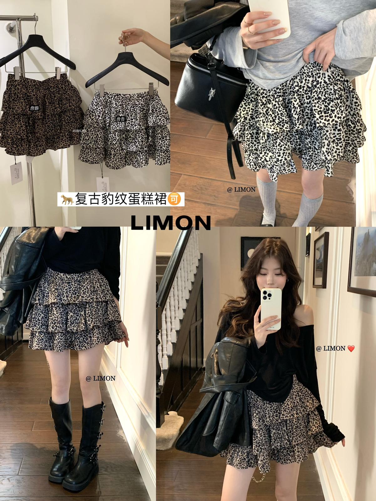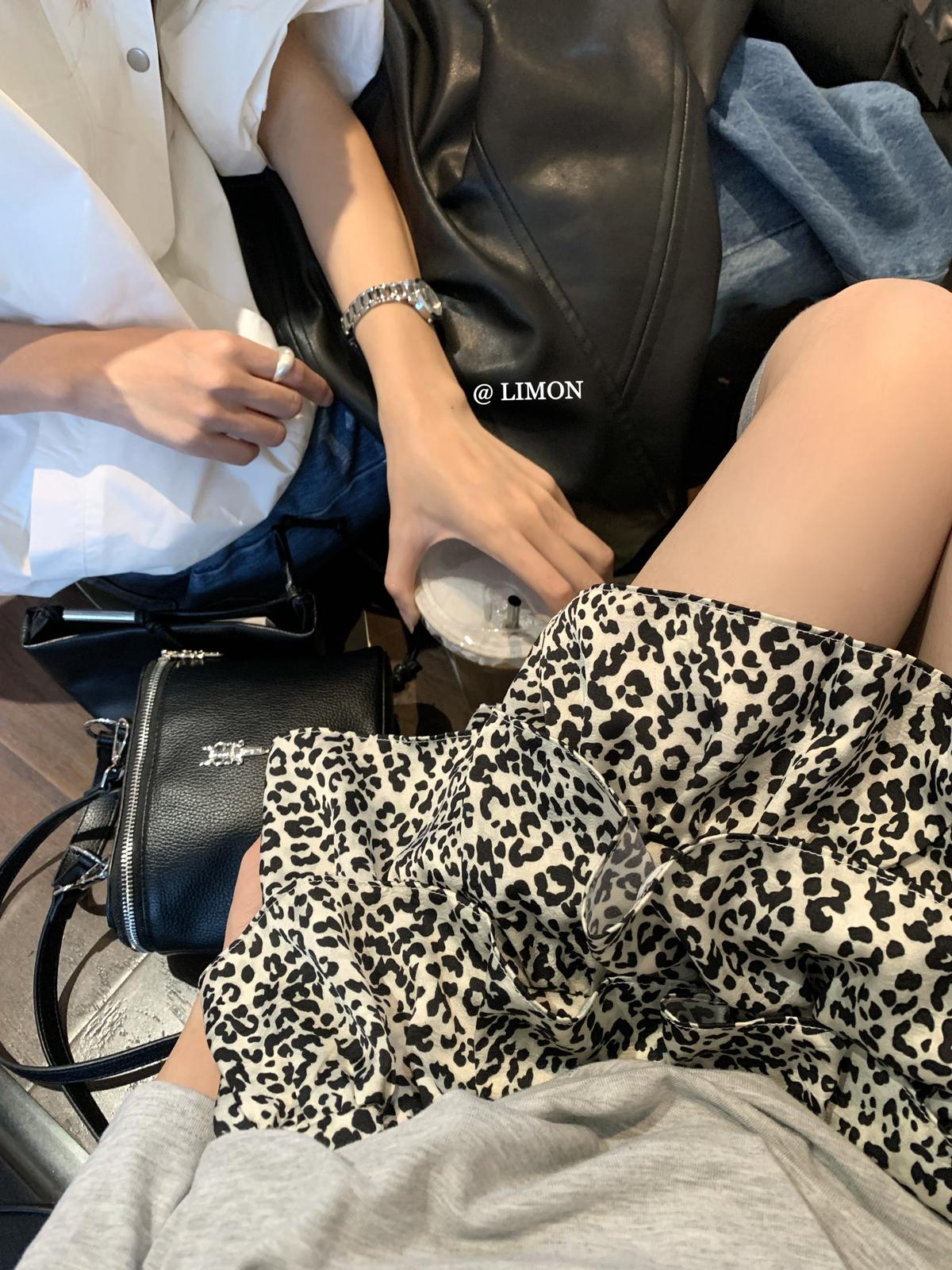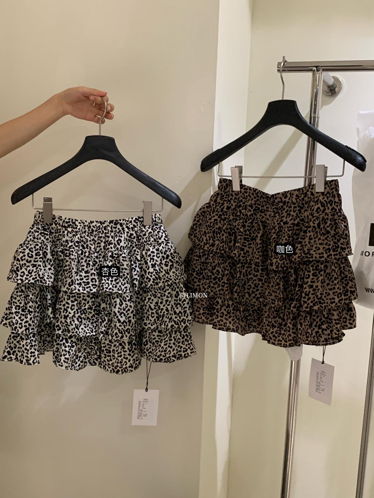 3. 【C6673】復古設計感高腰豹紋蛋糕裙短裙半身裙