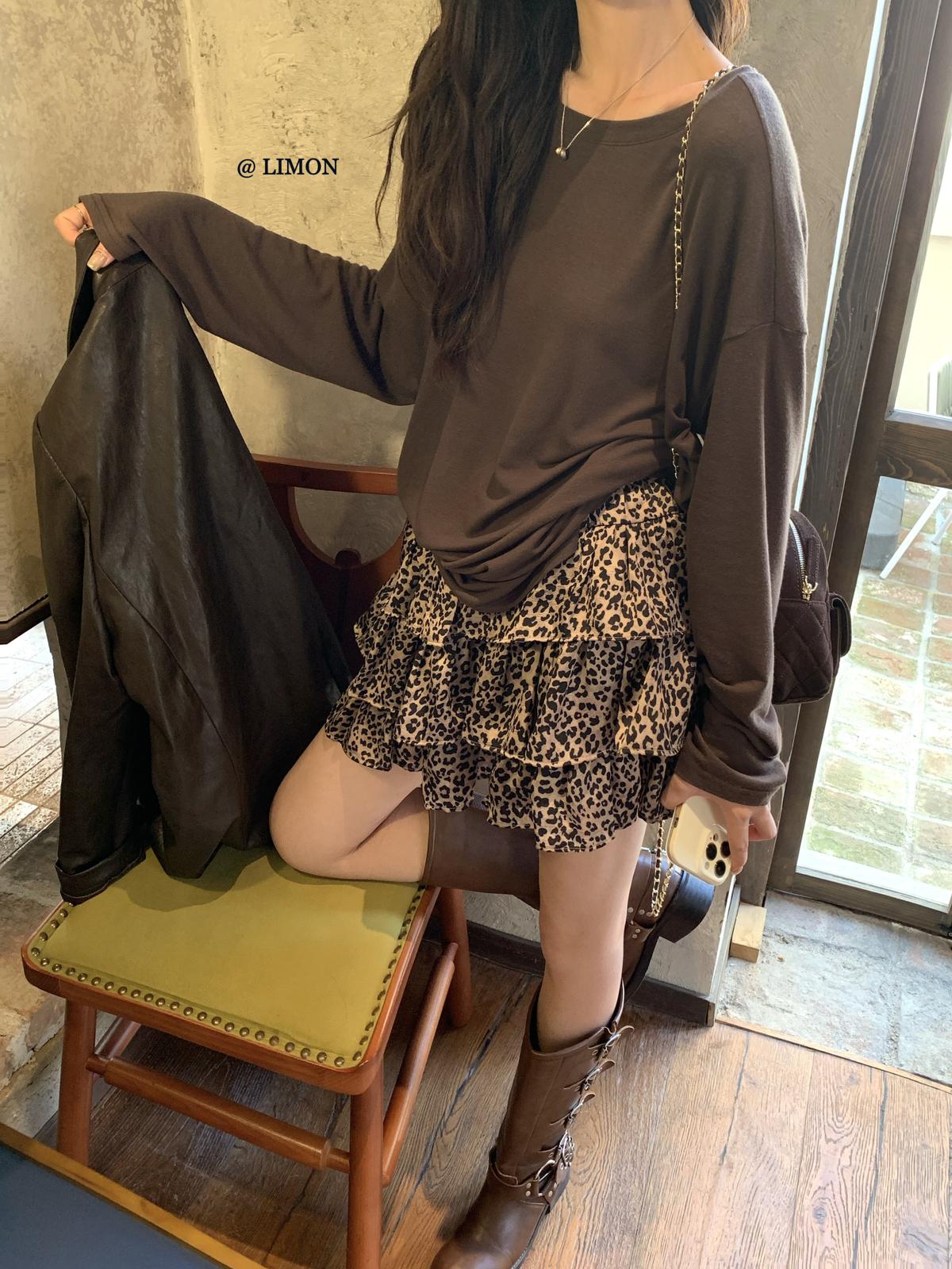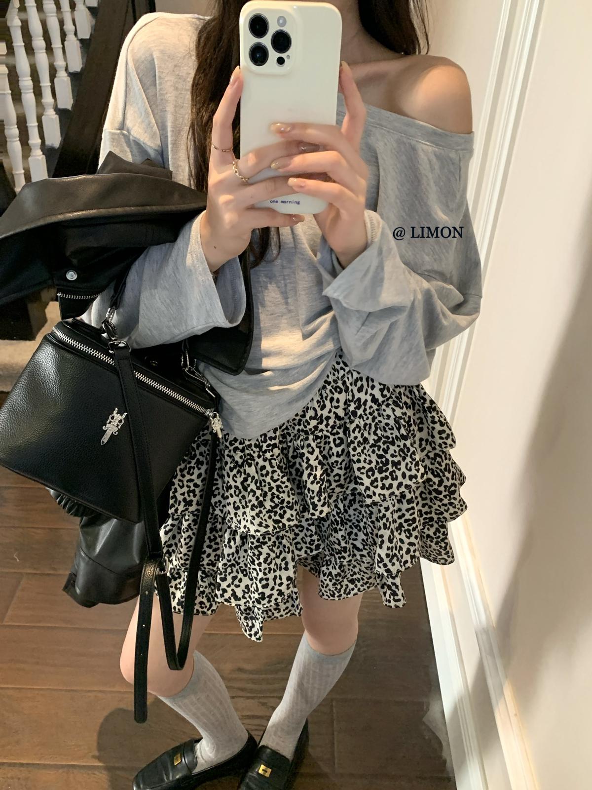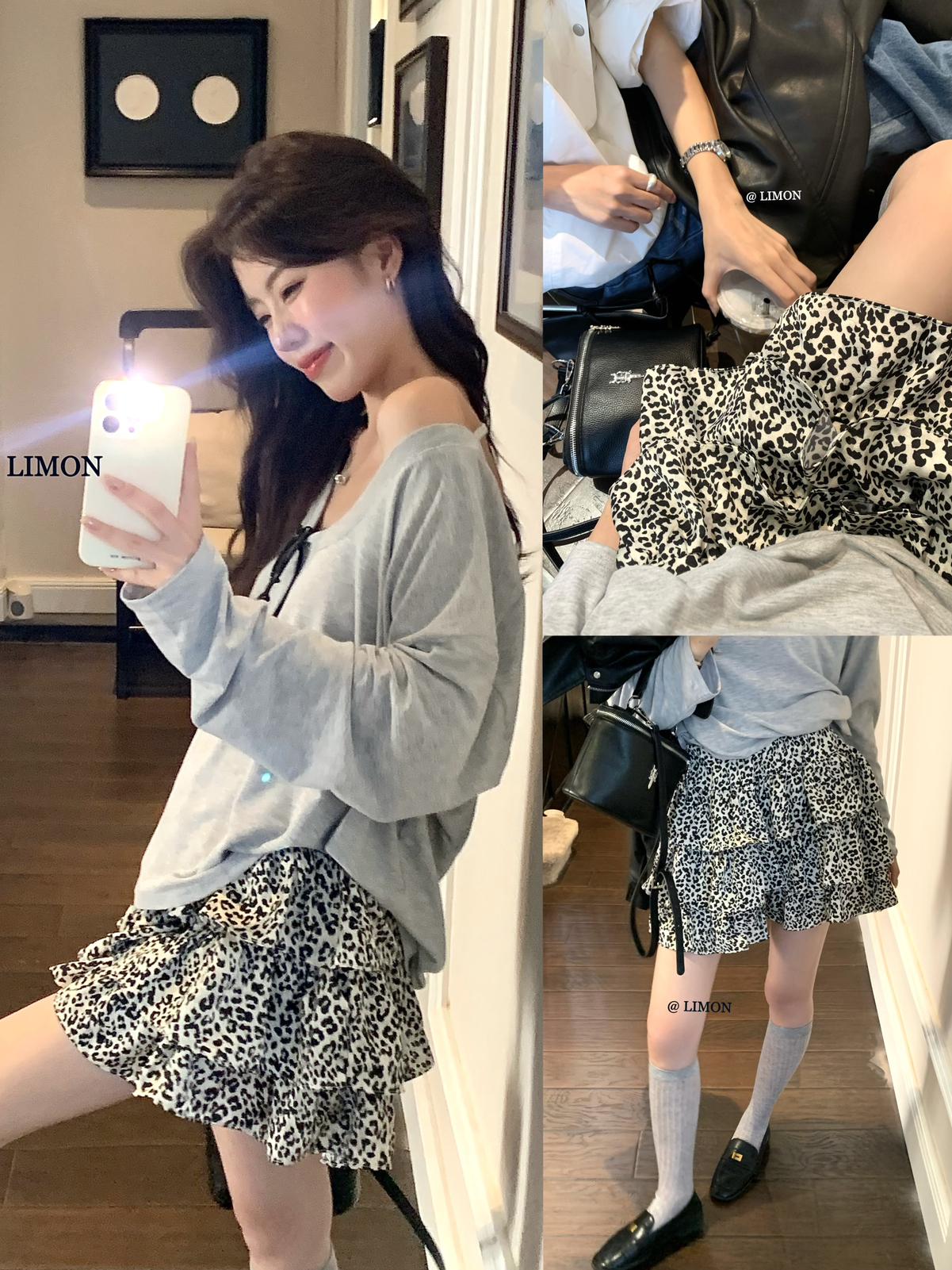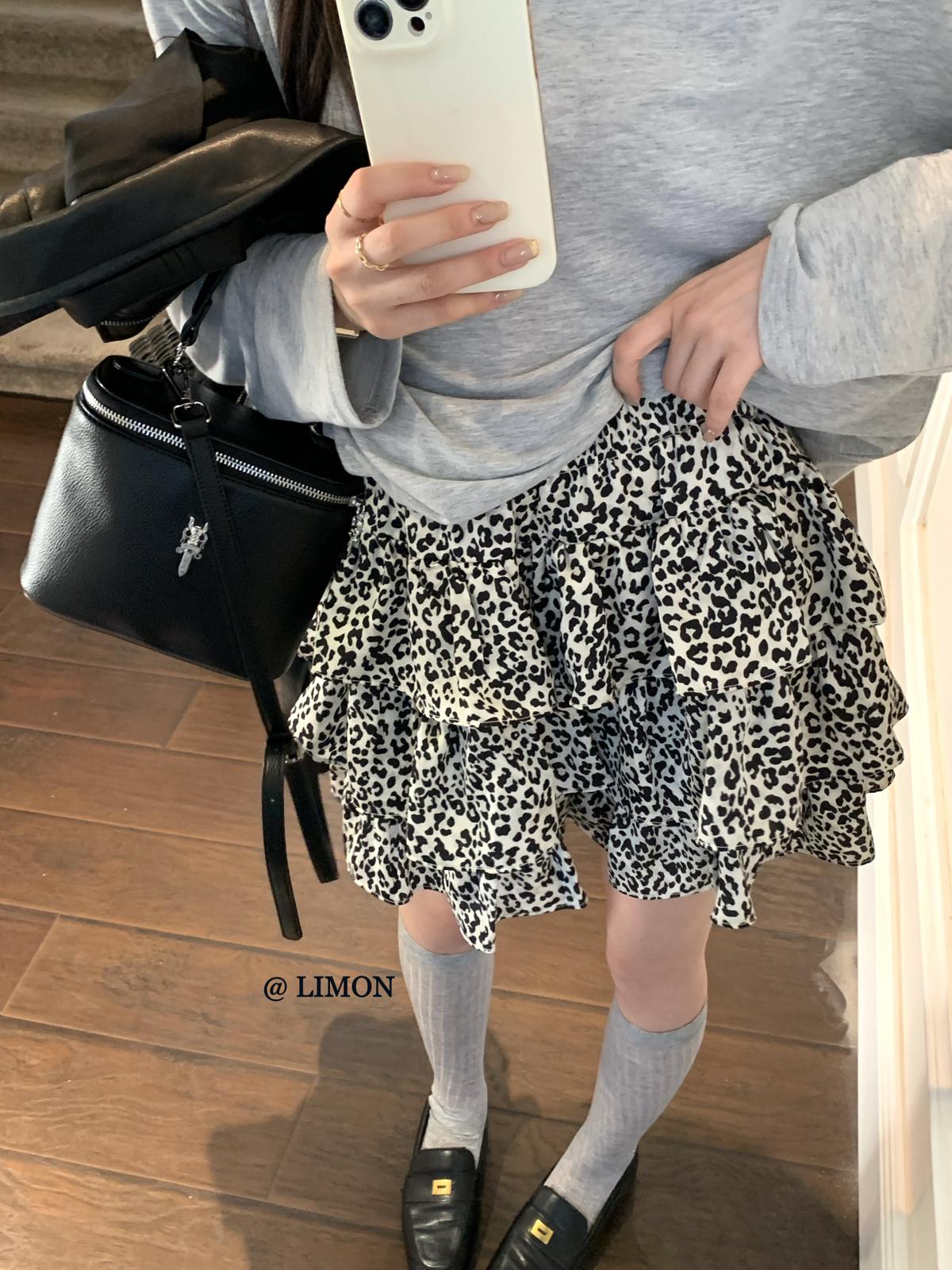 3. 【C6673】復古設計感高腰豹紋蛋糕裙短裙半身裙