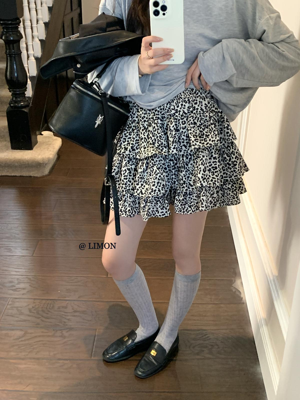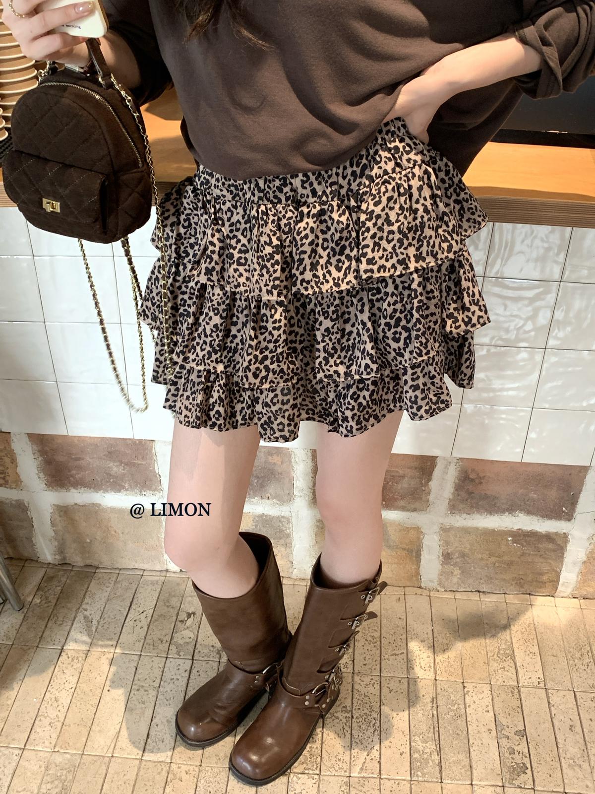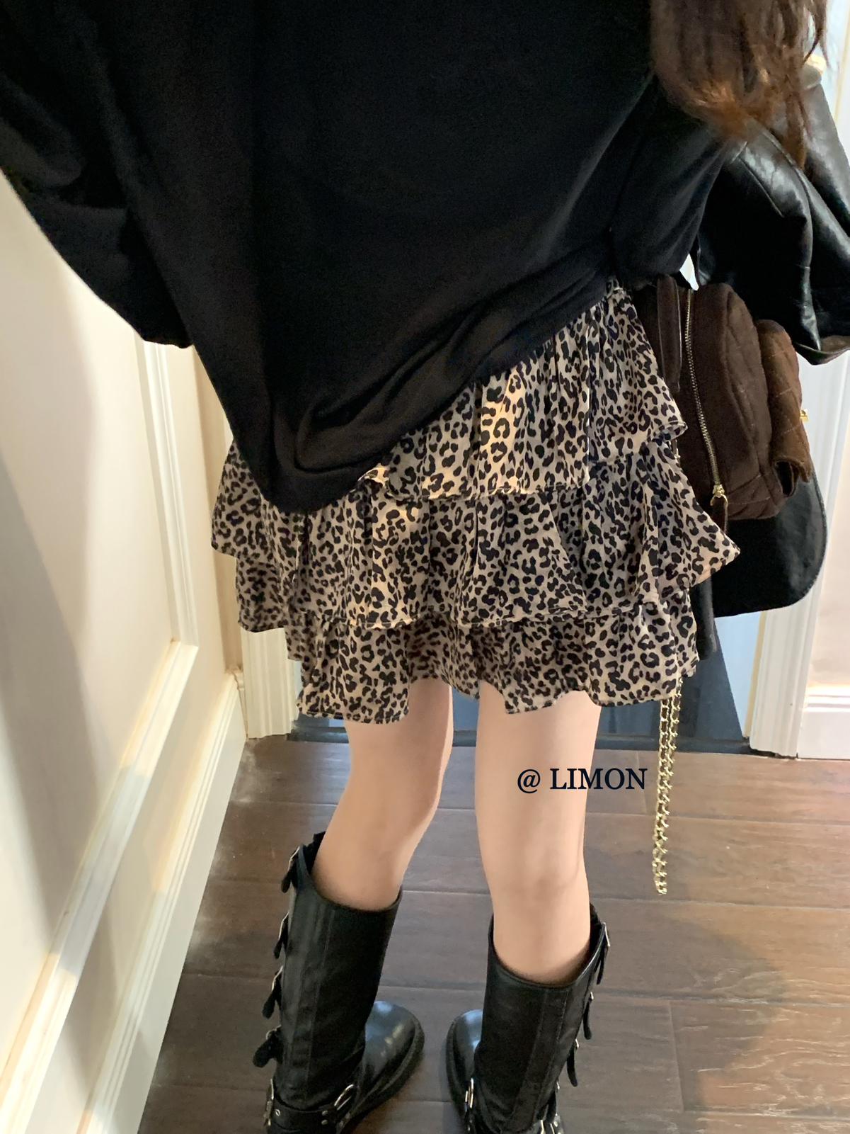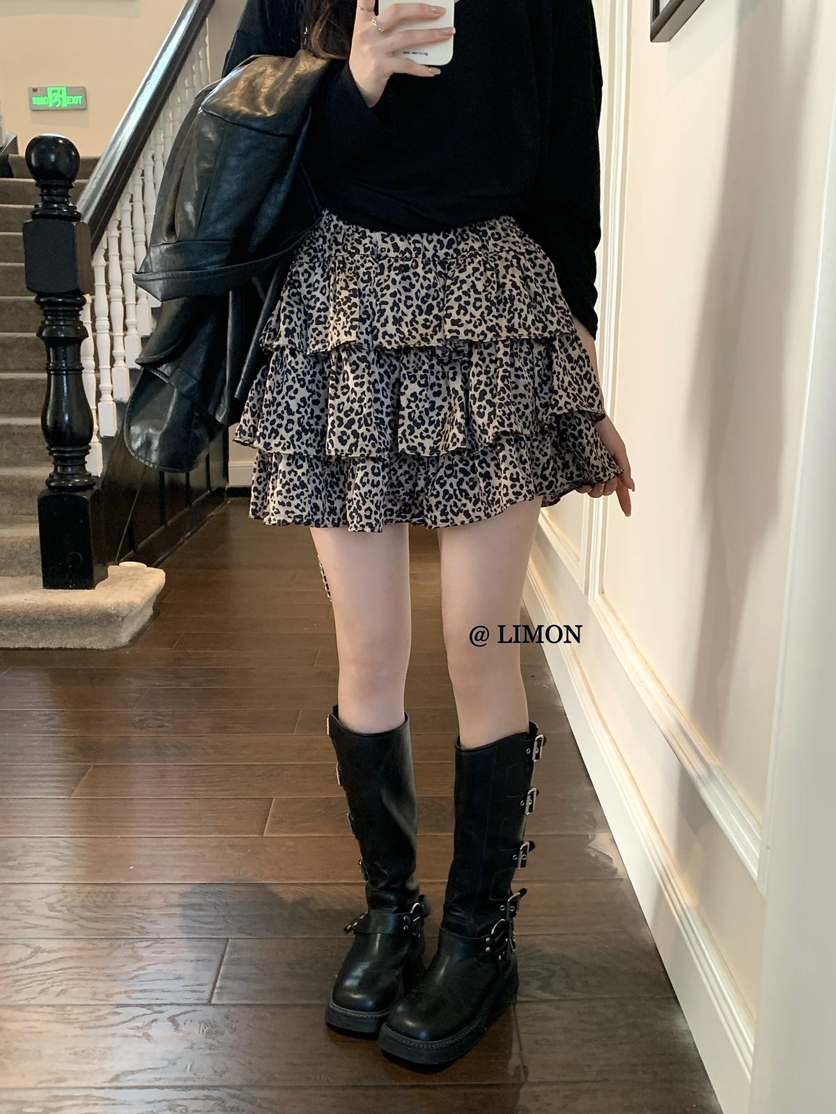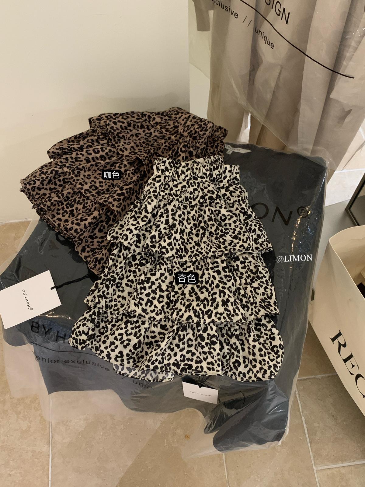 【C6673】復古設計感高腰豹紋蛋糕裙短裙半身裙