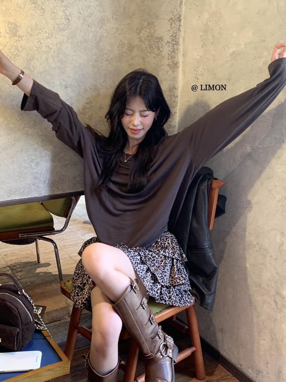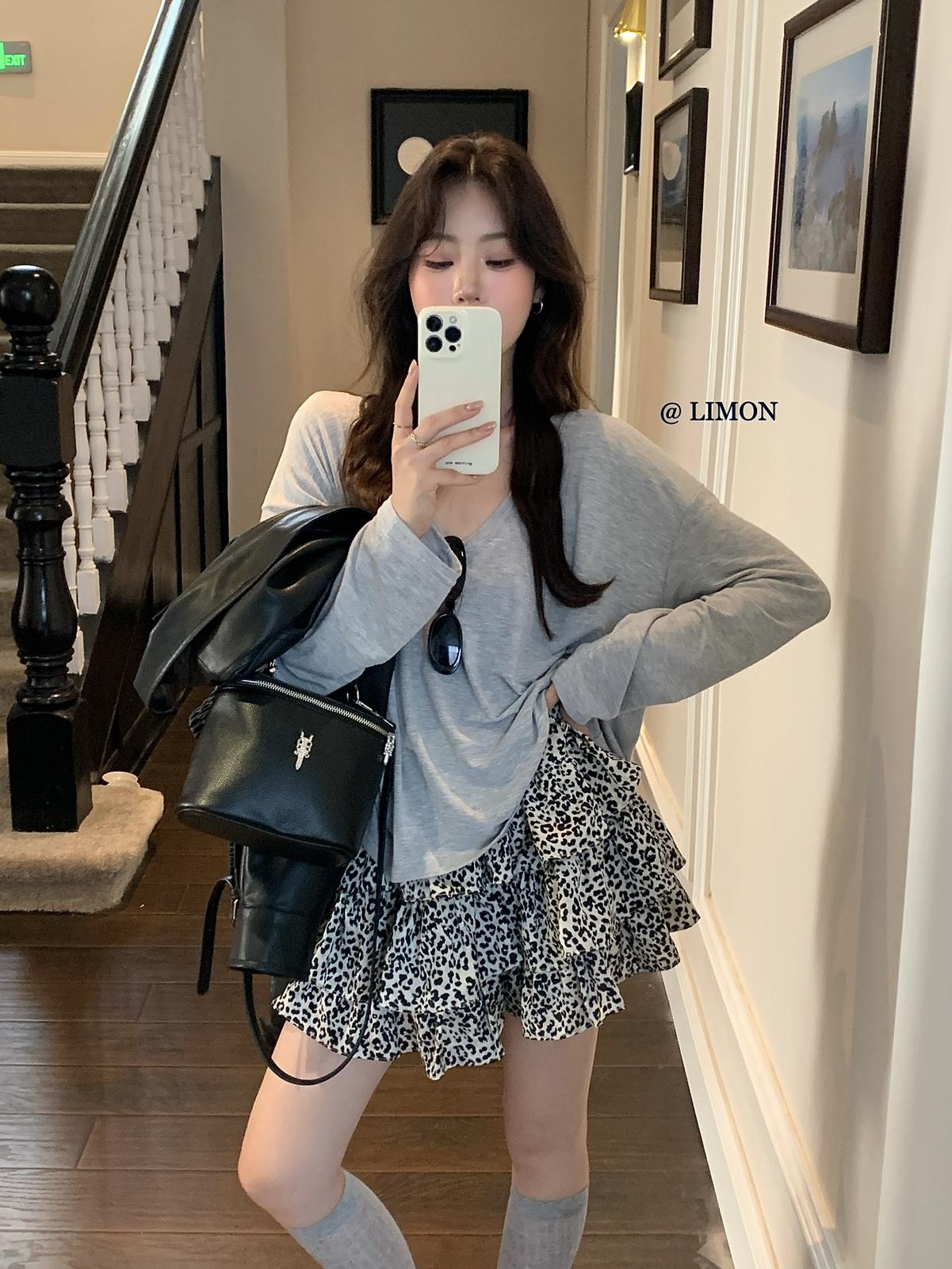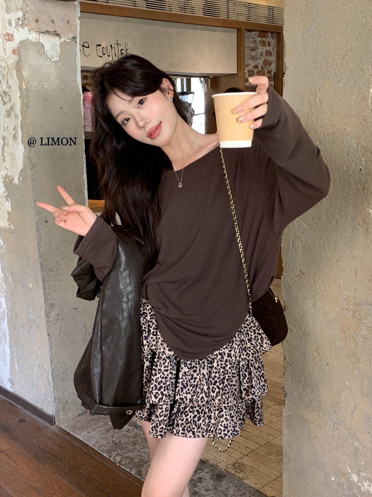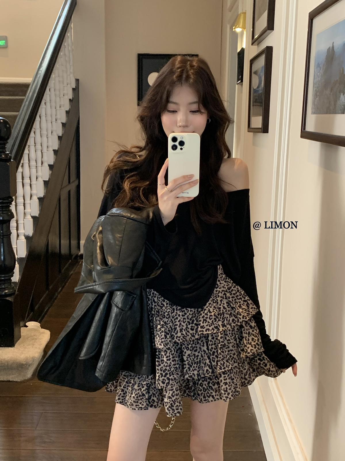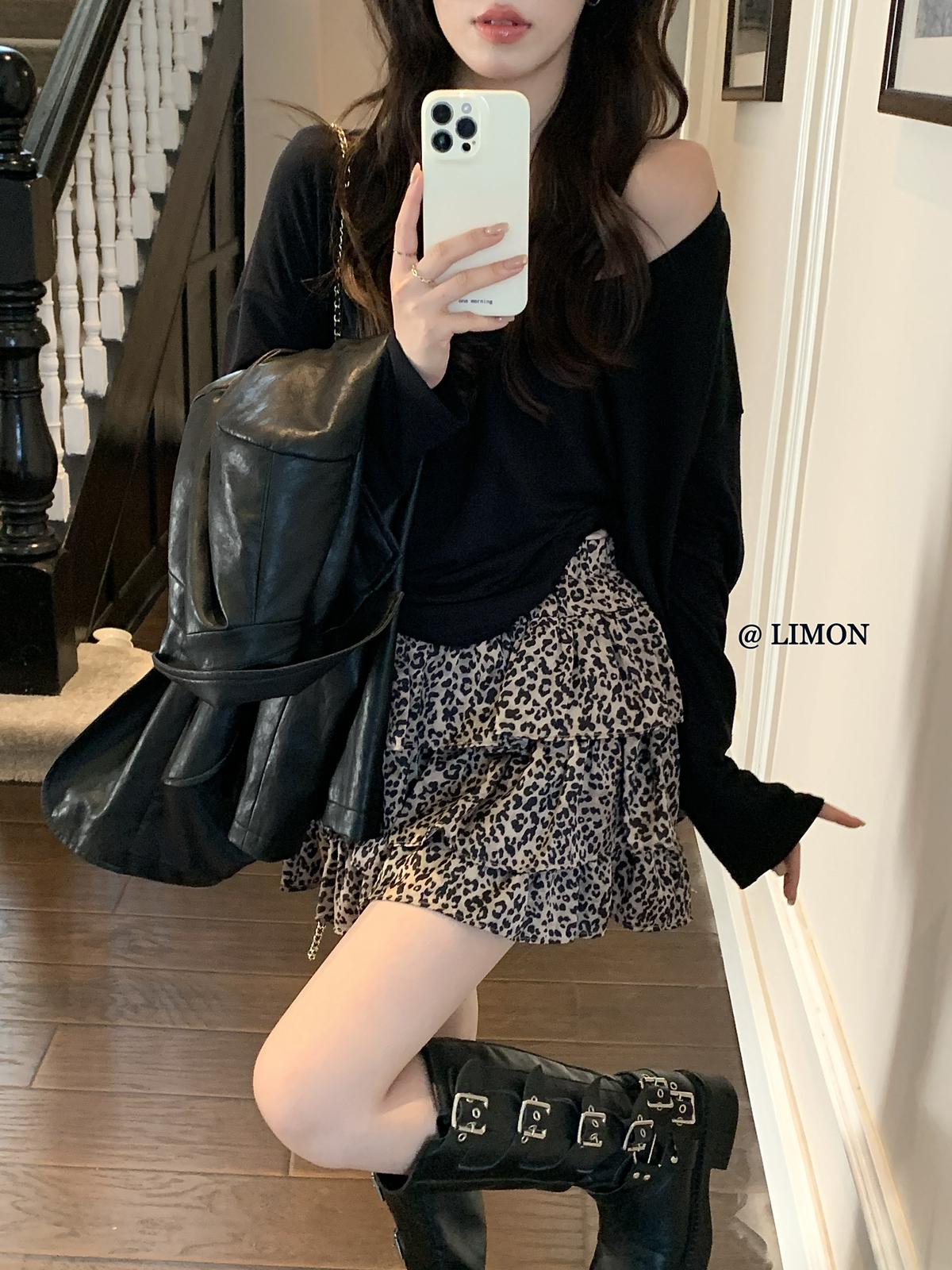 【C6673】復古設計感高腰豹紋蛋糕裙短裙半身裙