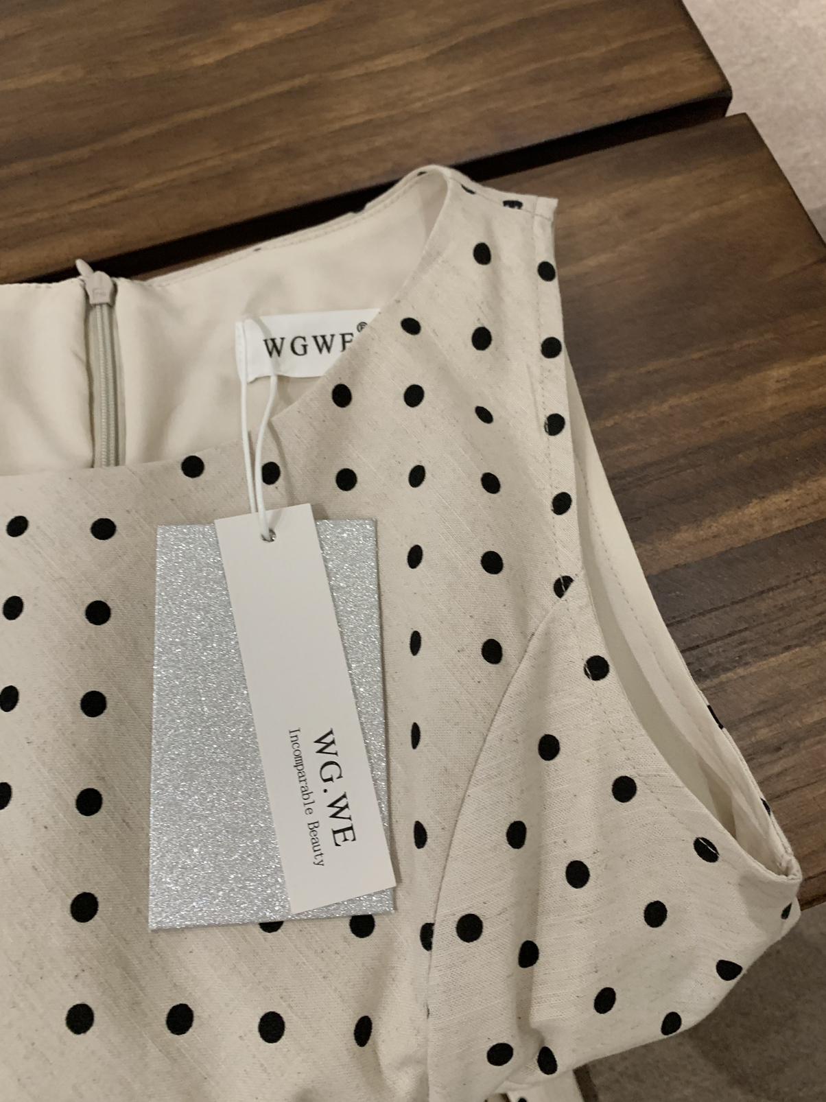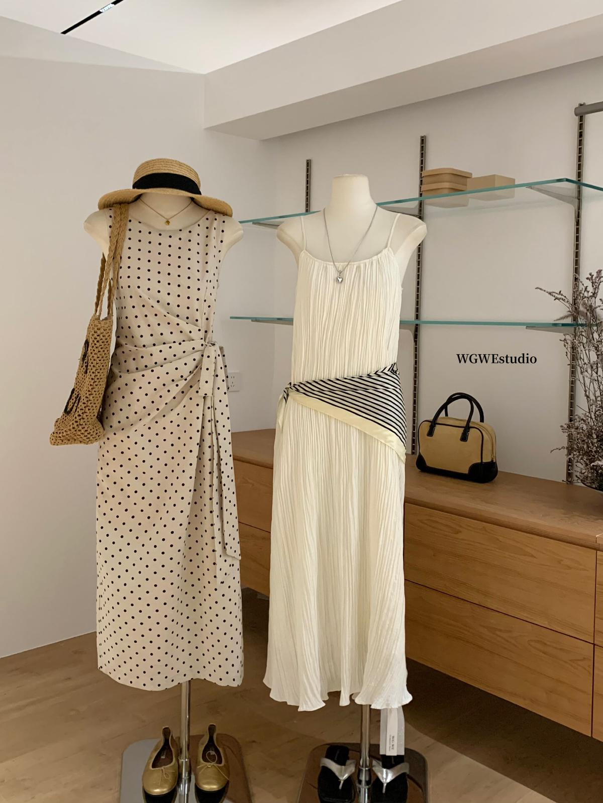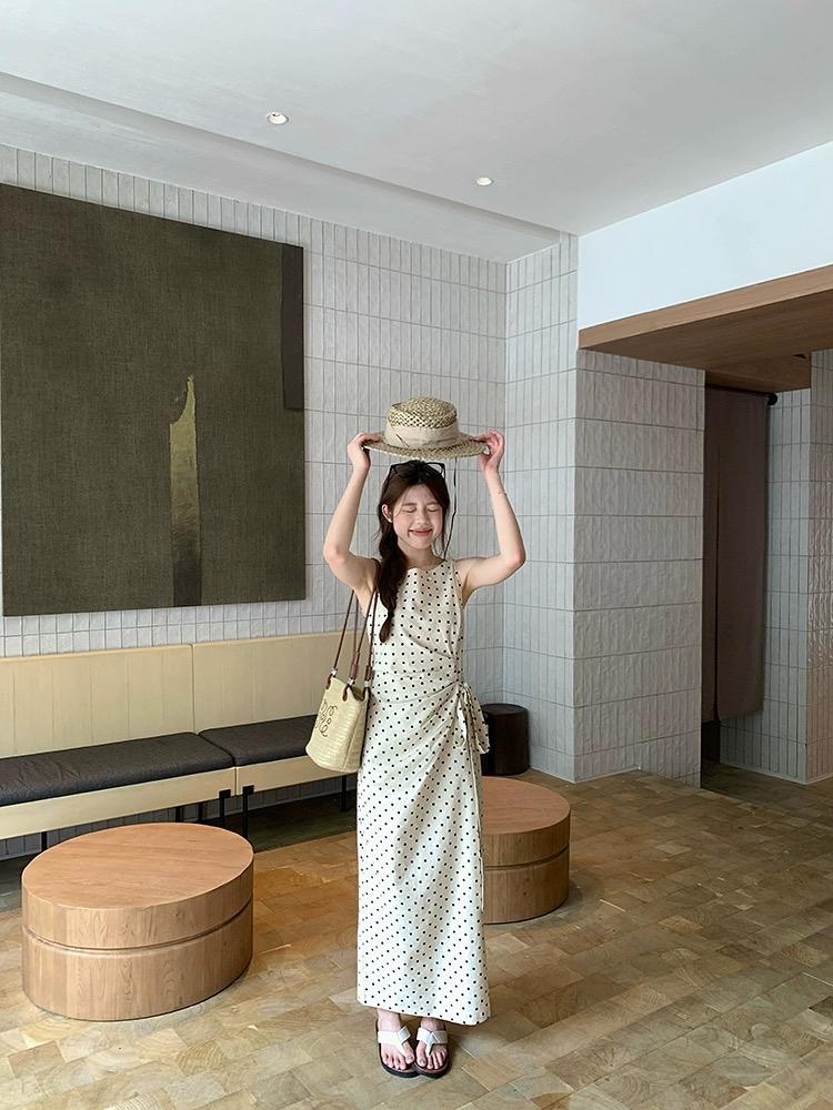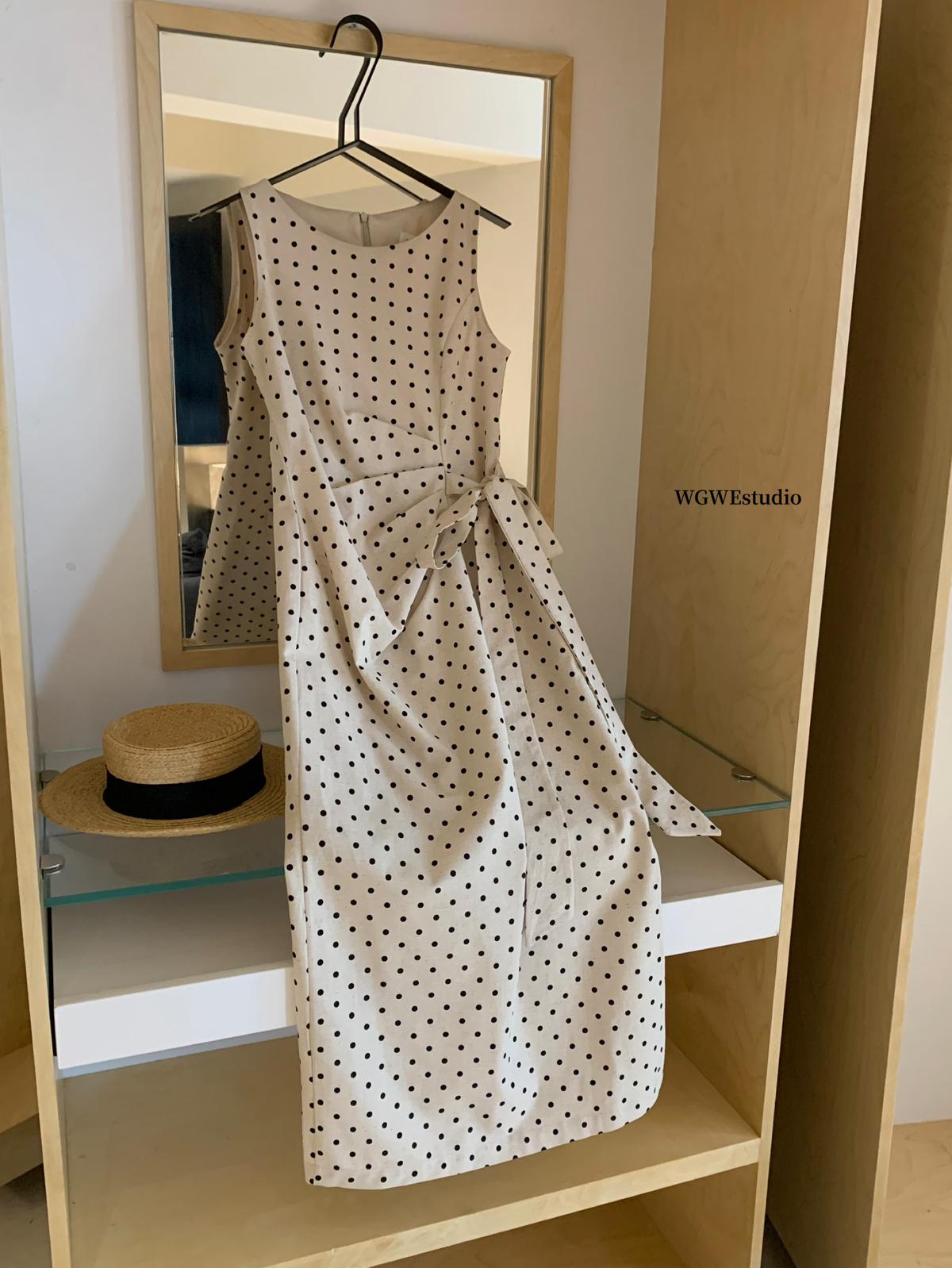【C6679】高級感氣質波點裙女側收腰亞麻棉法式長裙連衣裙