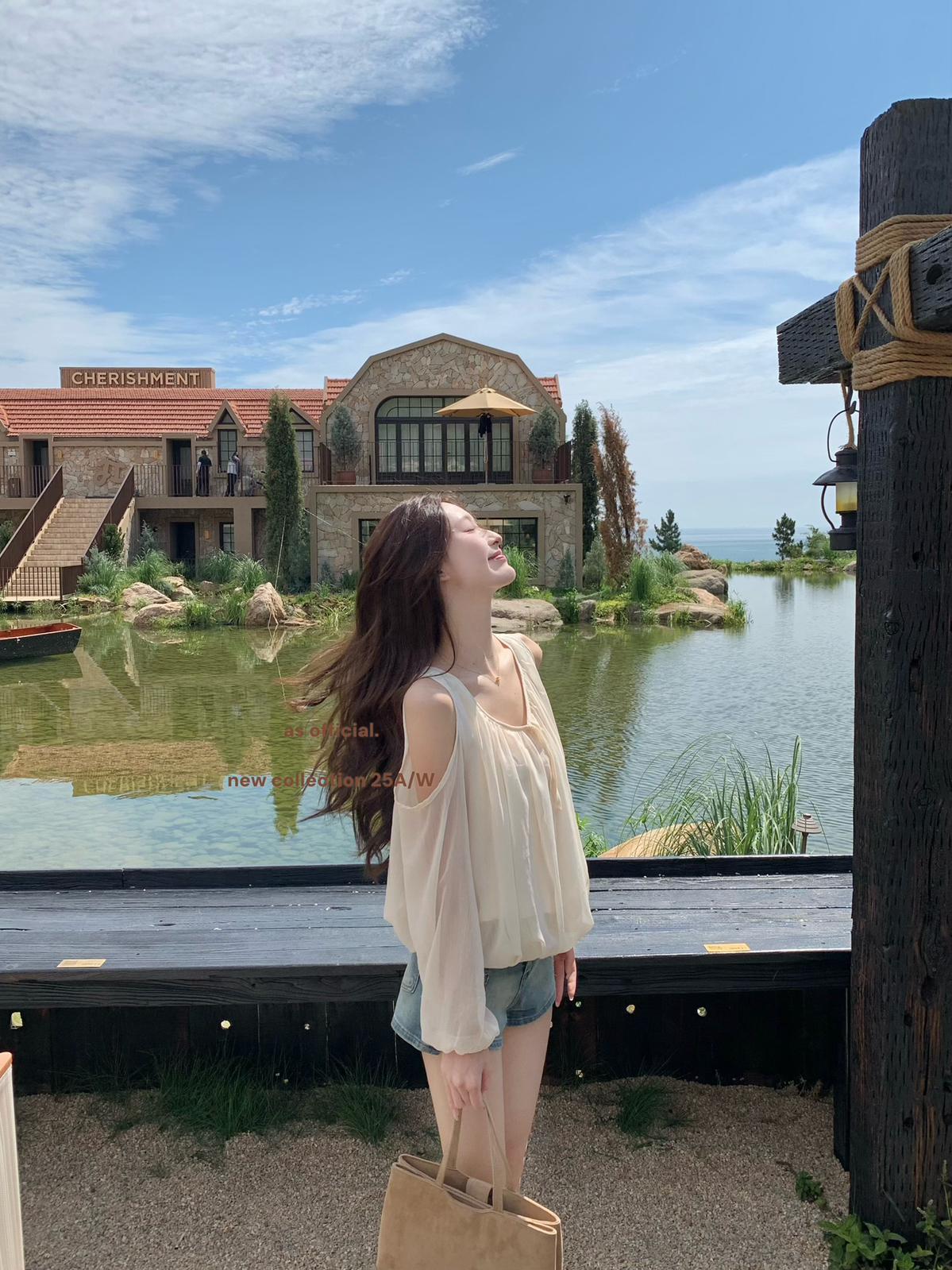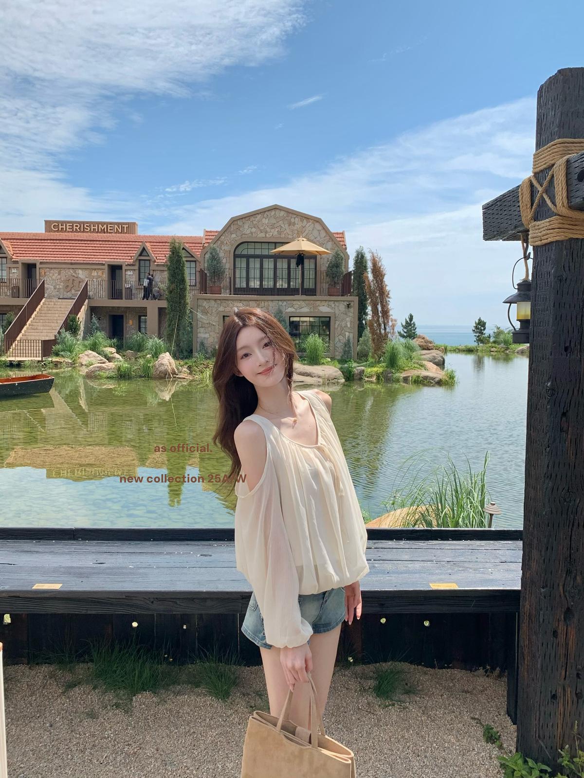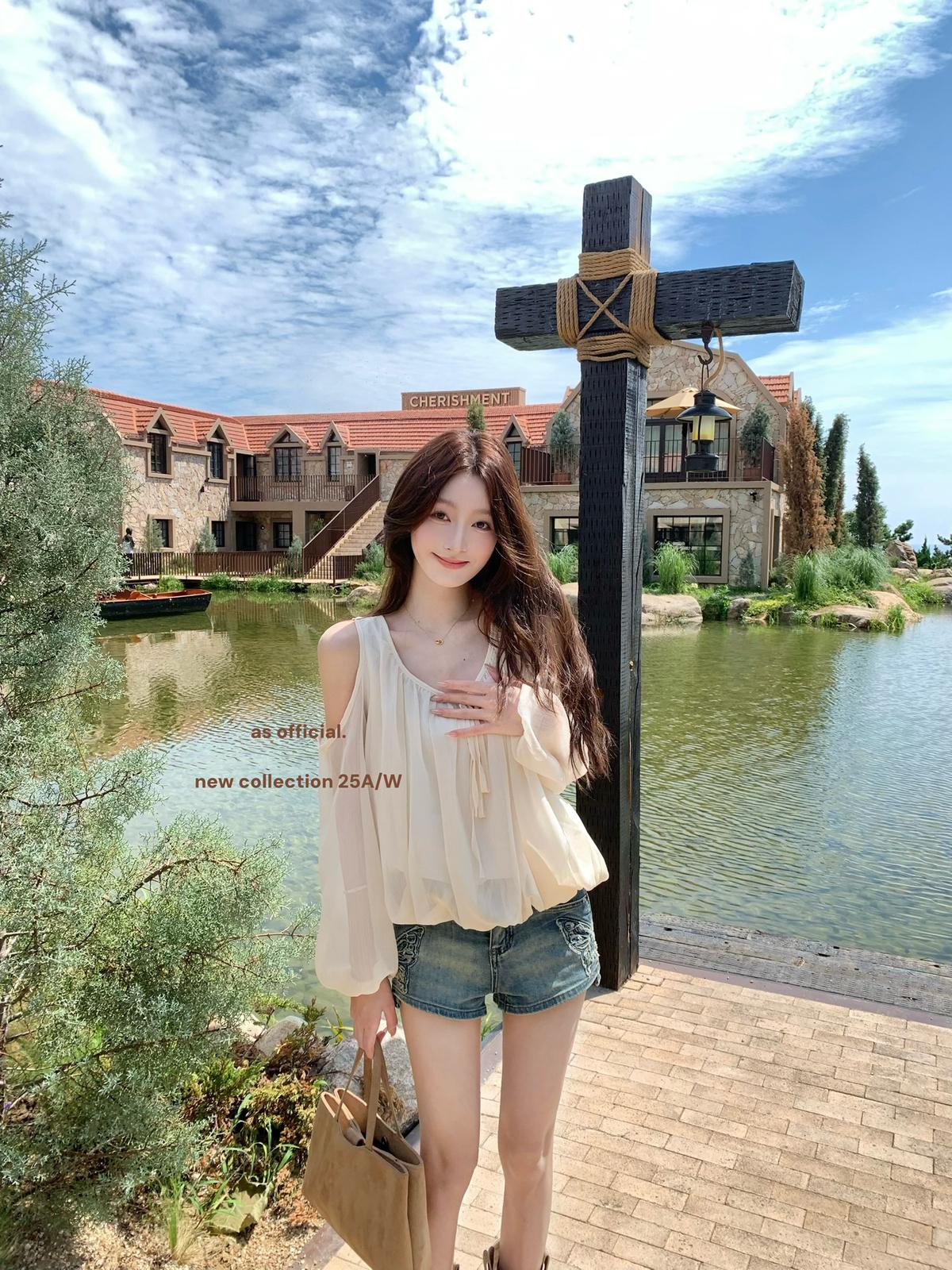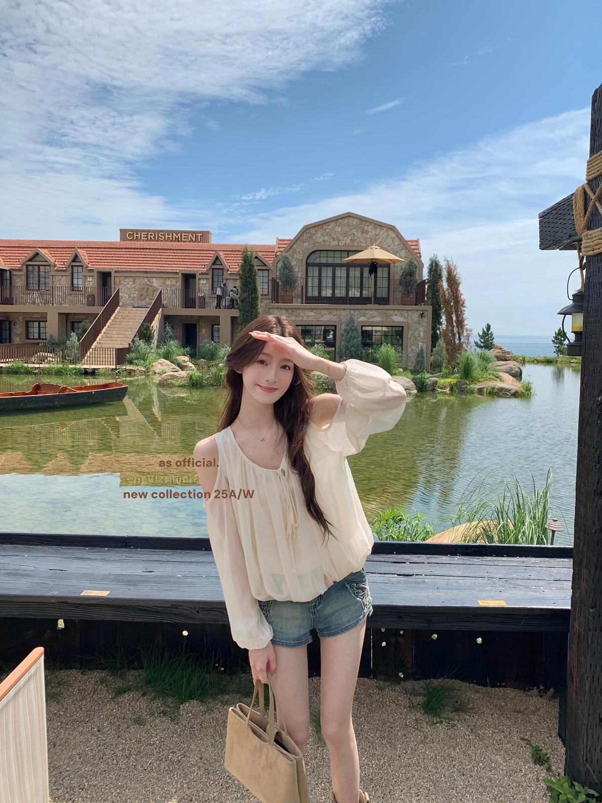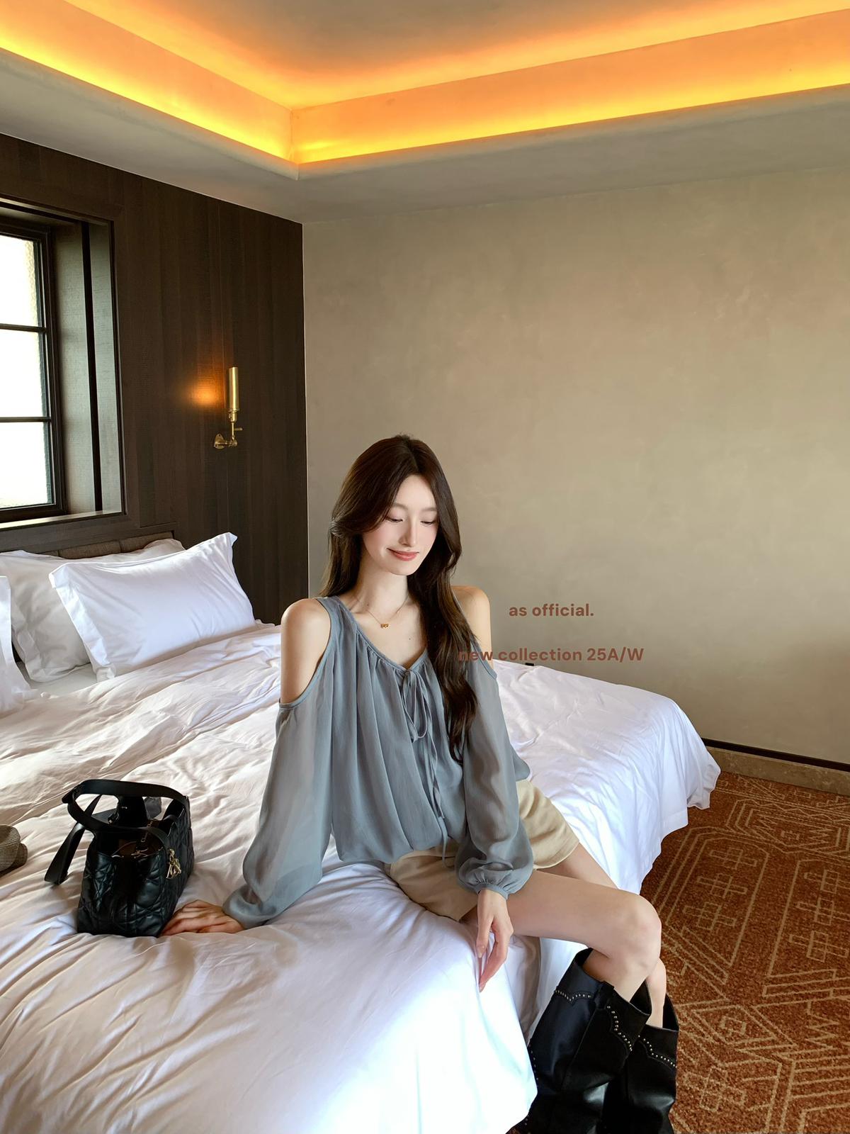 3. 【C6815】早秋爆火單品 即刻可穿!!領口綁帶露肩花苞上衣小衫