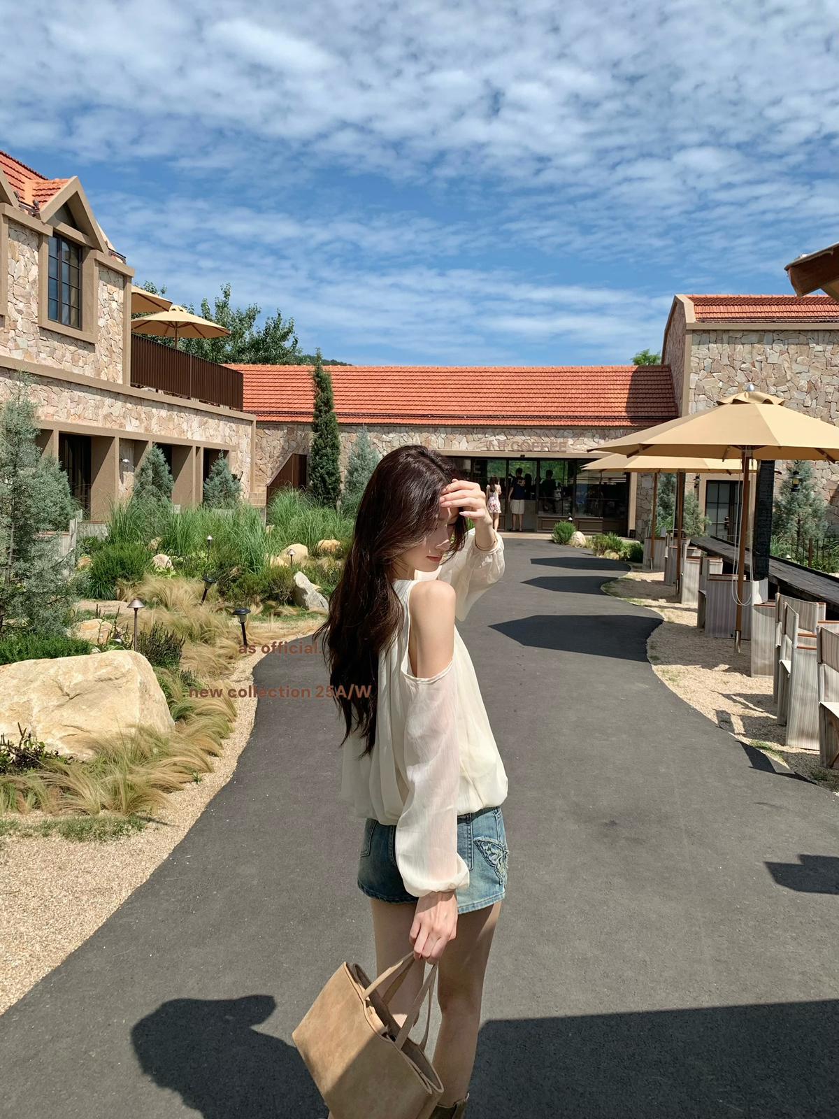 【C6815】早秋爆火單品 即刻可穿!!領口綁帶露肩花苞上衣小衫