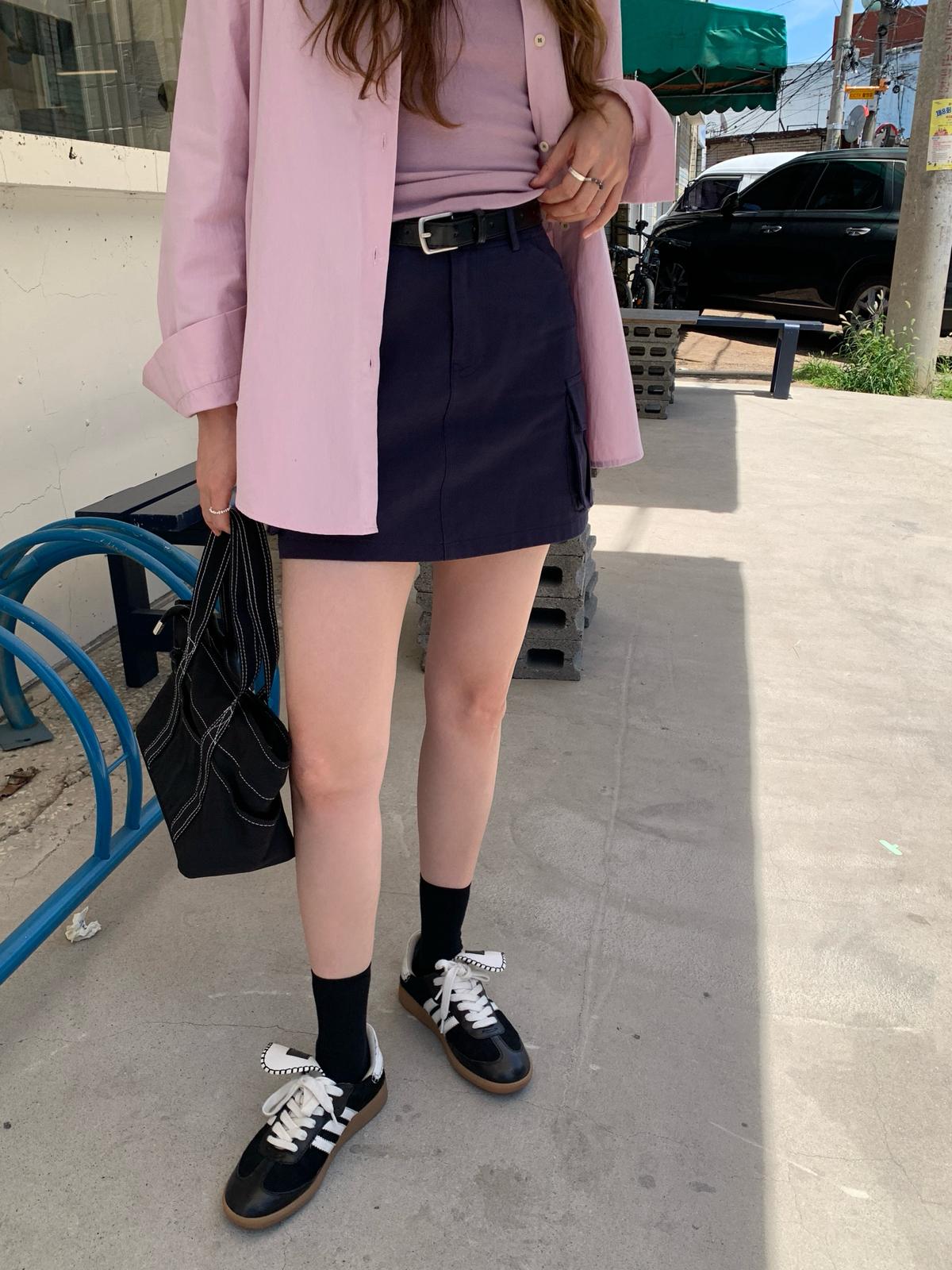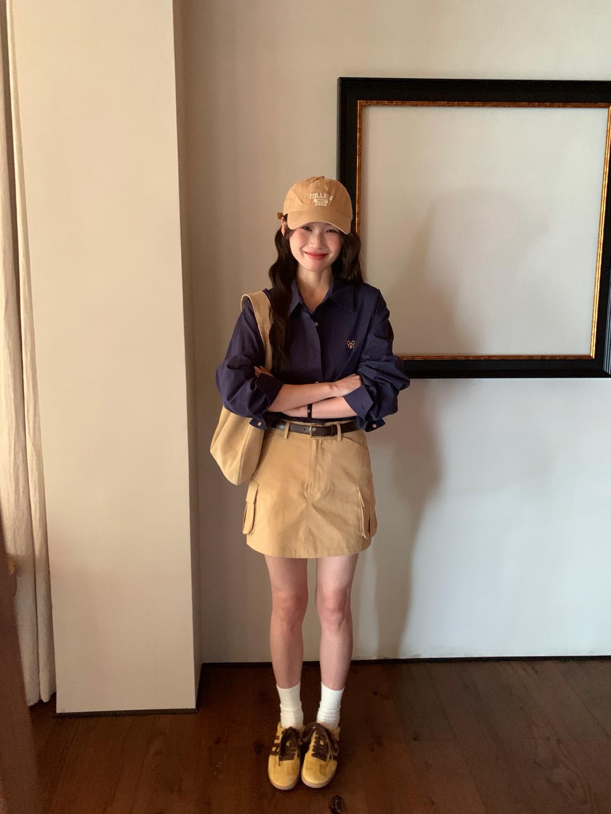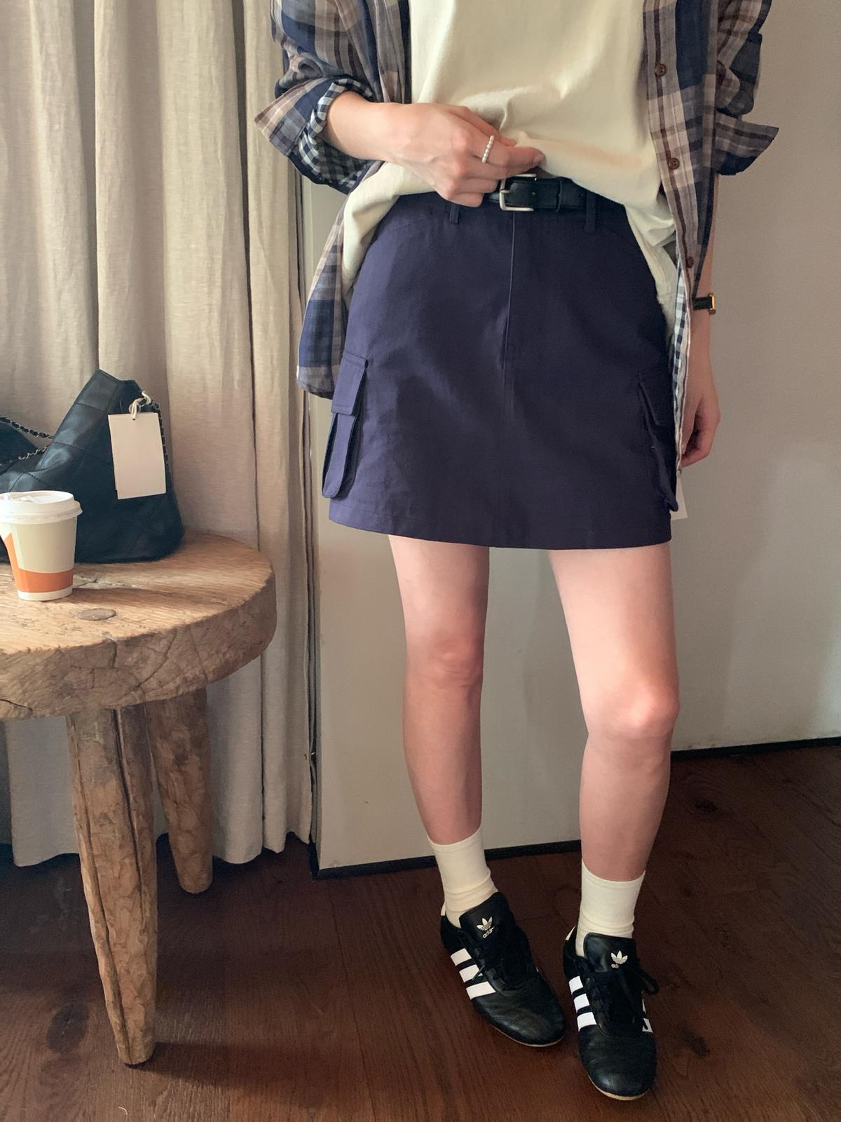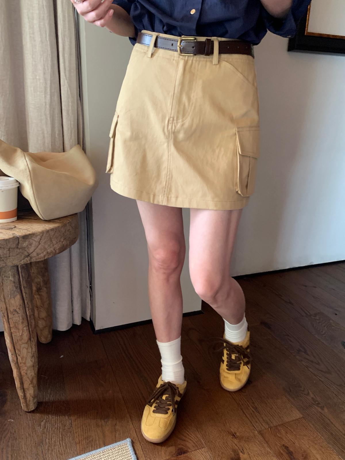 3. 【C6847】復古甜酷工裝風高腰半身裙(配腰帶)