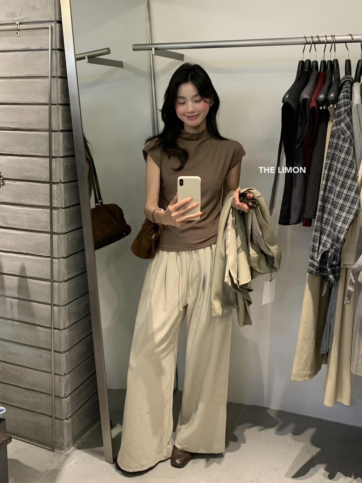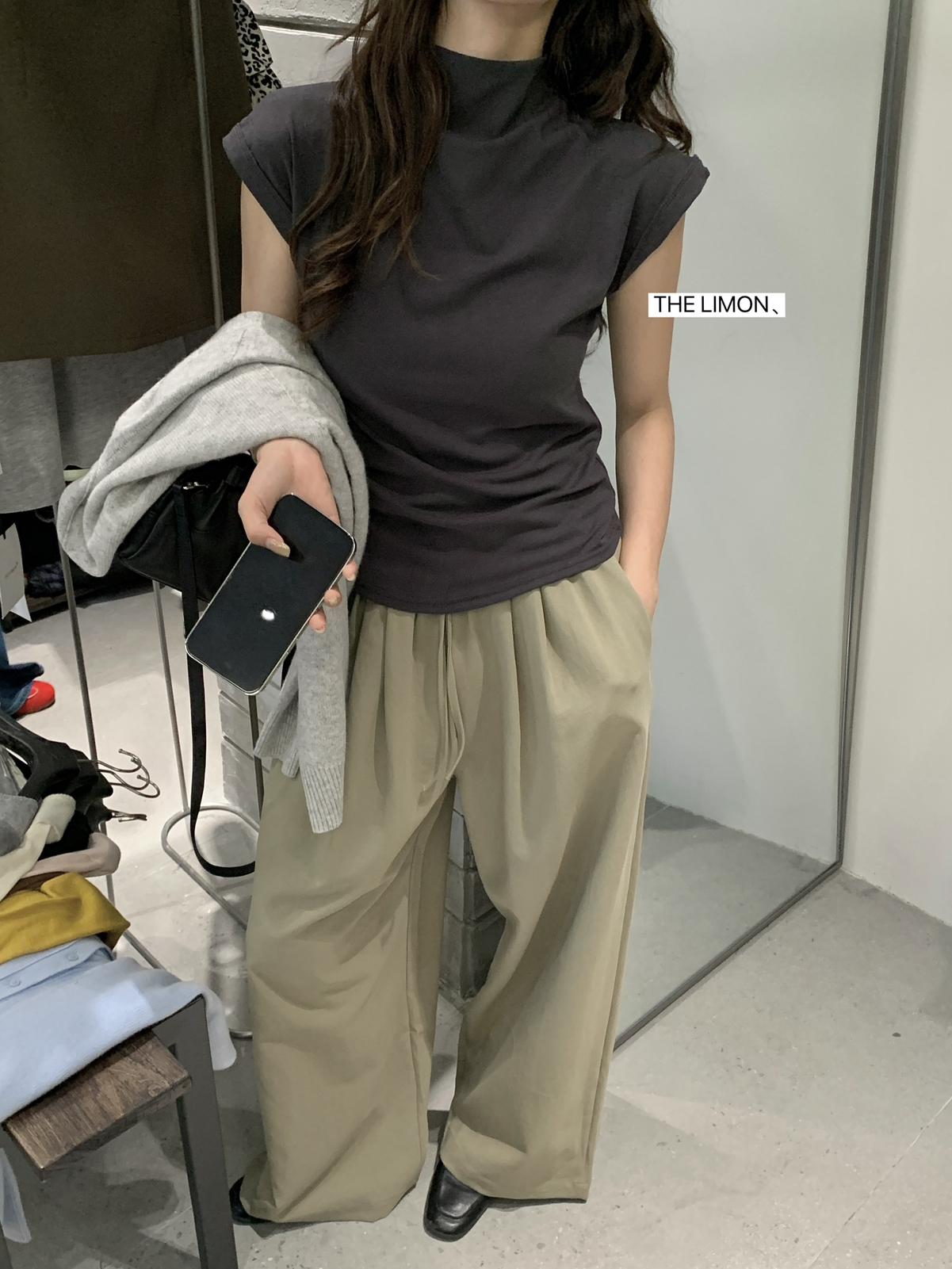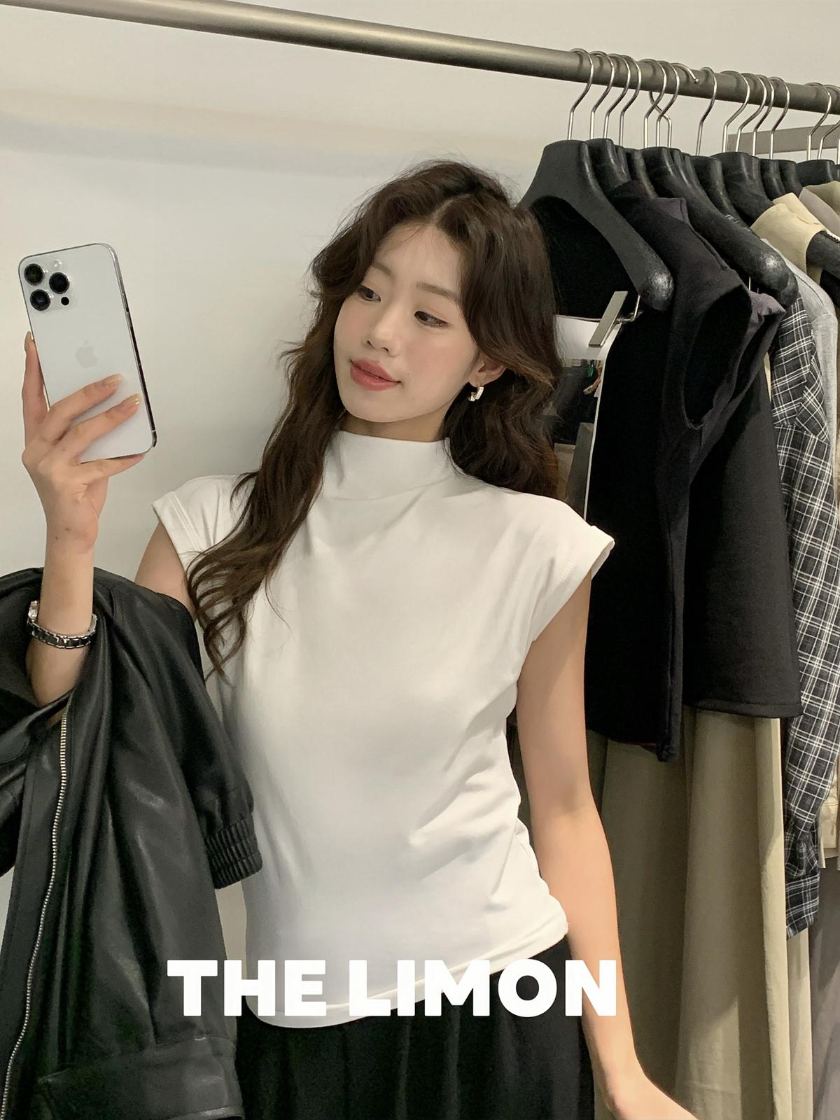 【C6703】半高領氣質百搭修身顯瘦短袖T