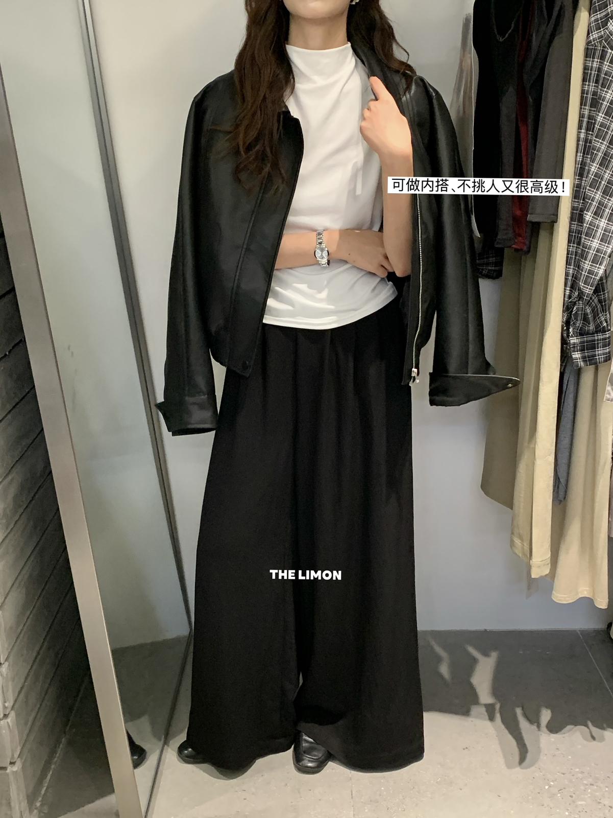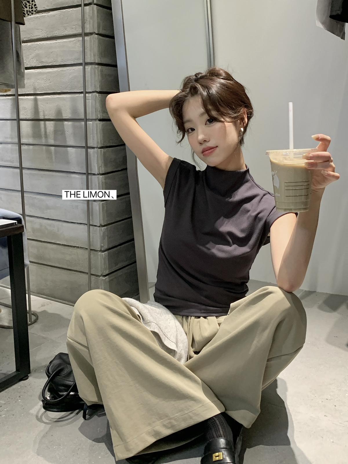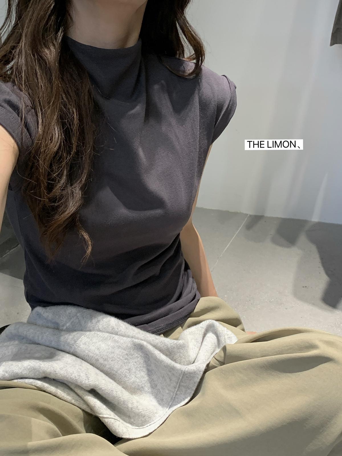 3. 【C6703】半高領氣質百搭修身顯瘦短袖T