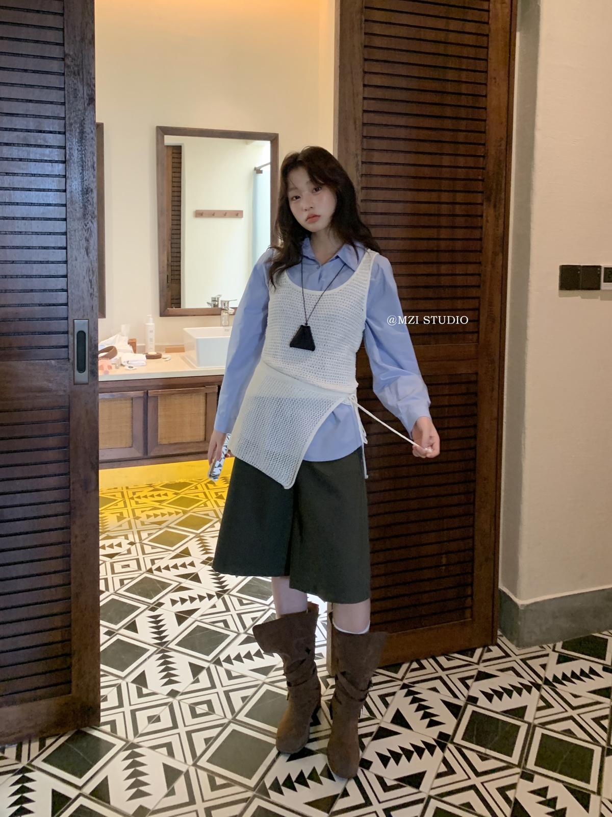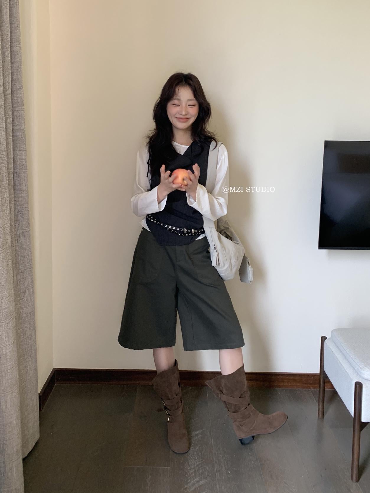 3. 【C6727】美式復古簡約雙大口袋闊腿工裝寬鬆休閒百搭中性休閒褲