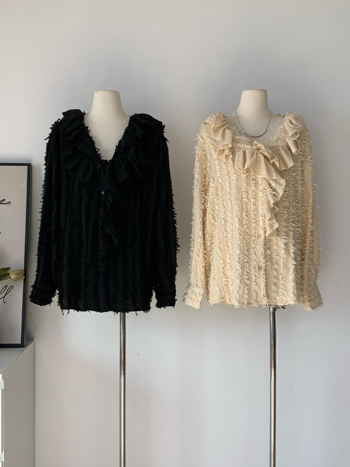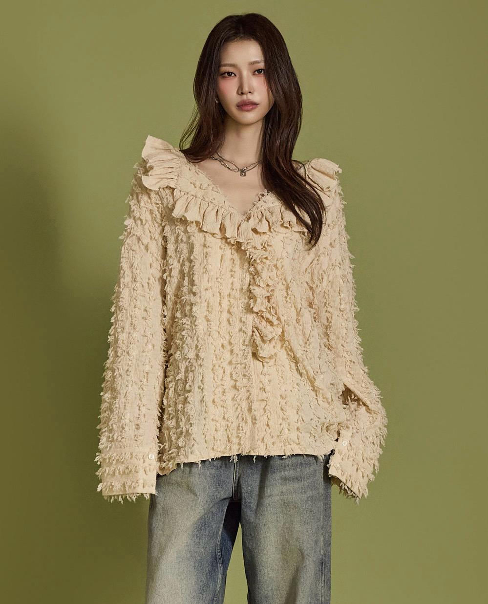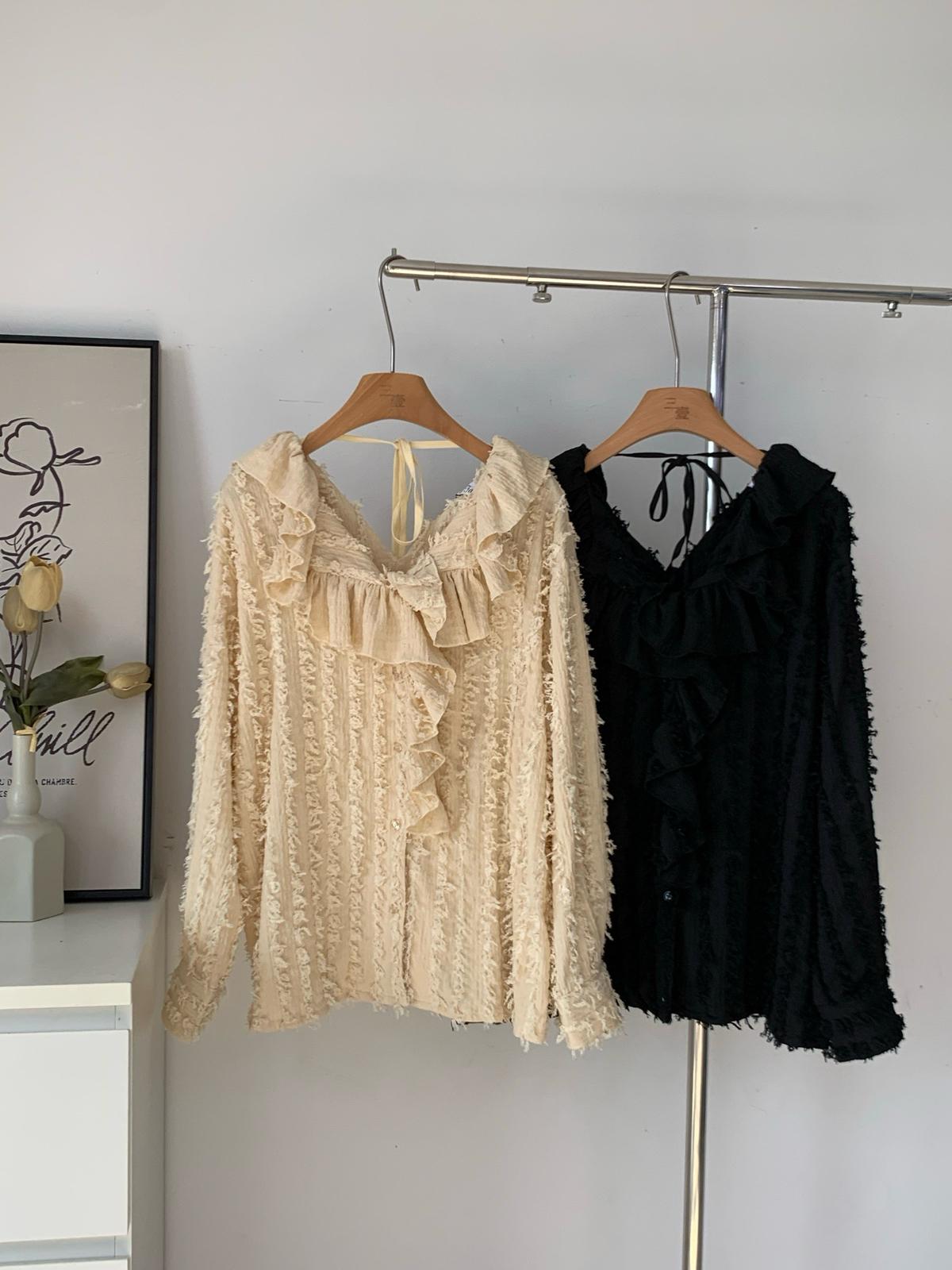 3. 【C6733】韓系時尚蕾絲v領長袖小衫