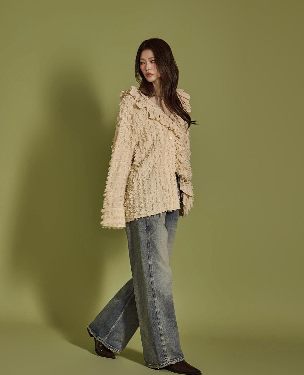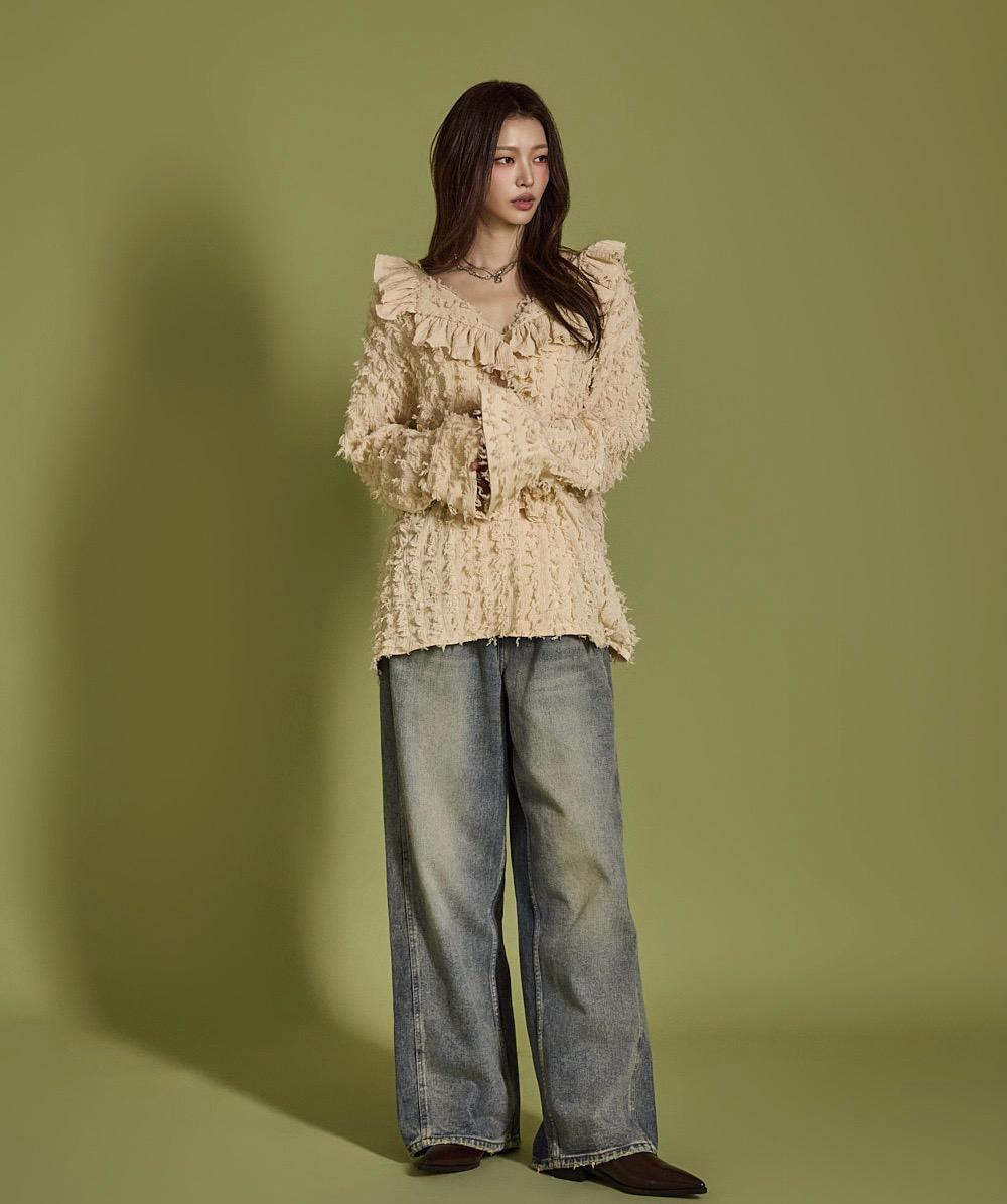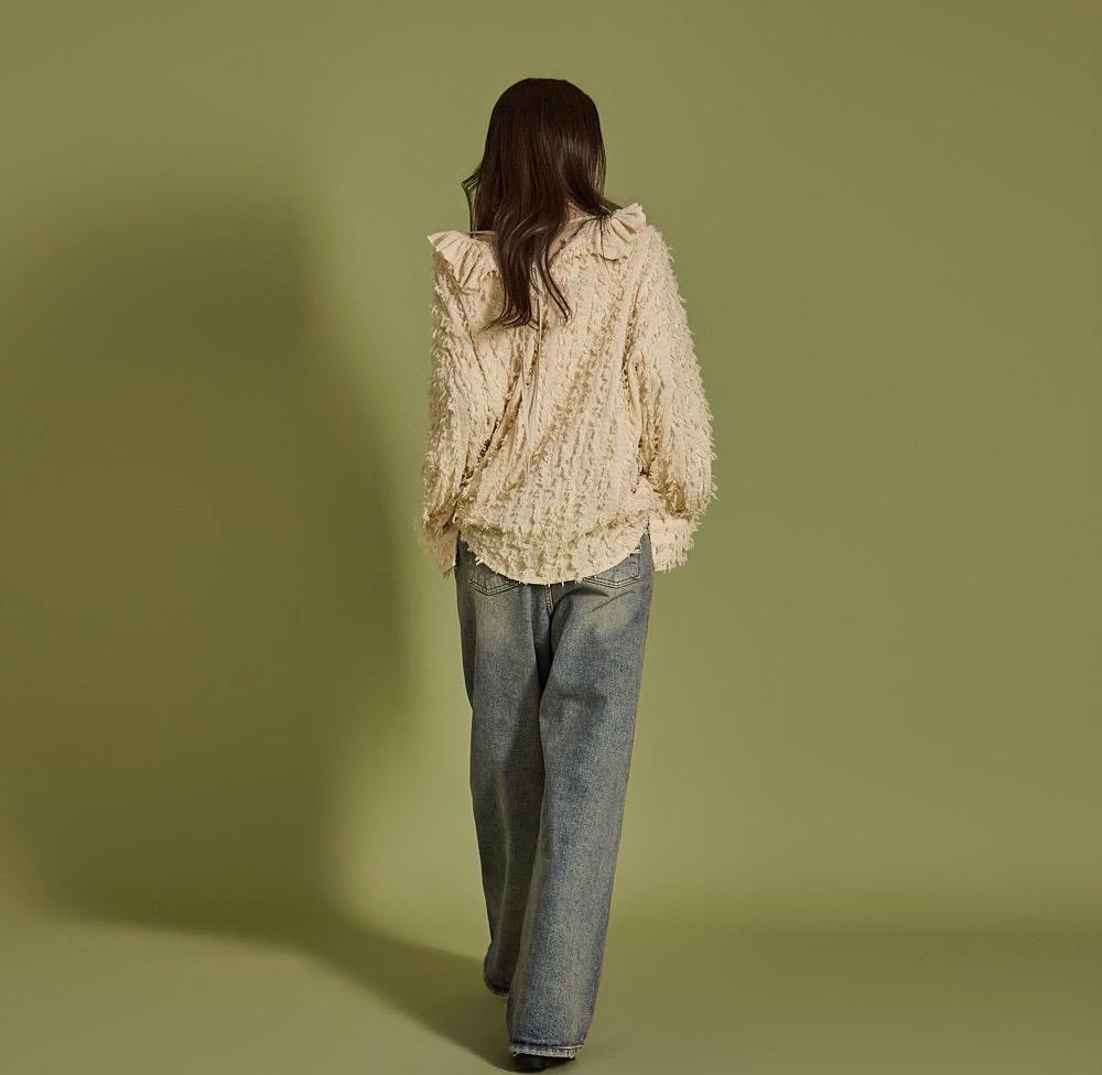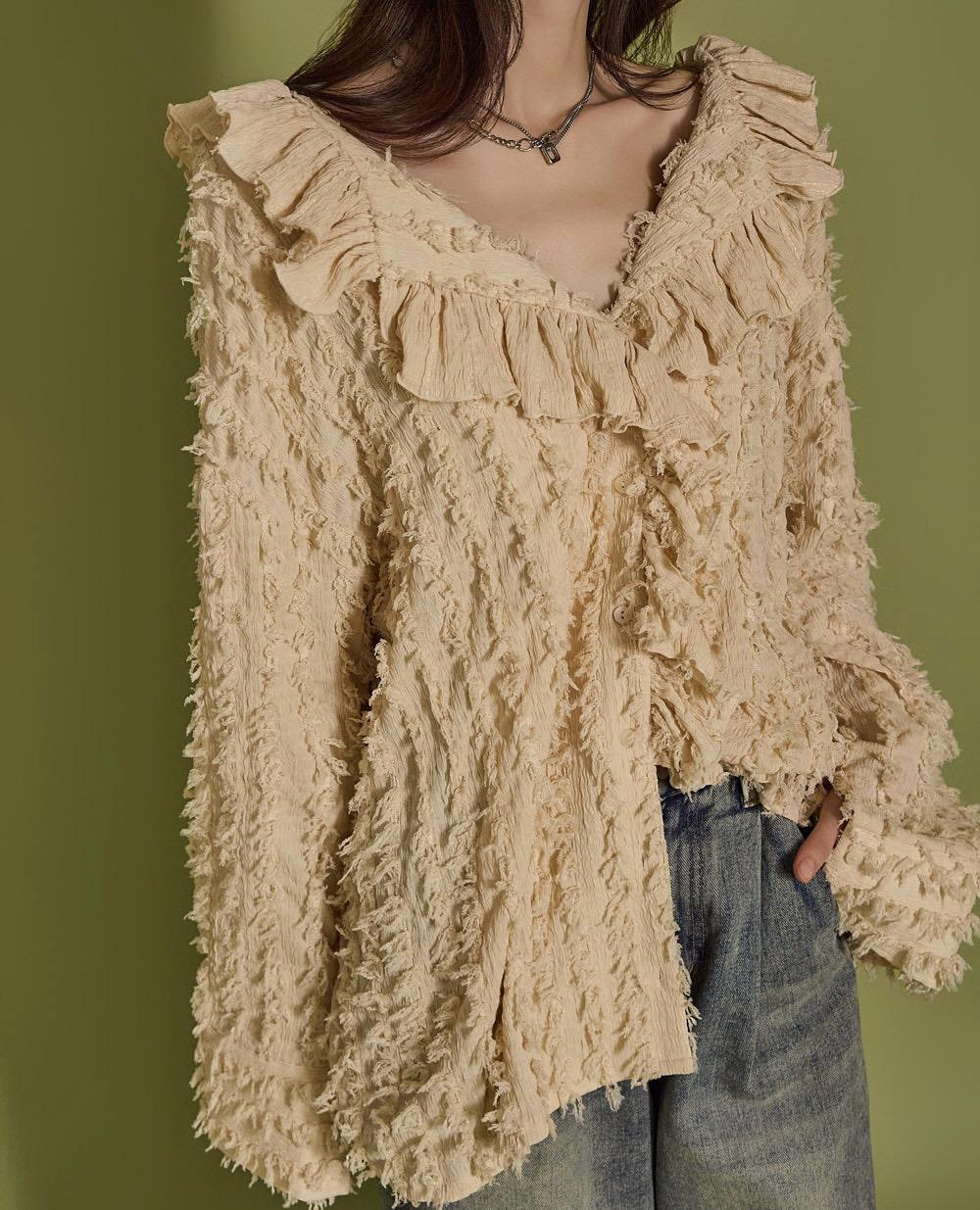 3. 【C6733】韓系時尚蕾絲v領長袖小衫