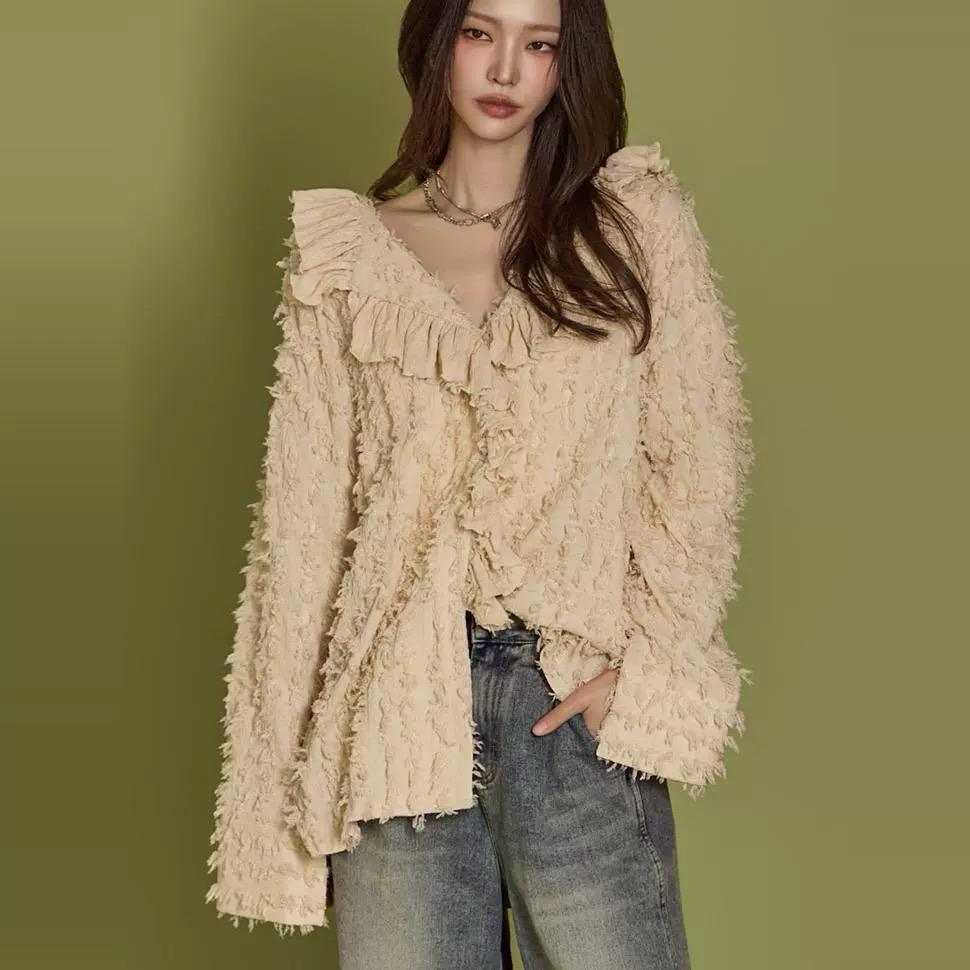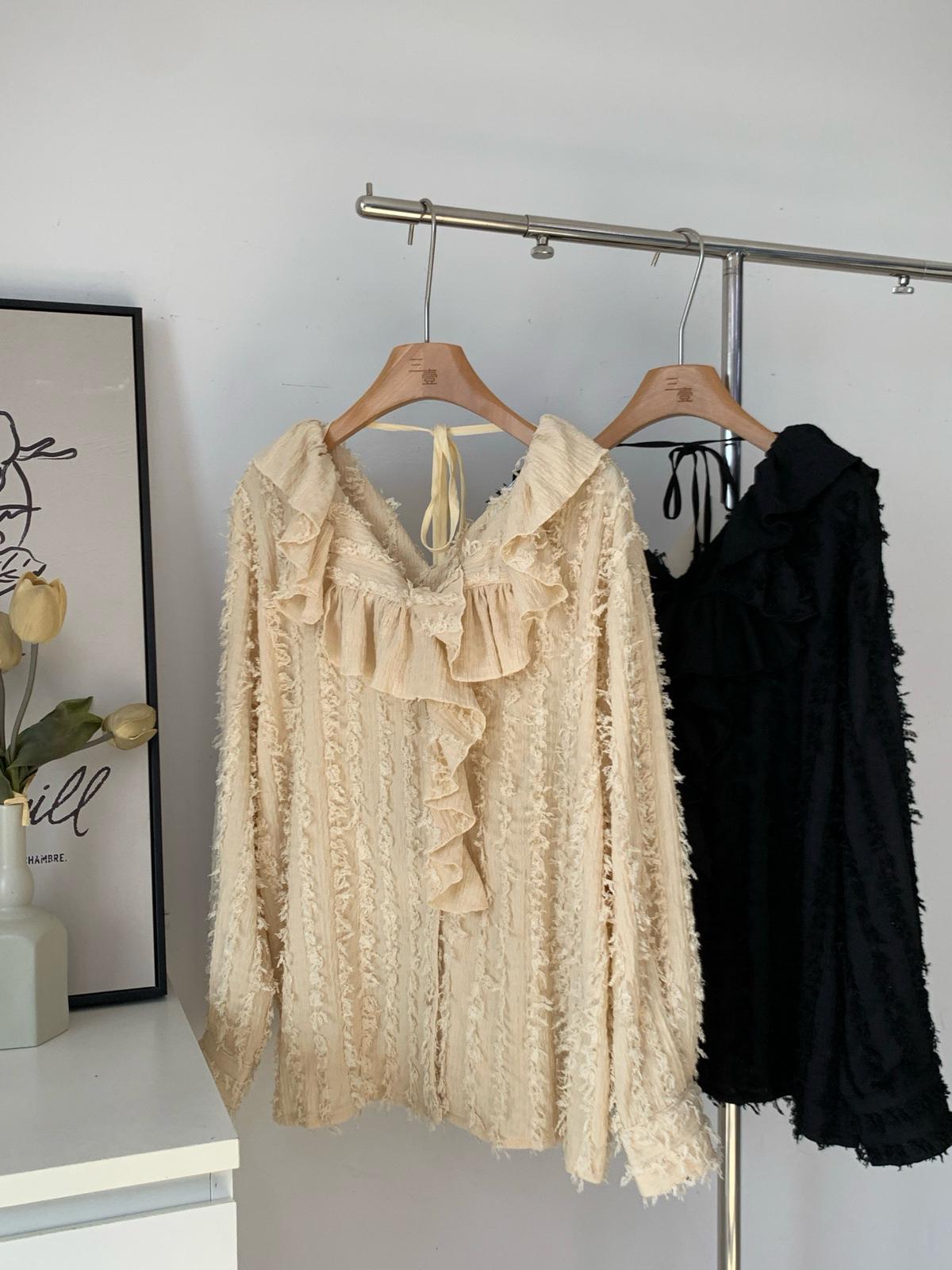 【C6733】韓系時尚蕾絲v領長袖小衫