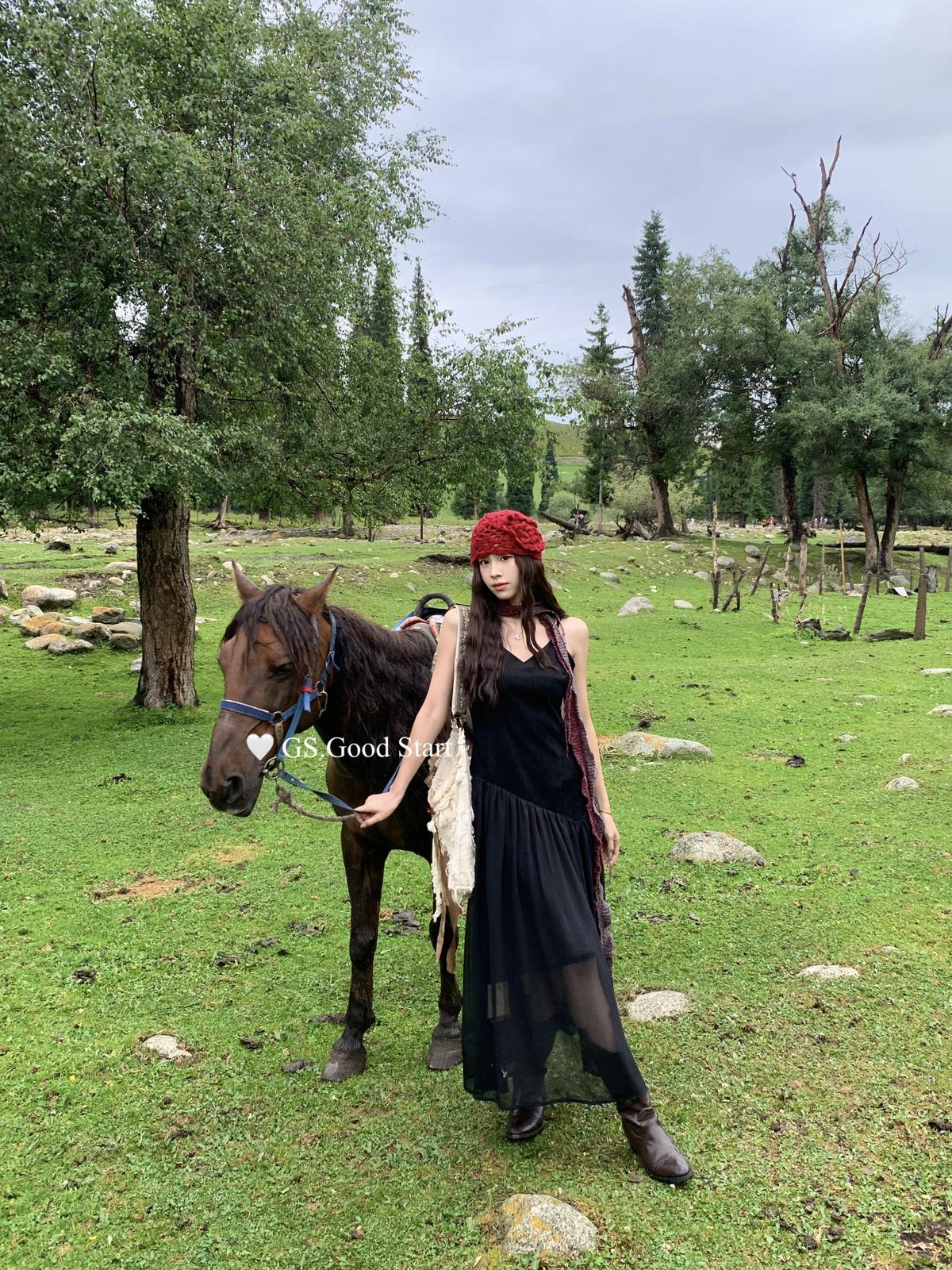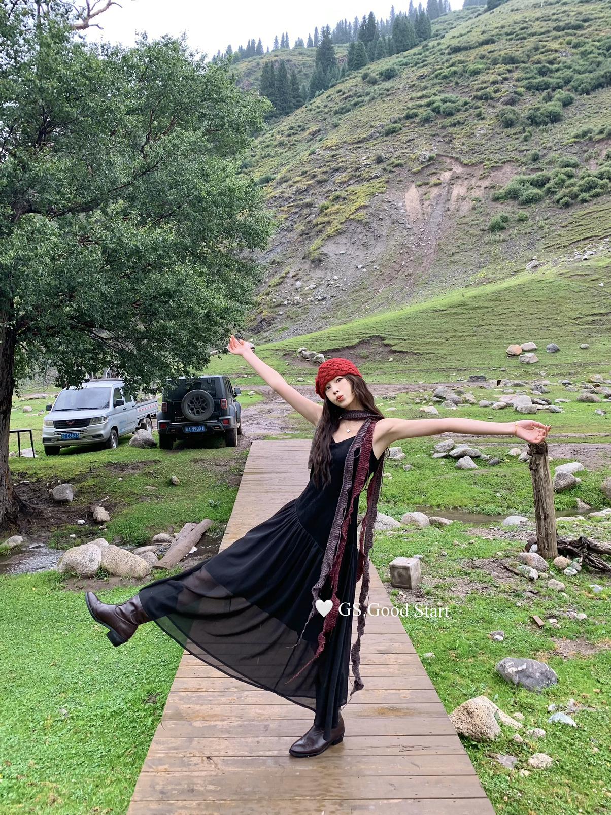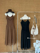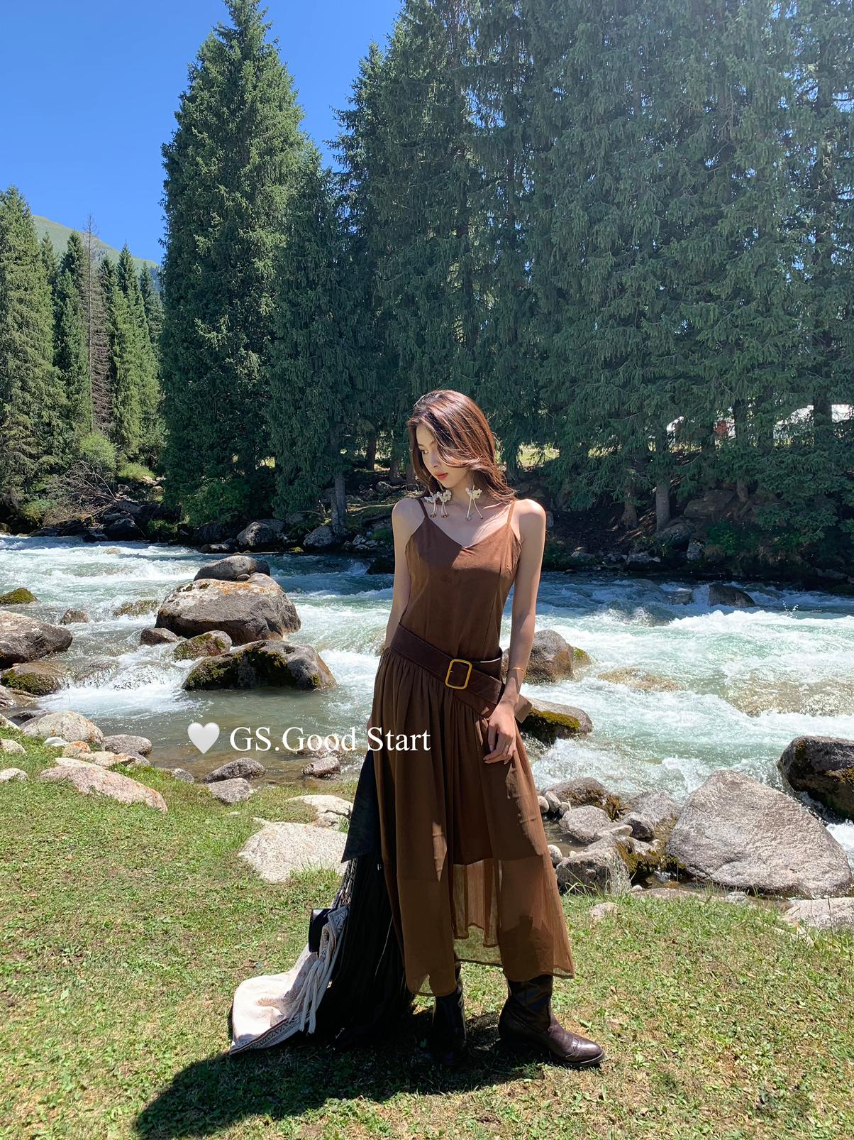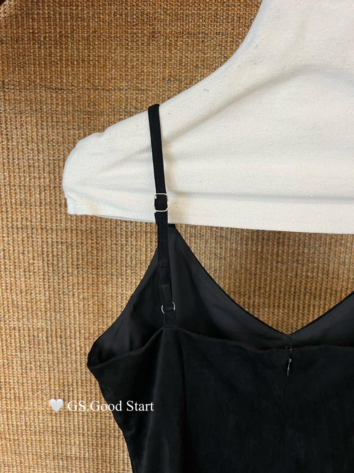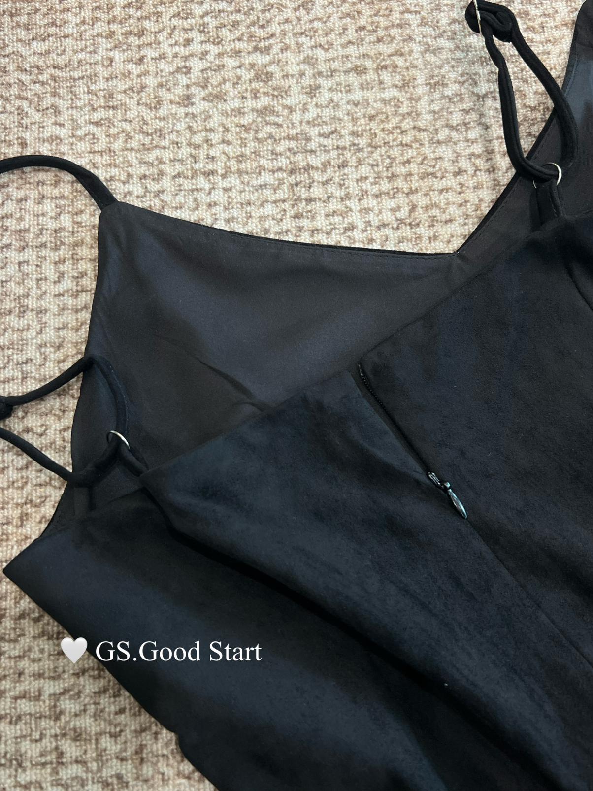 3. 【C6737】尖叫安利!自帶氛圍感!秋冬波嬉風·網紗拼接麂皮絨疊穿吊帶連衣裙
