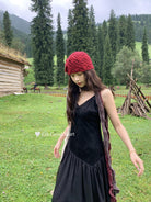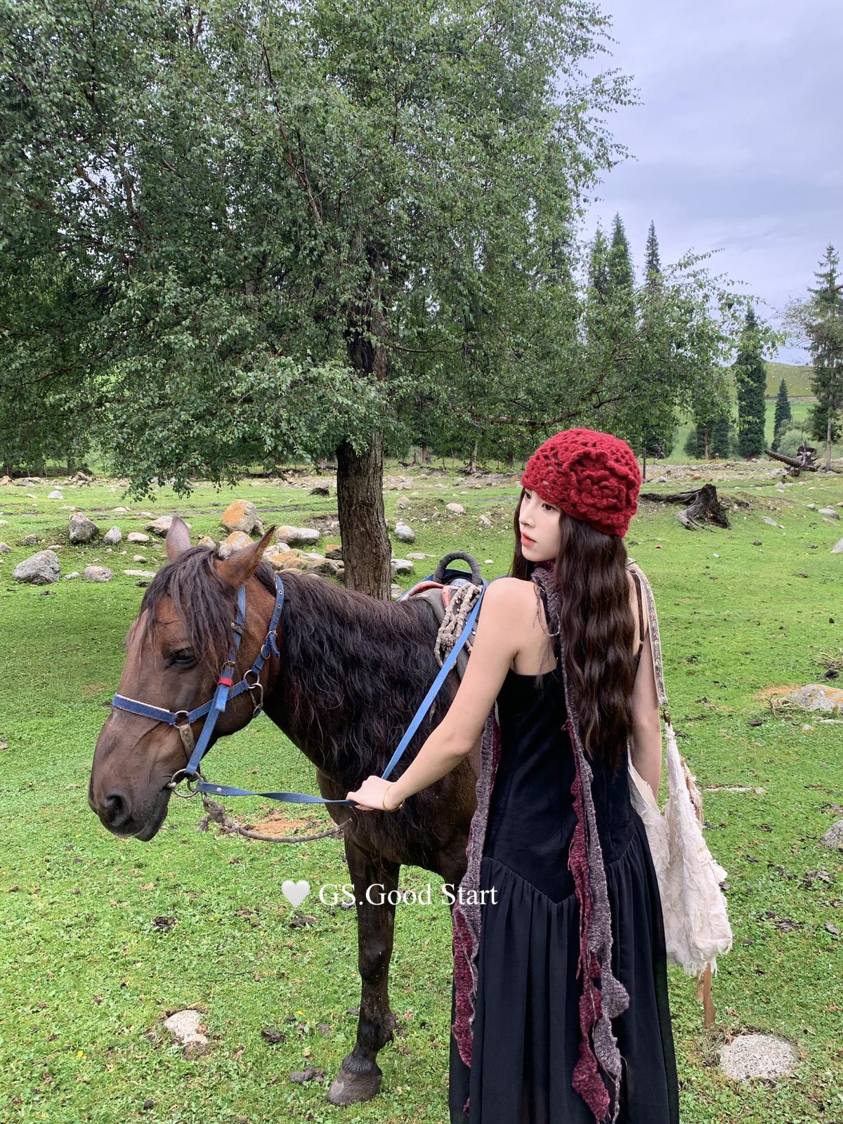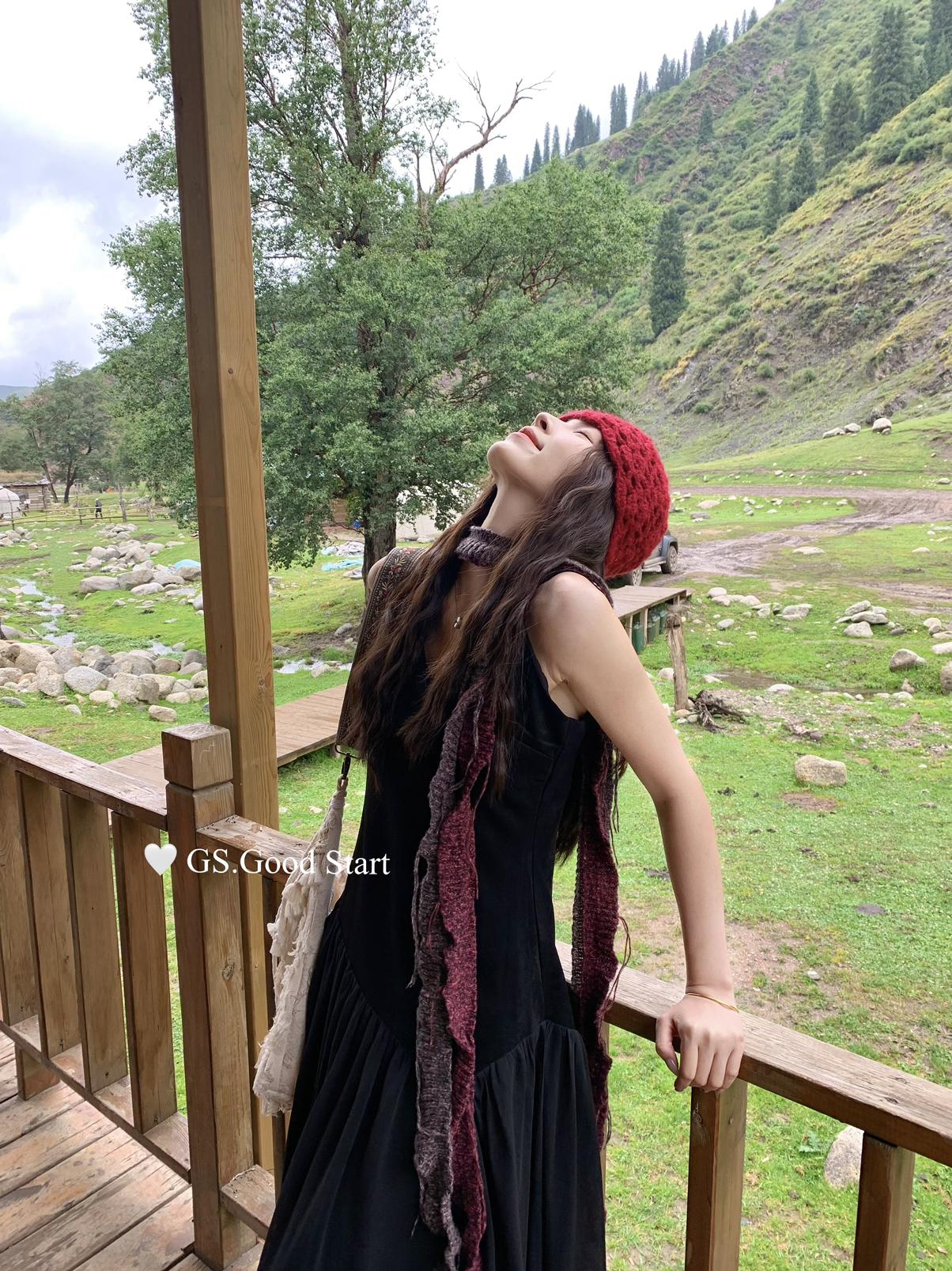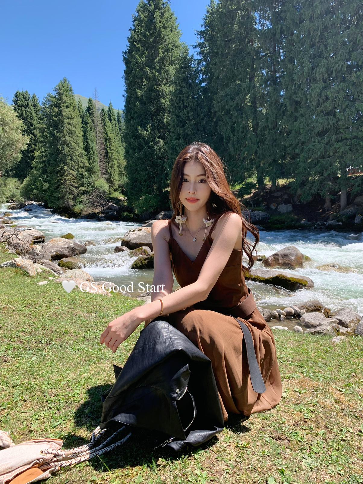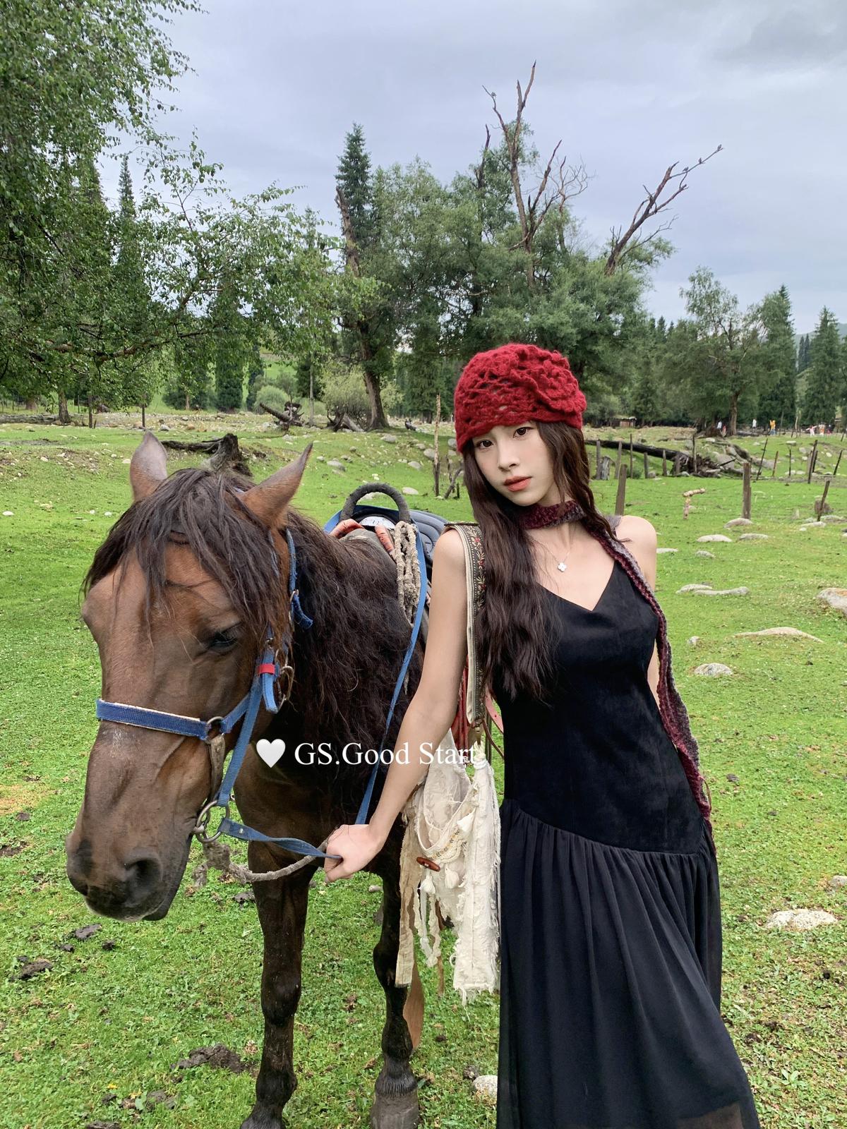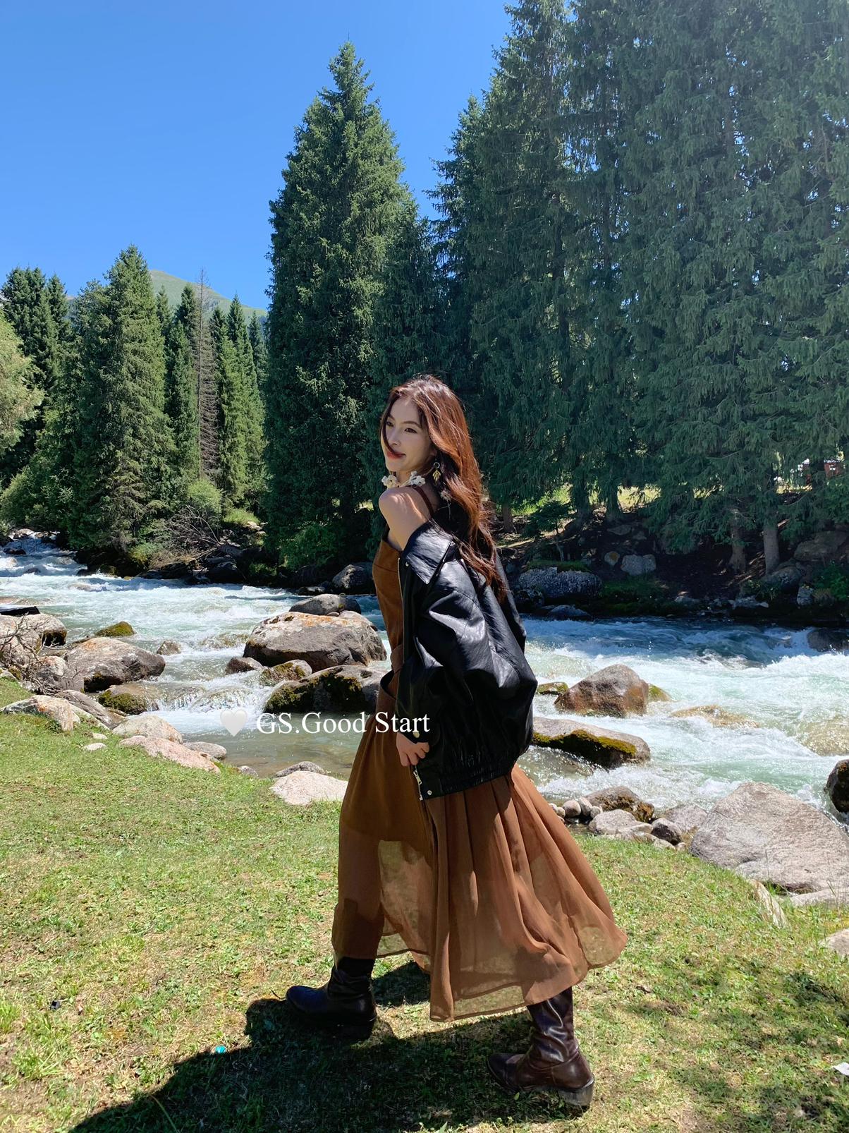3. 【C6737】尖叫安利!自帶氛圍感!秋冬波嬉風·網紗拼接麂皮絨疊穿吊帶連衣裙