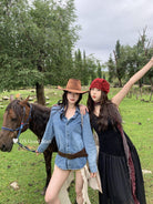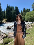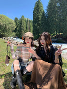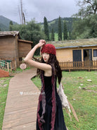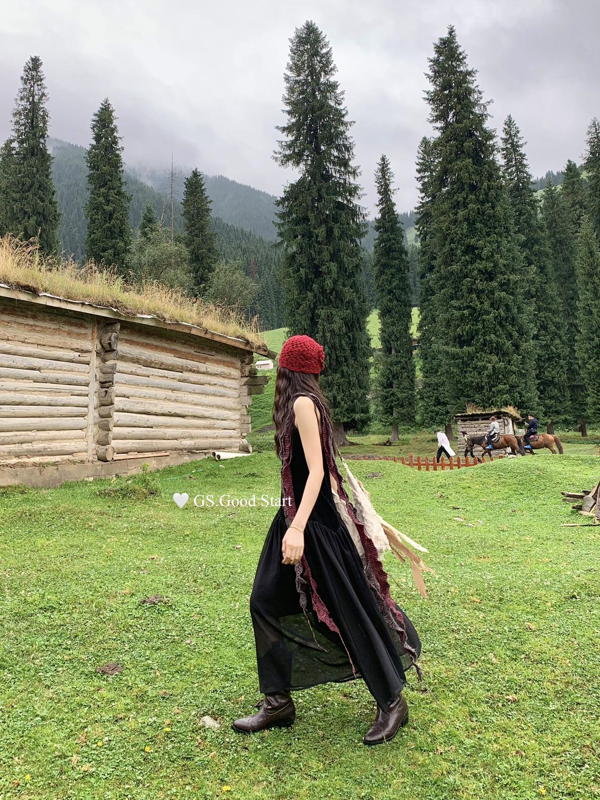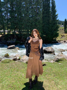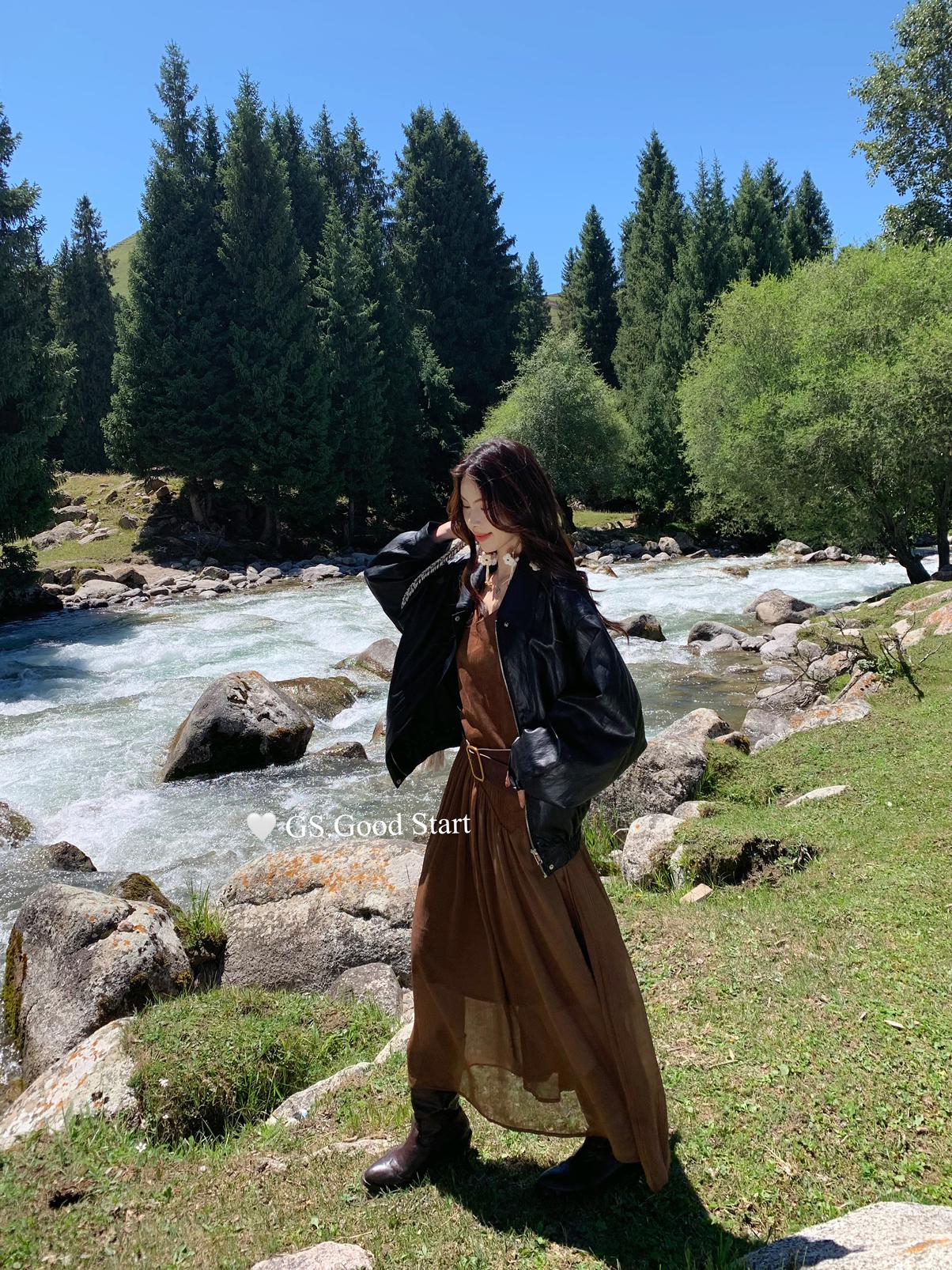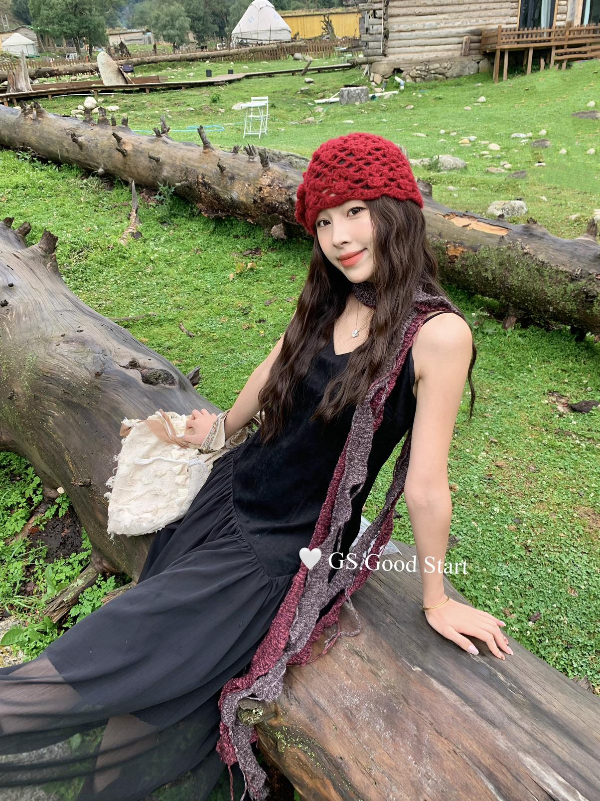【C6737】尖叫安利!自帶氛圍感!秋冬波嬉風·網紗拼接麂皮絨疊穿吊帶連衣裙