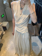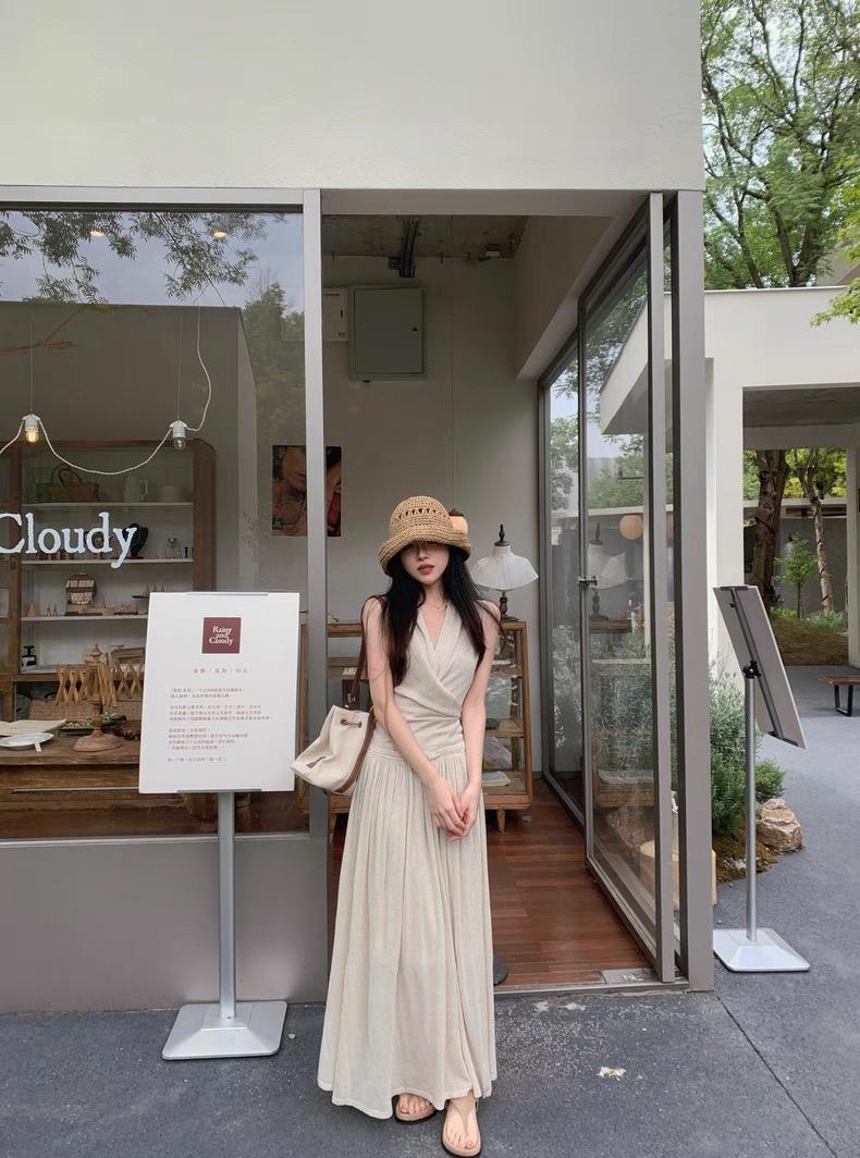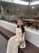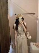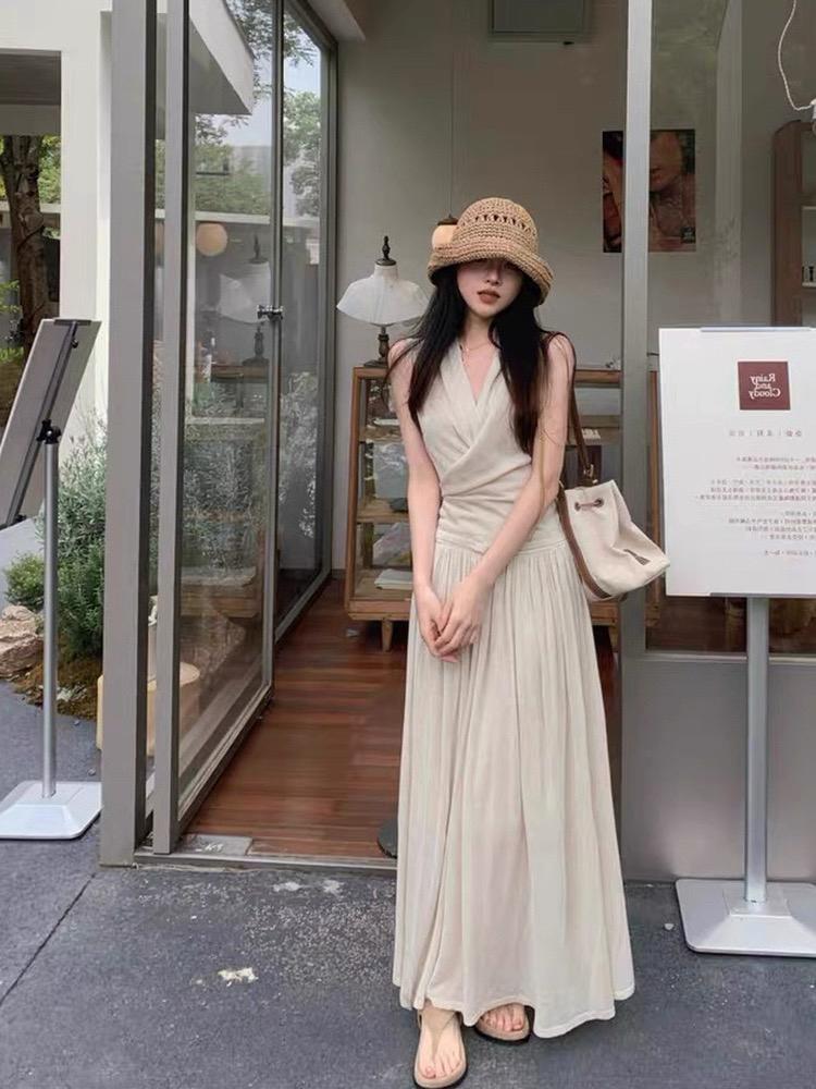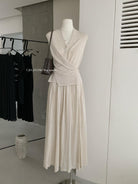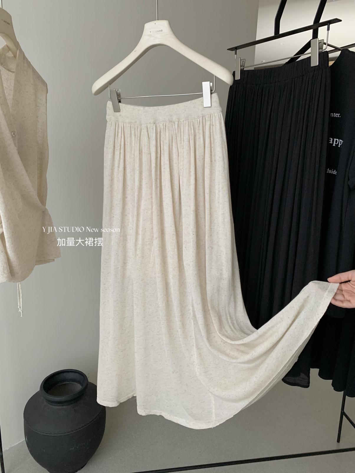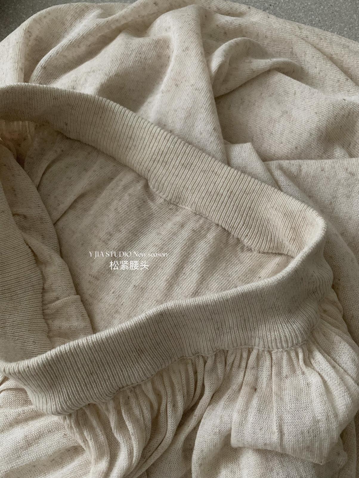【C6751】氣質無袖開叉不規則綁帶收腰針織背心+鬆緊腰壓褶百搭顯瘦半身裙套裝