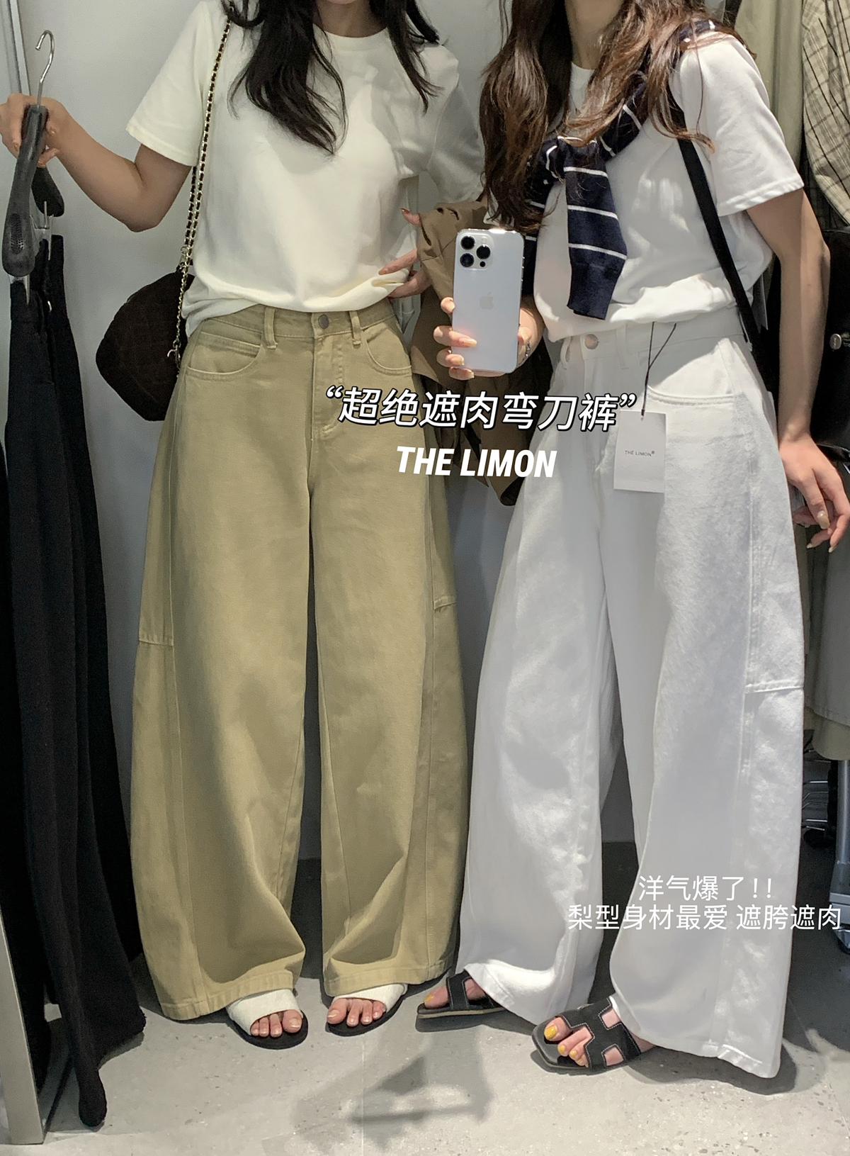 【C6772】寬鬆遮胯顯瘦彎刀牛仔褲