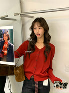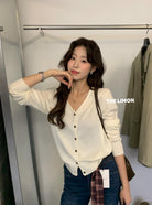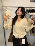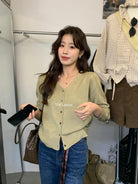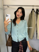 【C6776】鬆弛感羊毛混紡V領百搭針織開衫(含8%羊毛)