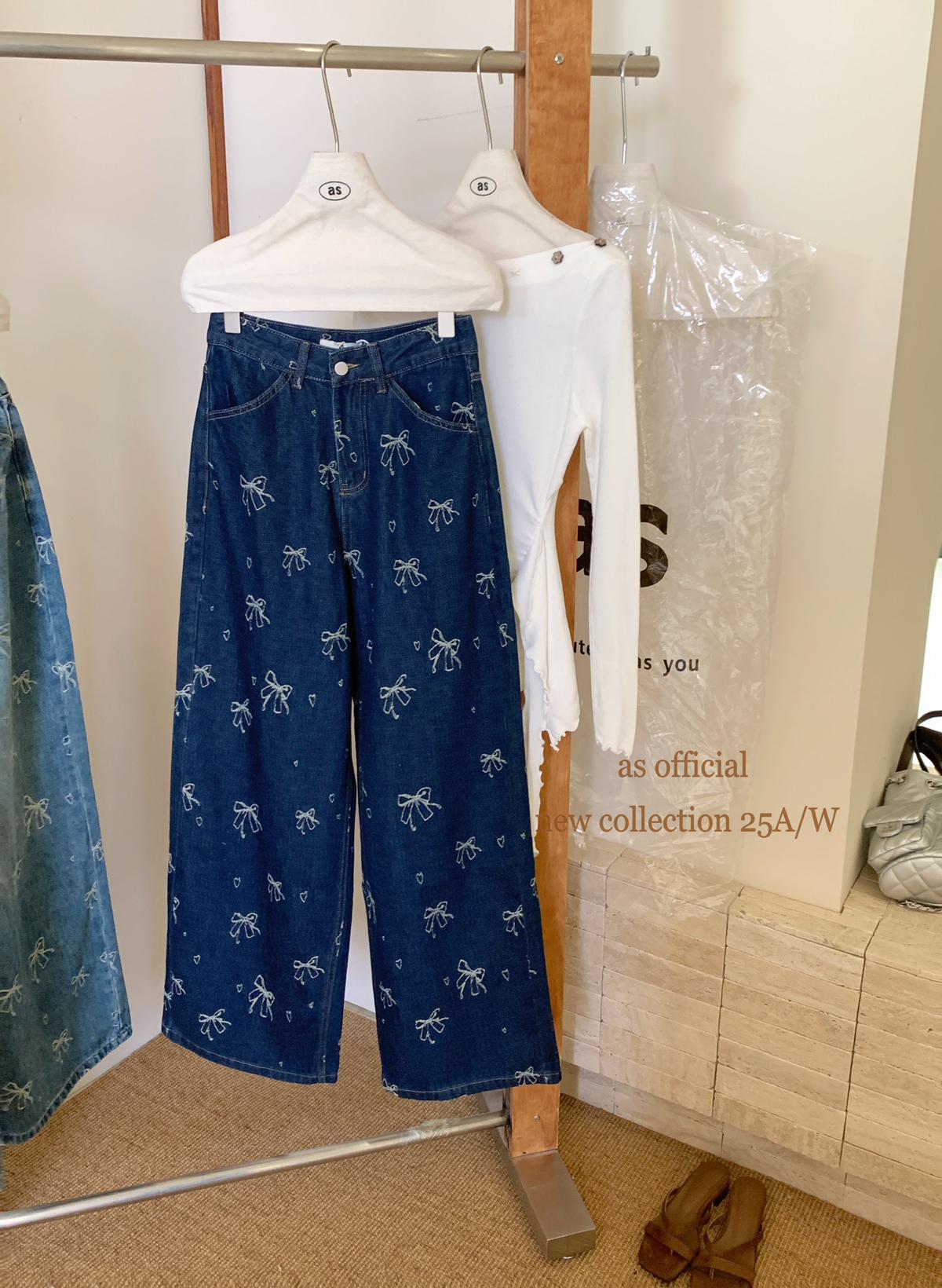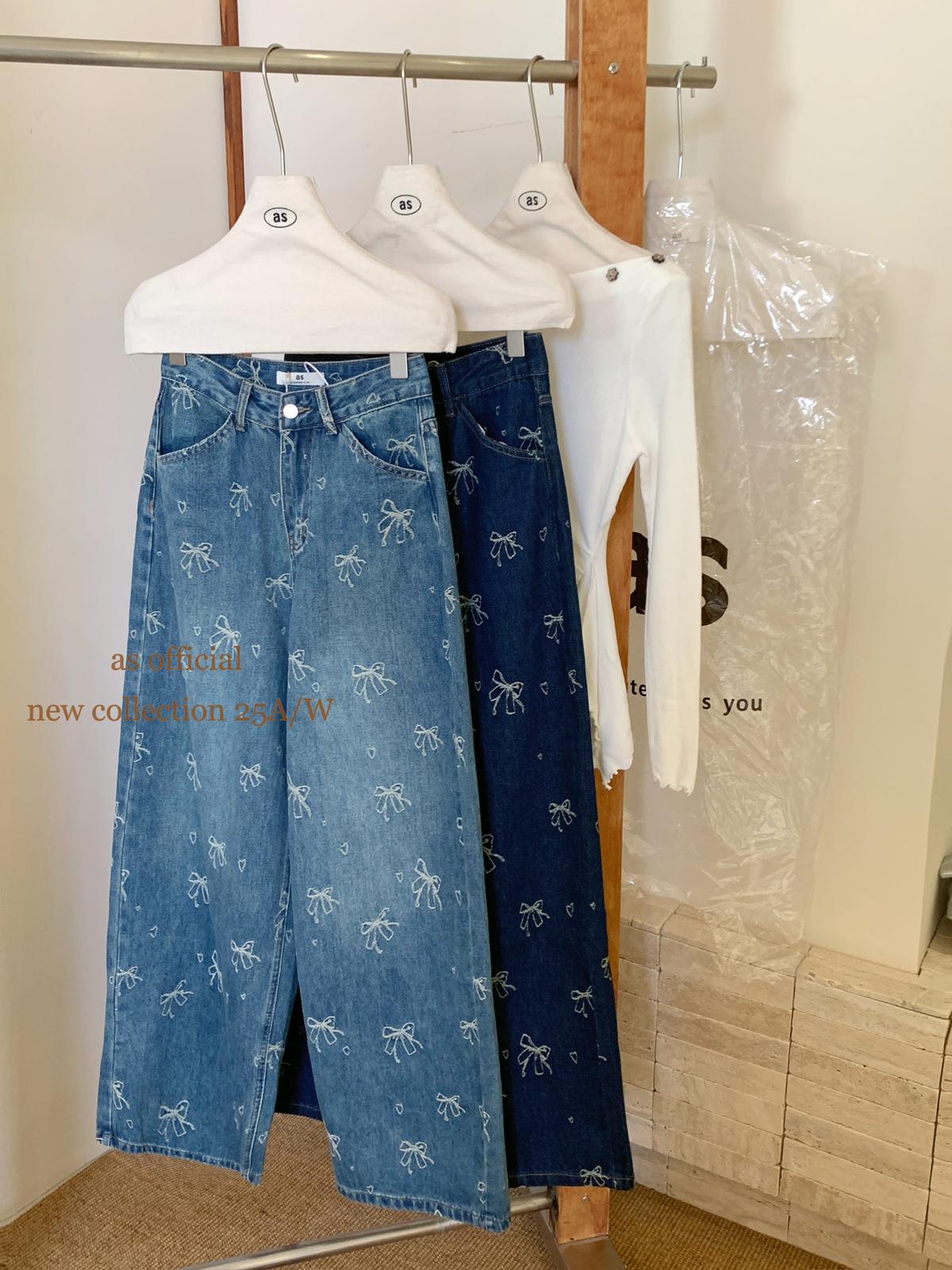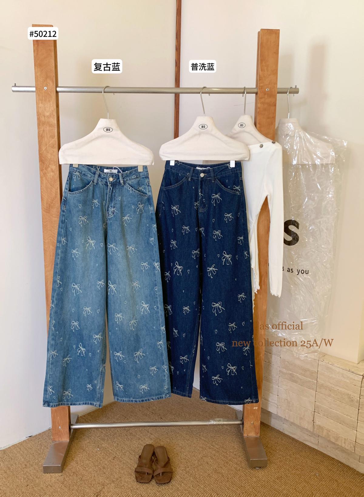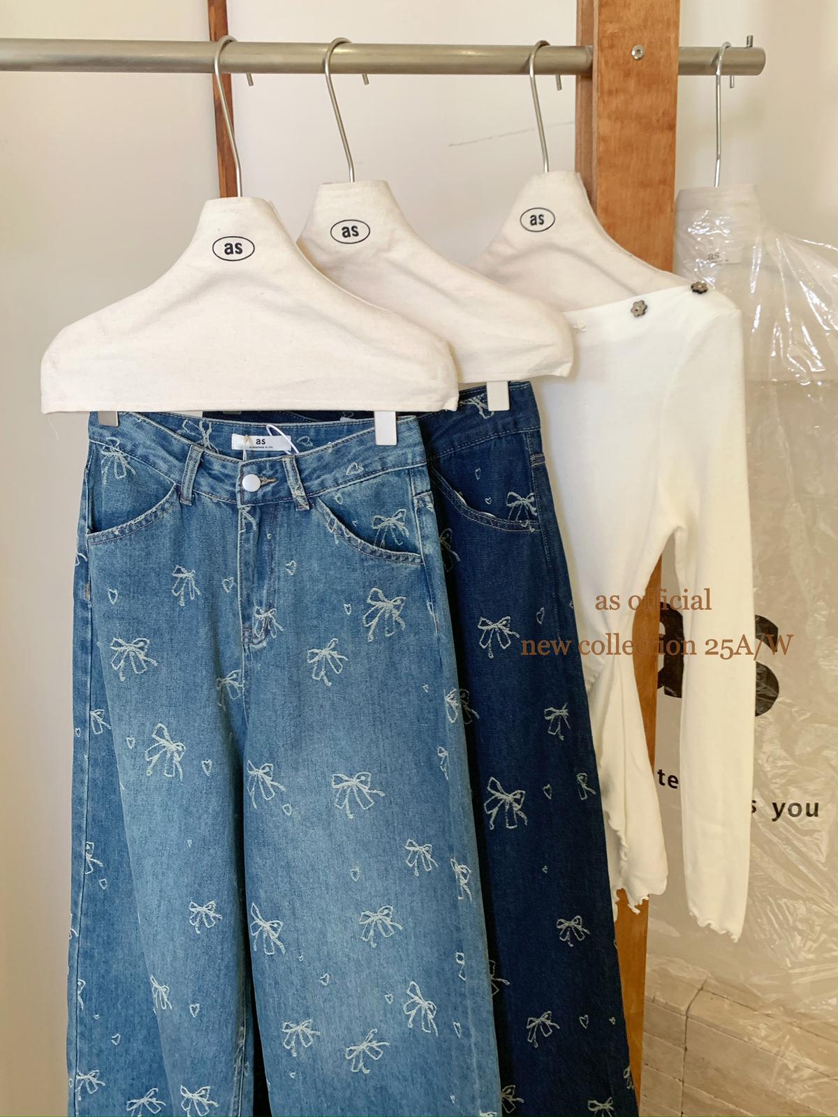 【C6871】原牛色的浪漫格調• 蝴蝶結印花闊腿褲 25AW吸睛~牛仔褲