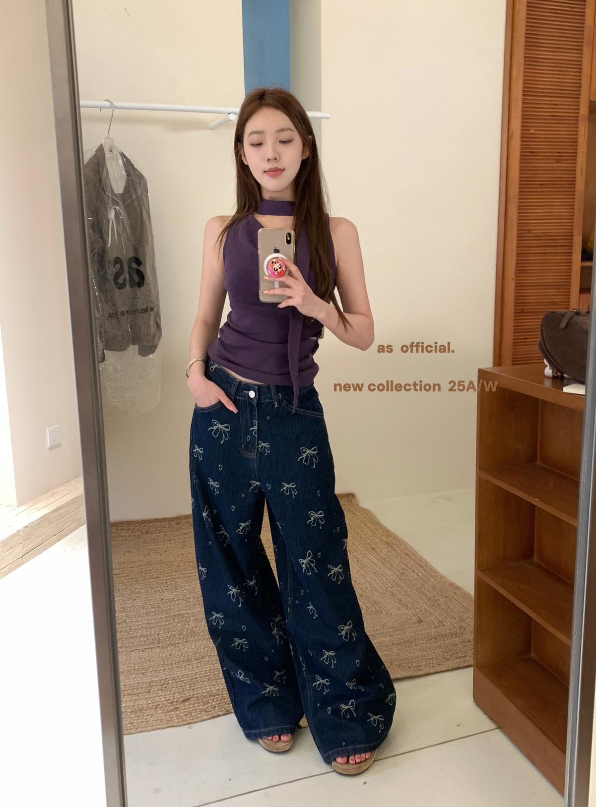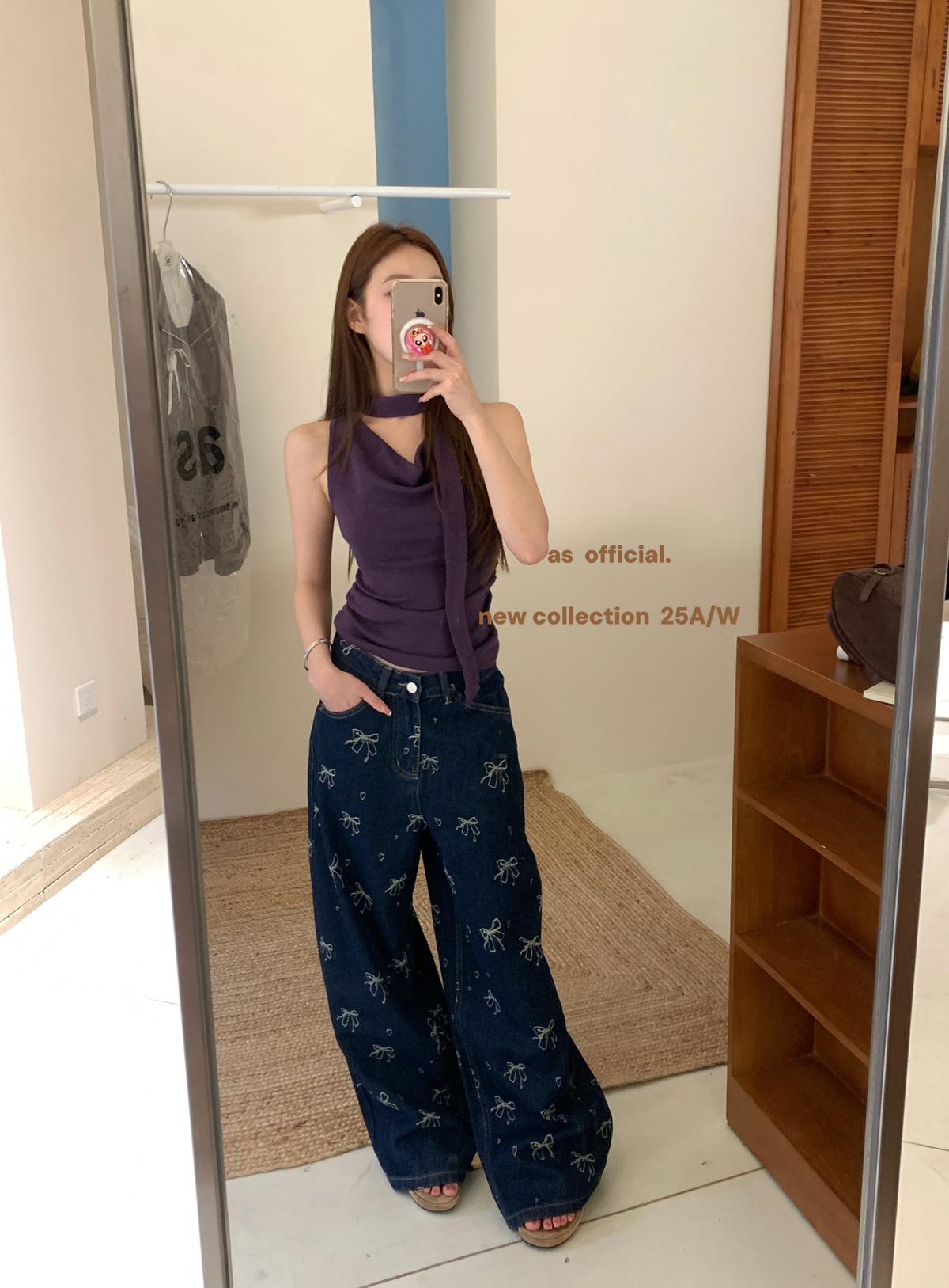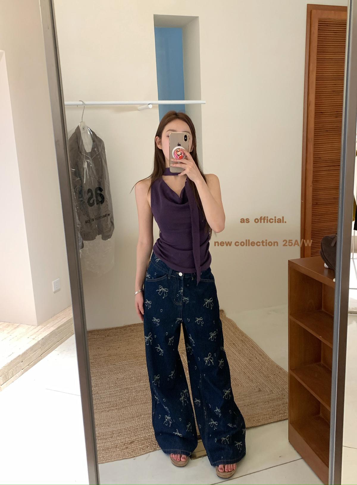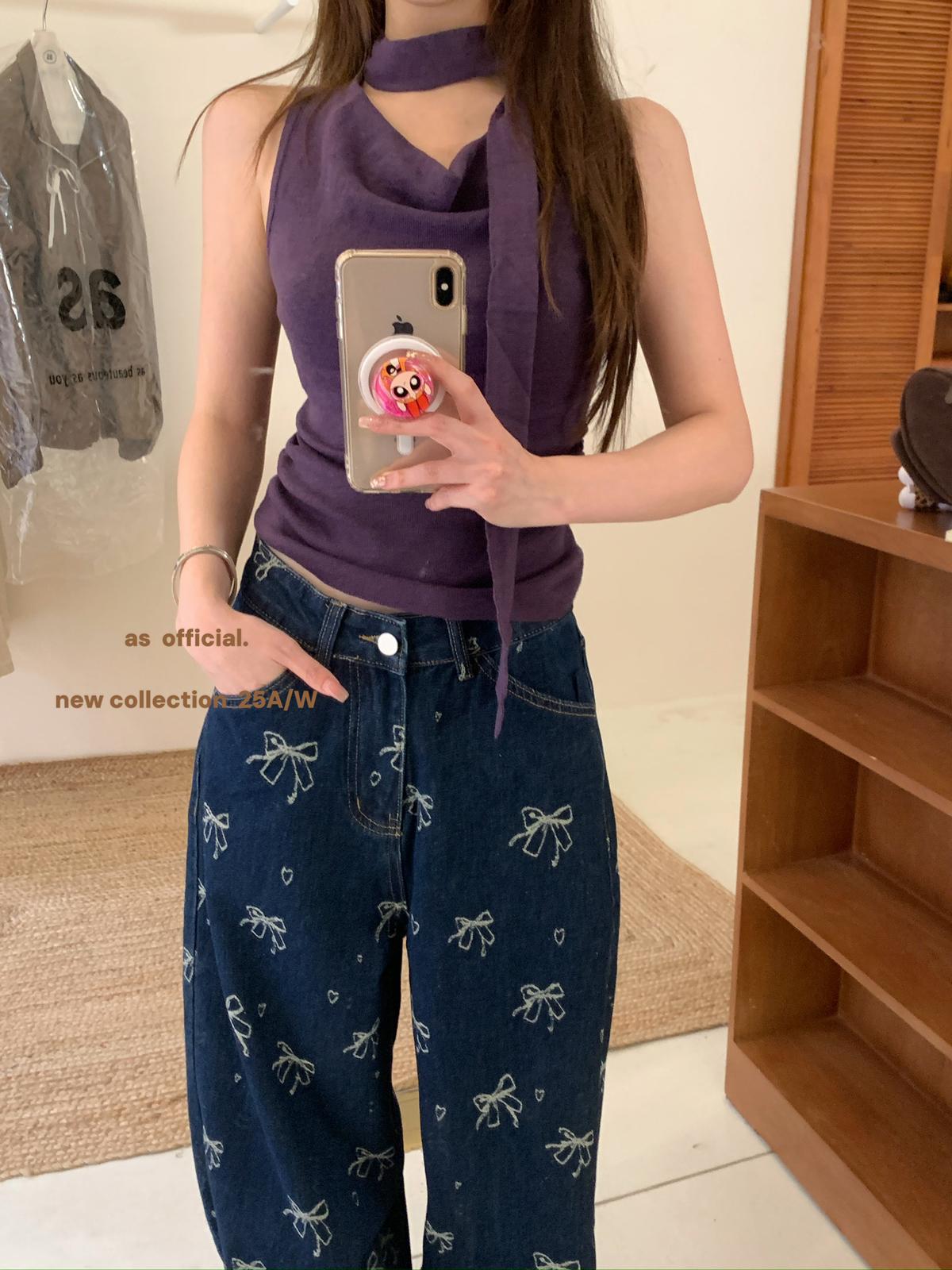 【C6871】原牛色的浪漫格調• 蝴蝶結印花闊腿褲 25AW吸睛~牛仔褲