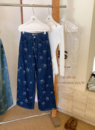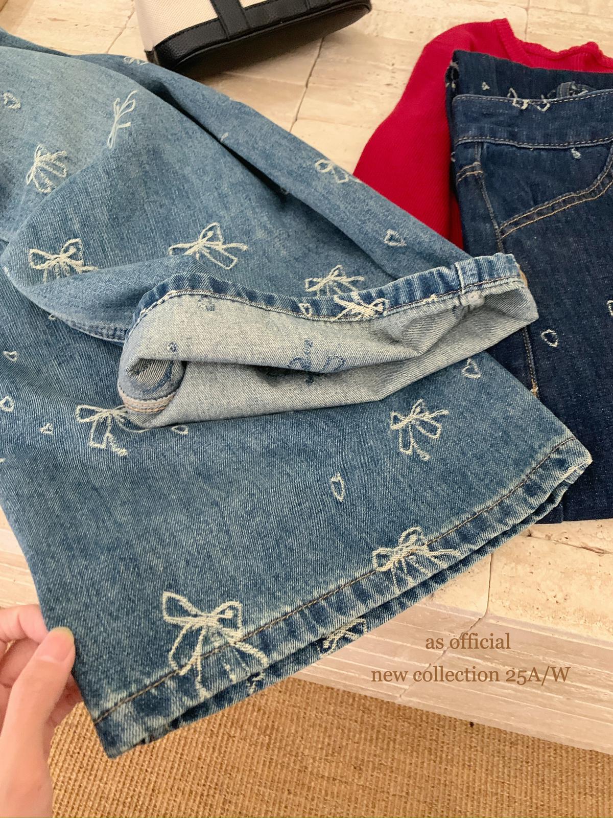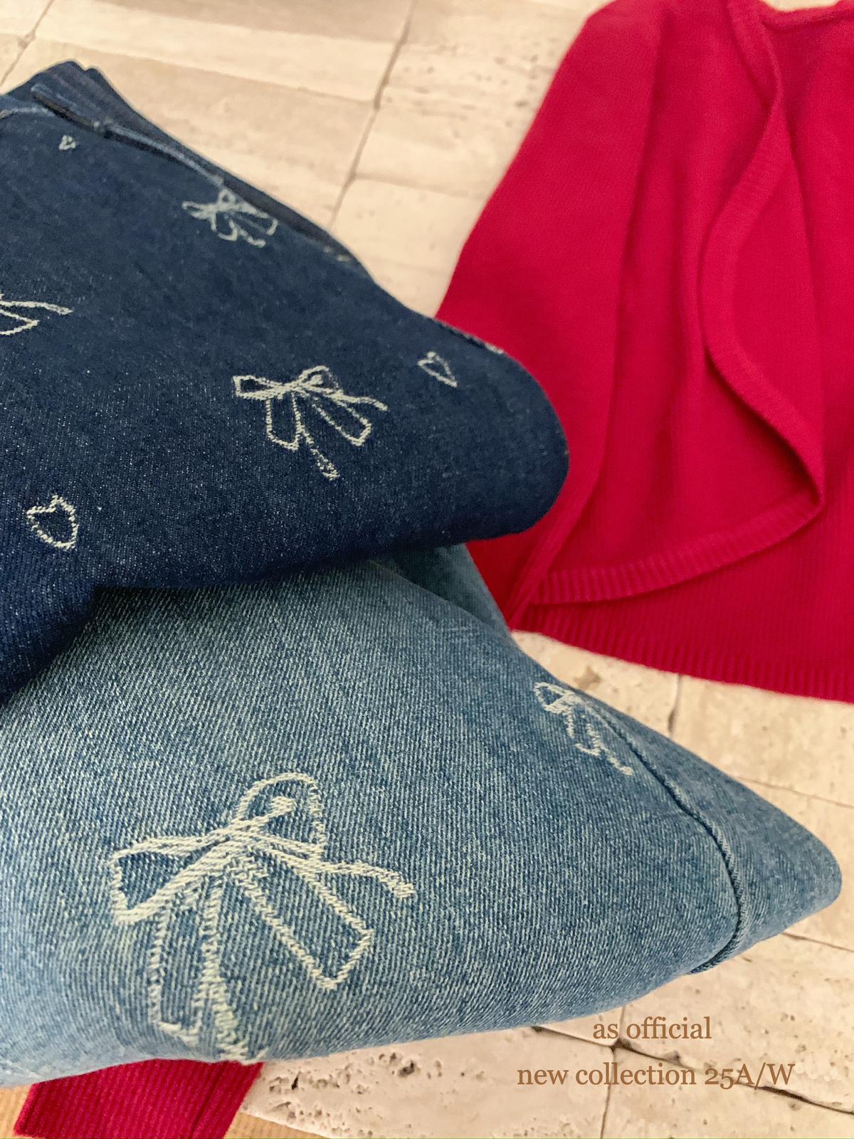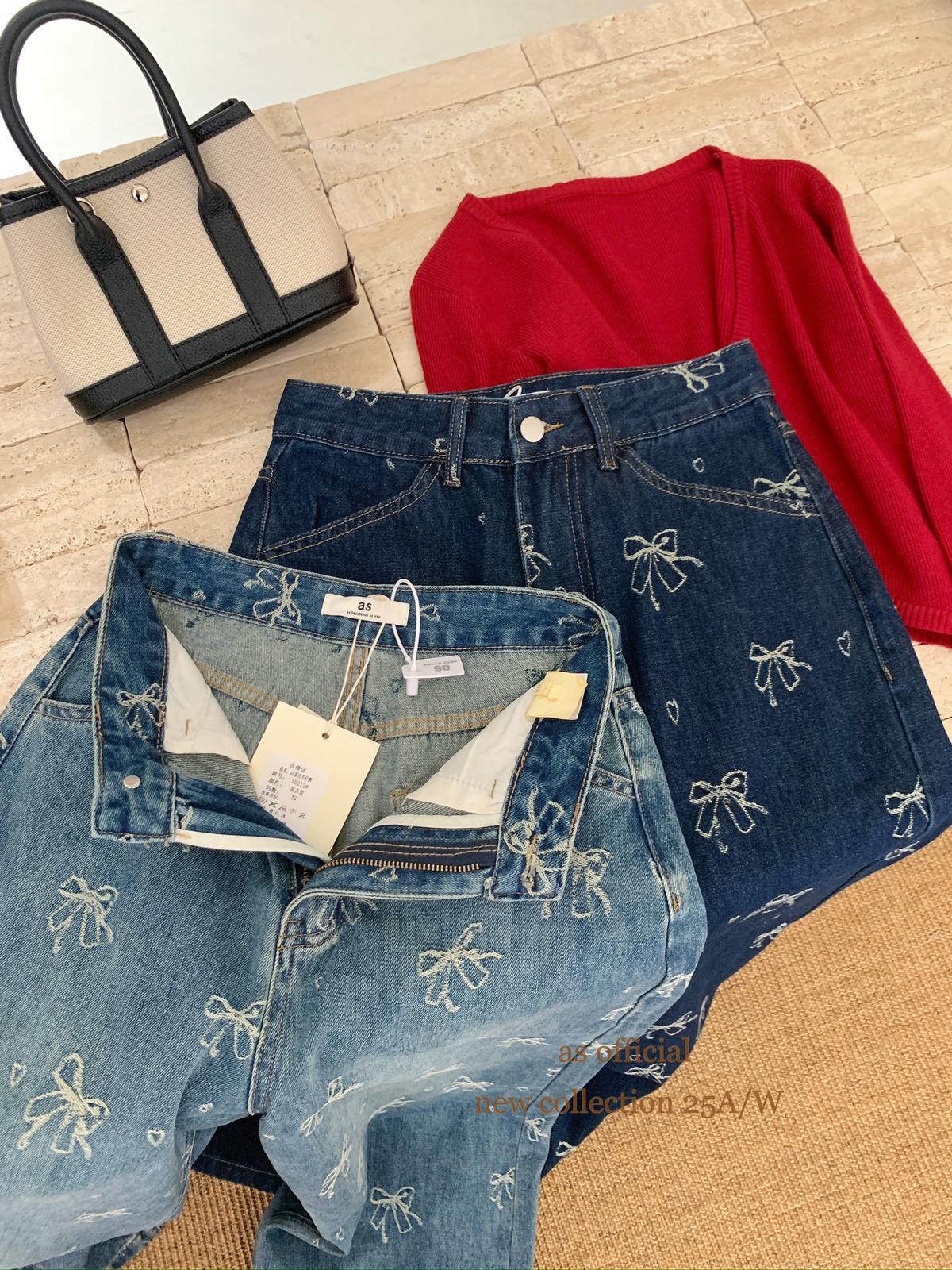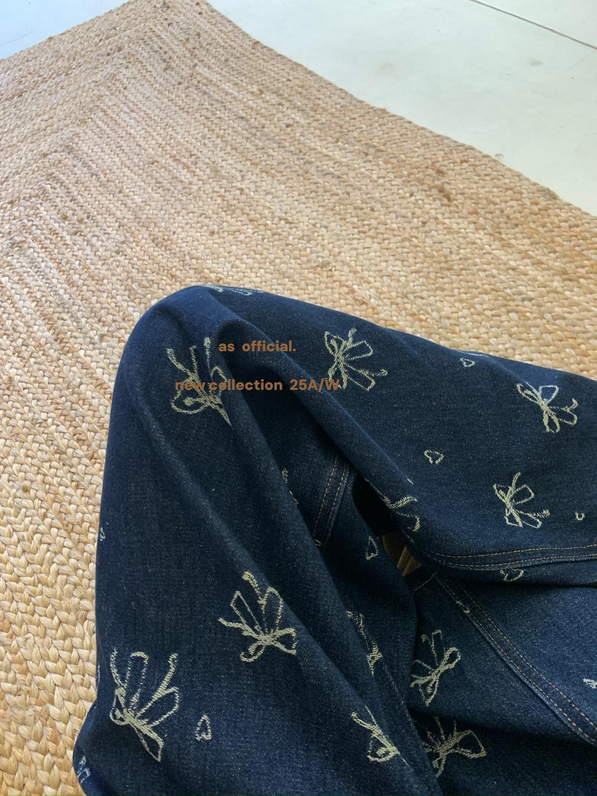 3. 【C6871】原牛色的浪漫格調• 蝴蝶結印花闊腿褲 25AW吸睛~牛仔褲