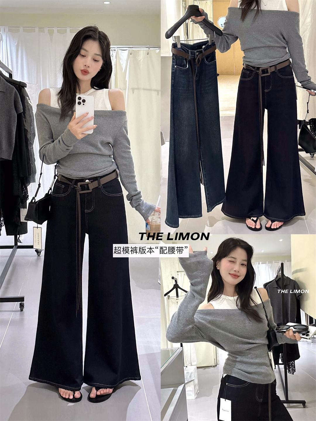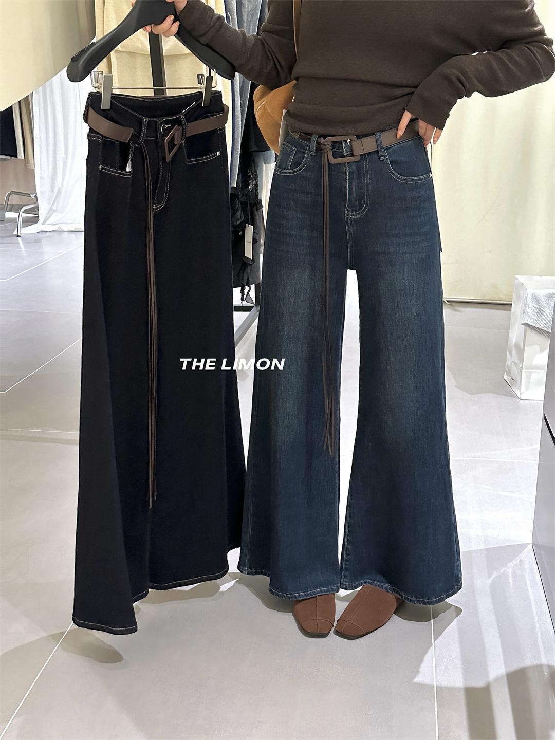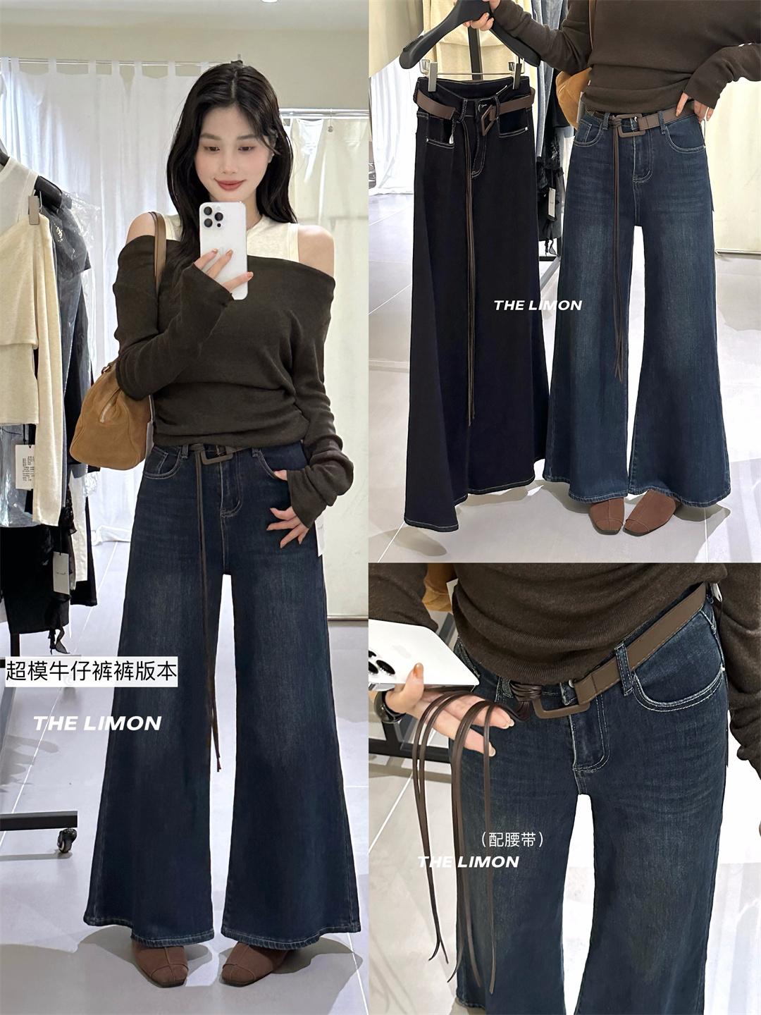 【C6880】超模褲!高腰顯瘦微喇牛仔褲(配腰帶)
