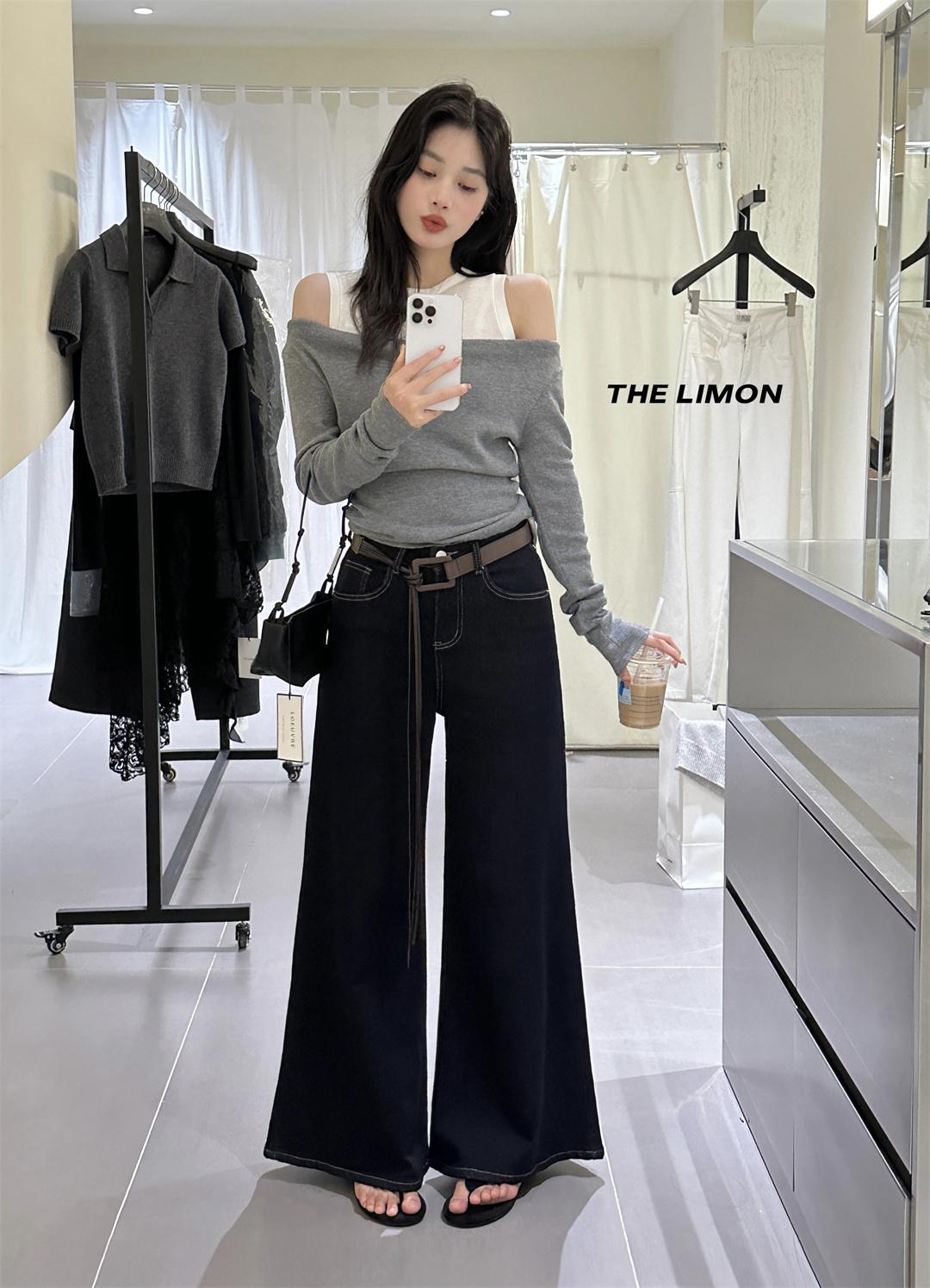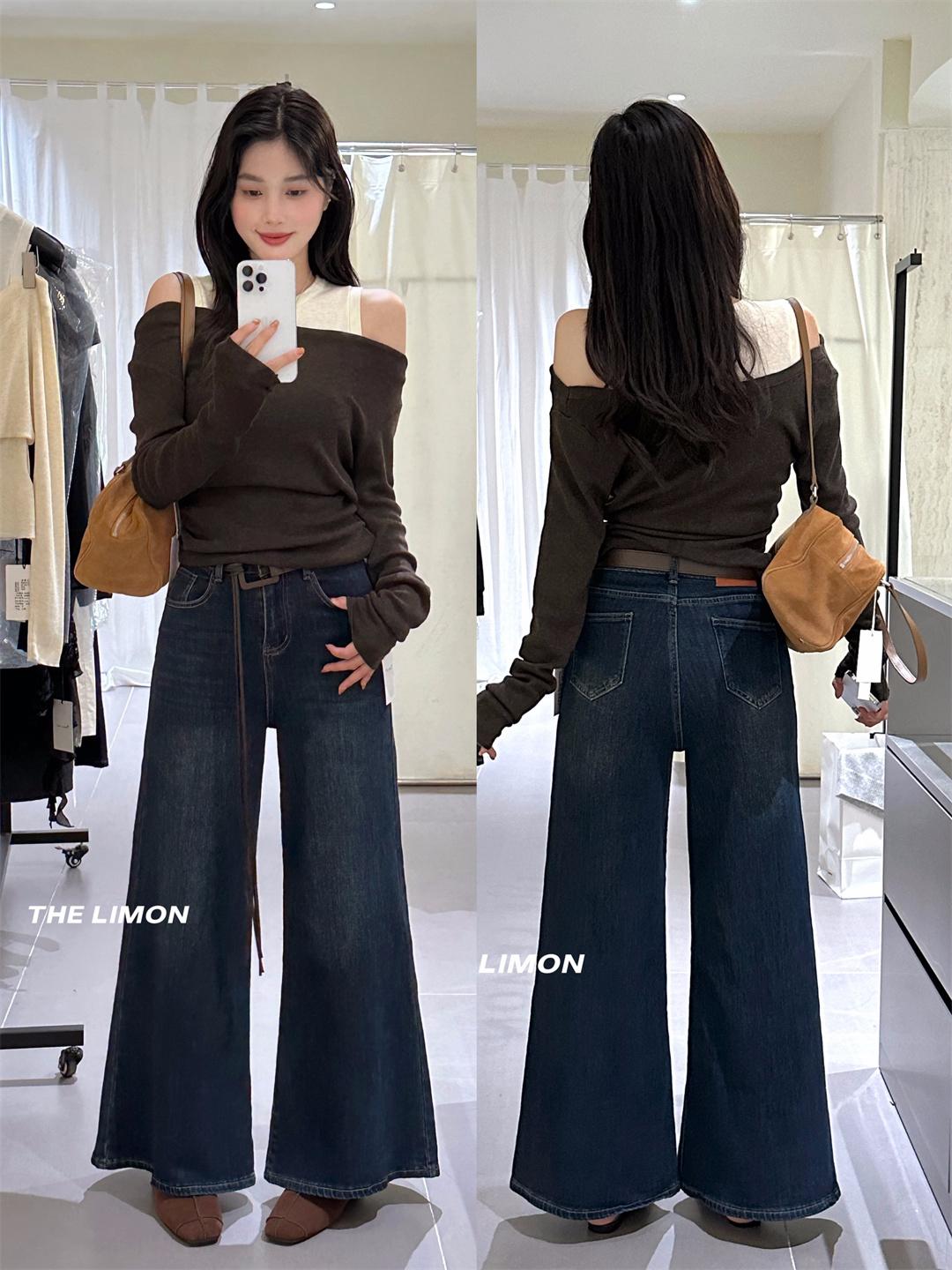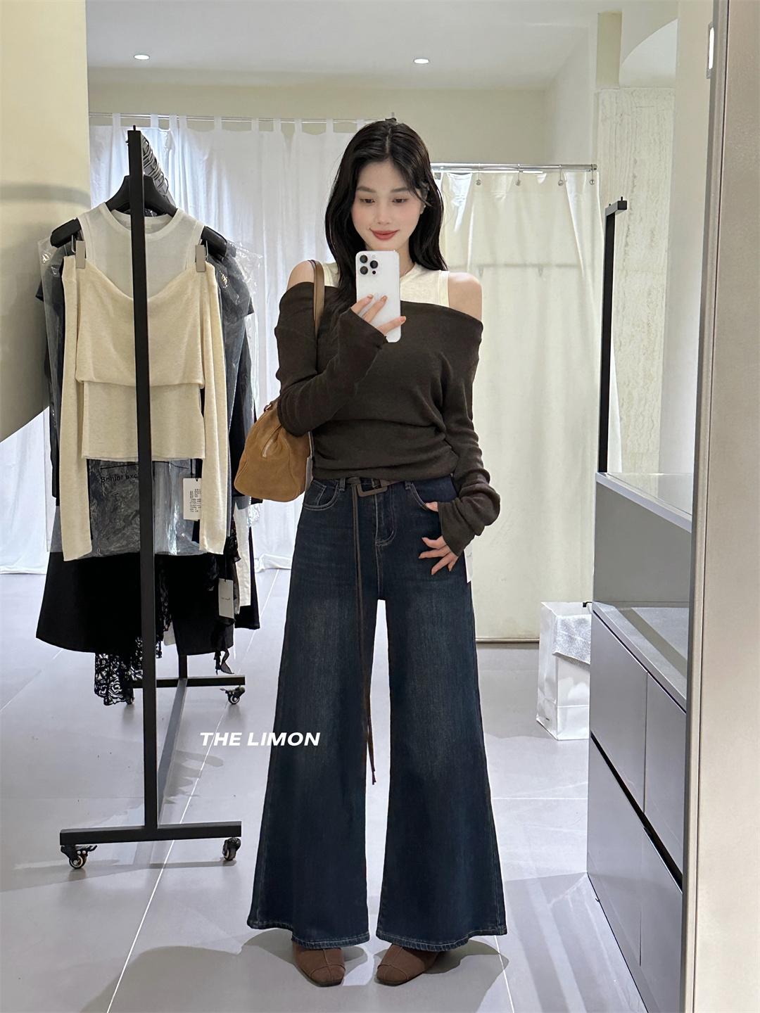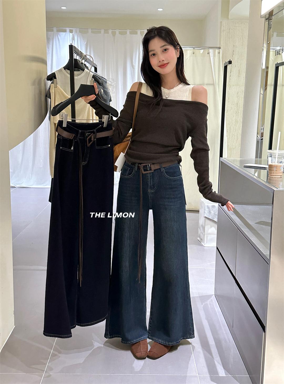 【C6880】超模褲!高腰顯瘦微喇牛仔褲(配腰帶)