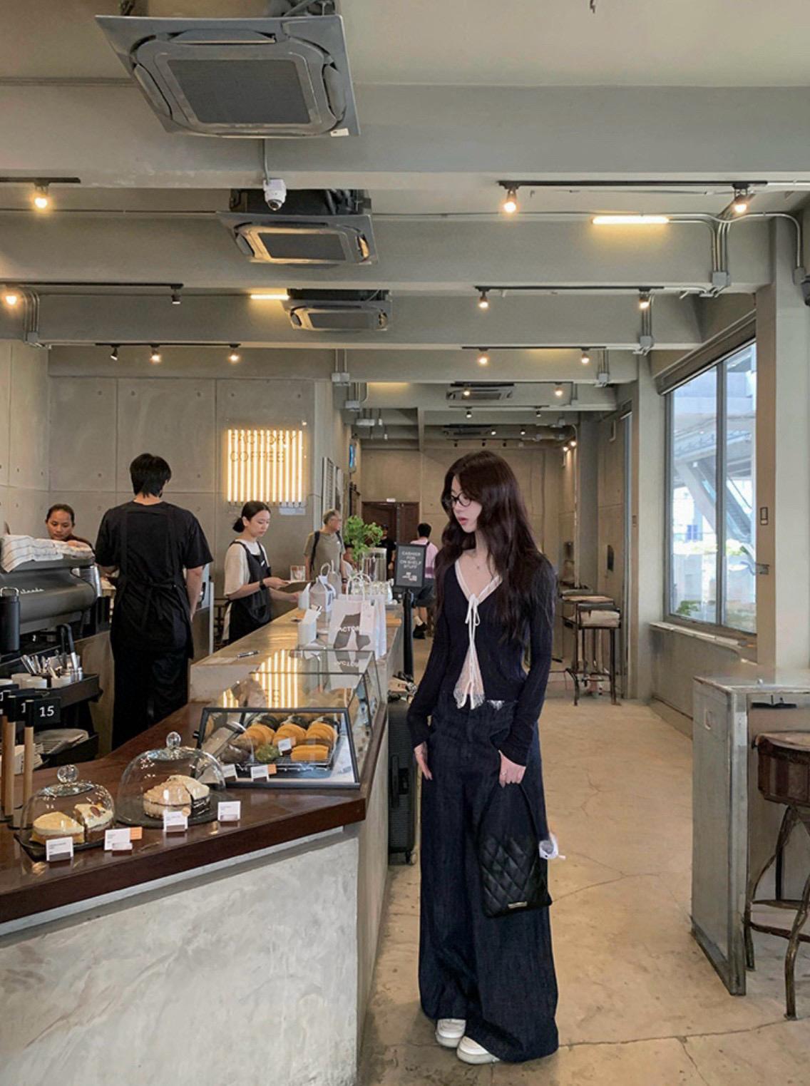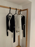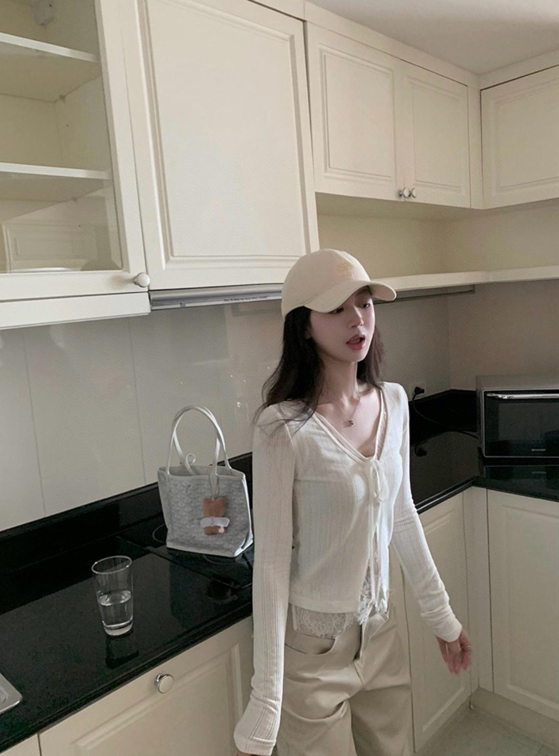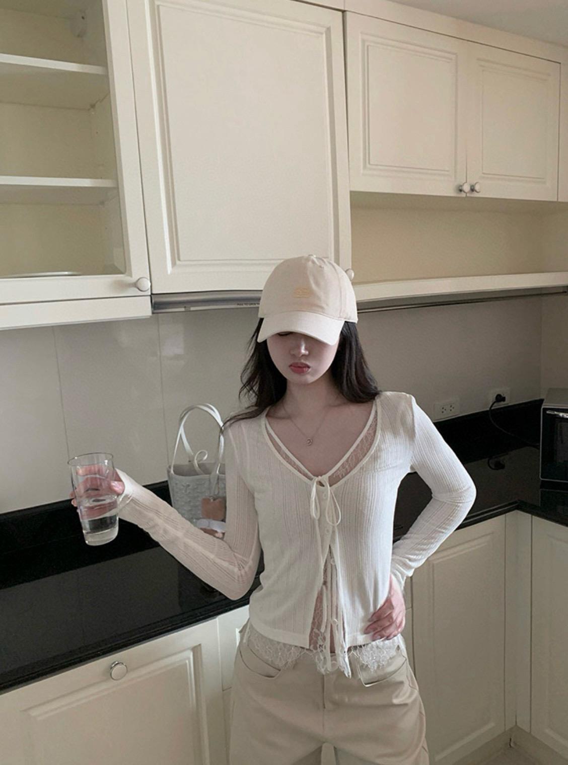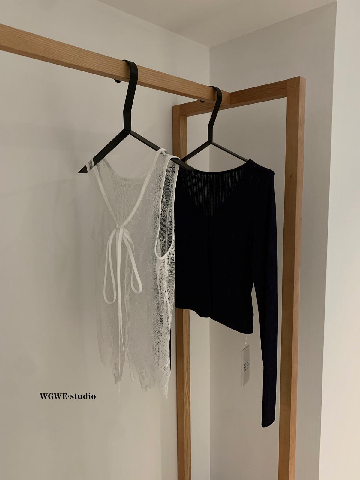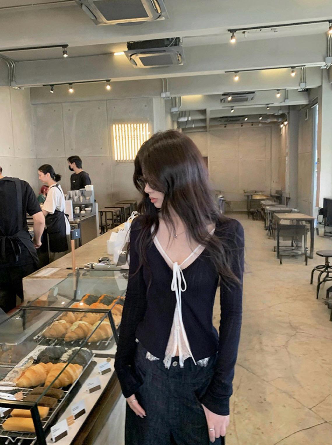 3. 【C6885】蕾絲拼接綁帶撞色獨特漂亮掐腰針織衫+小衫套裝