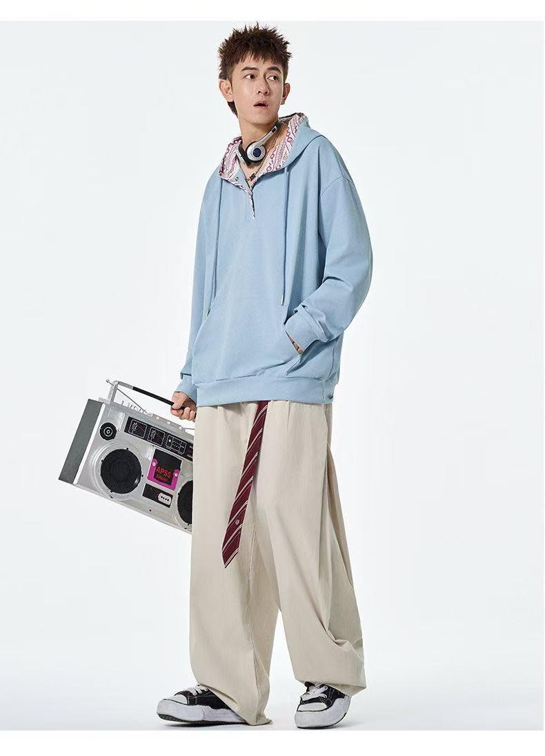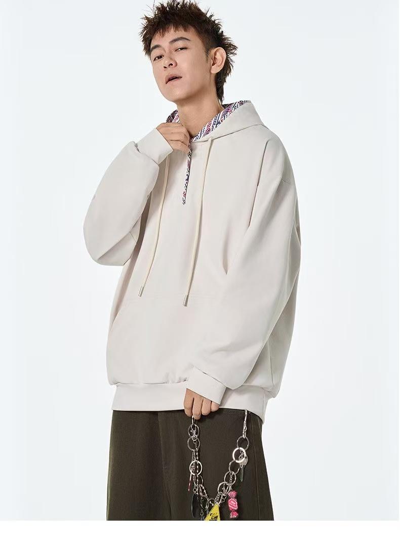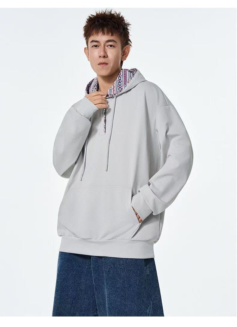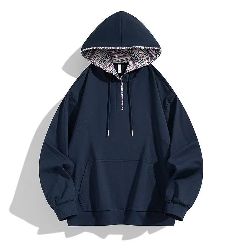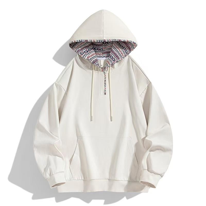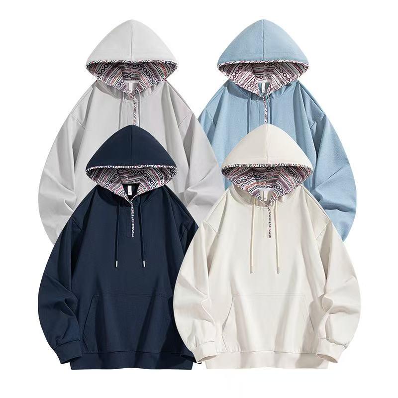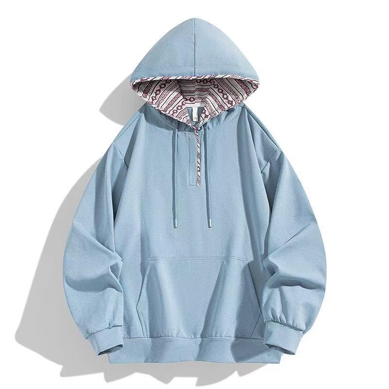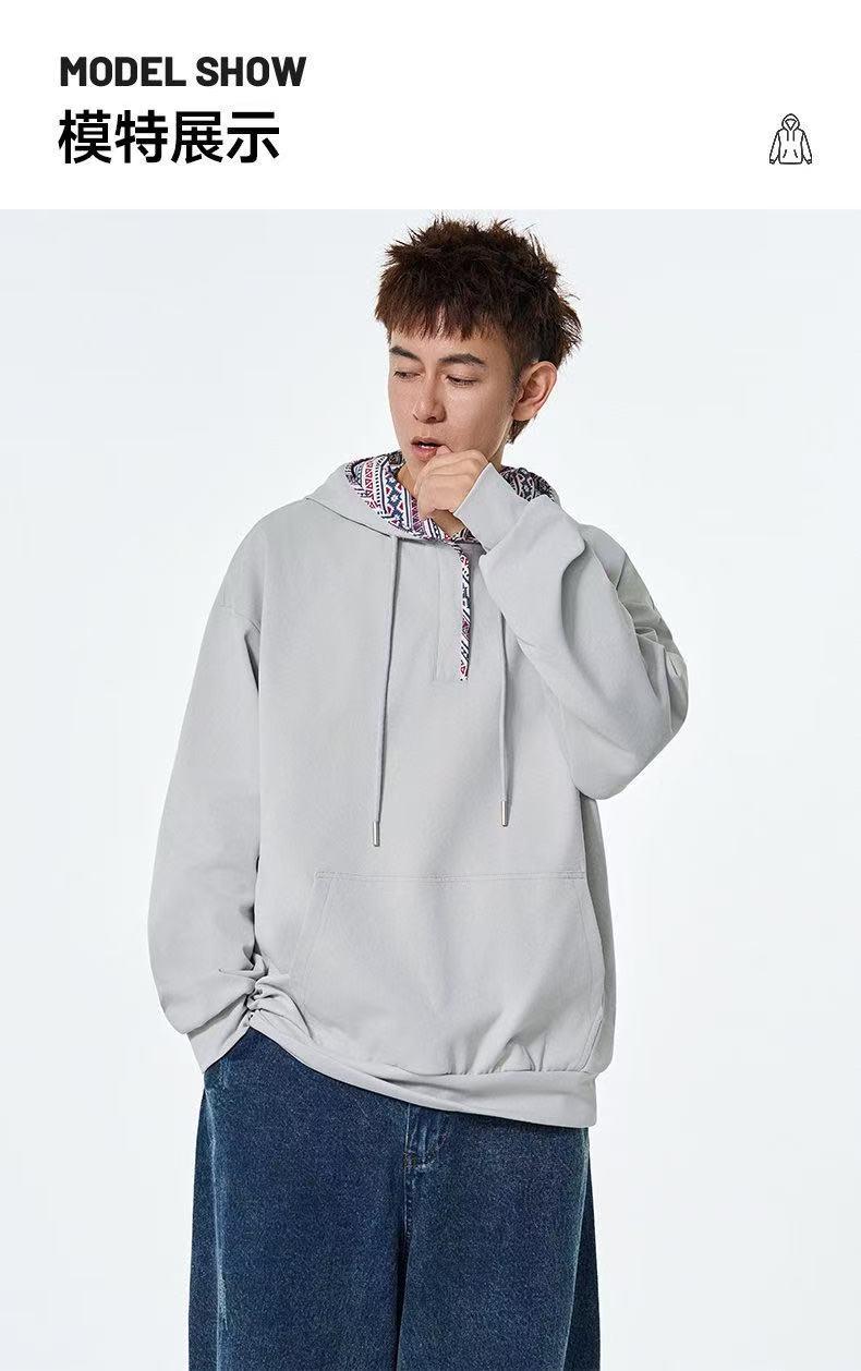 3. 【YS2142】美式時尚潮流連帽寬鬆民族風撞色拼接套頭衛衣