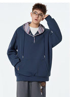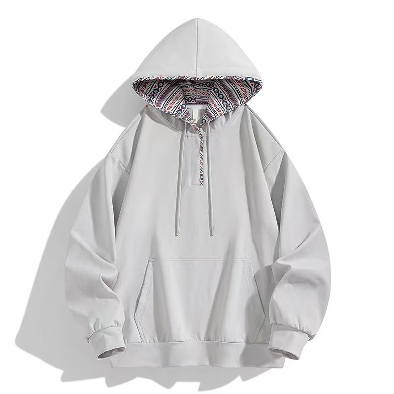 【YS2142】美式時尚潮流連帽寬鬆民族風撞色拼接套頭衛衣