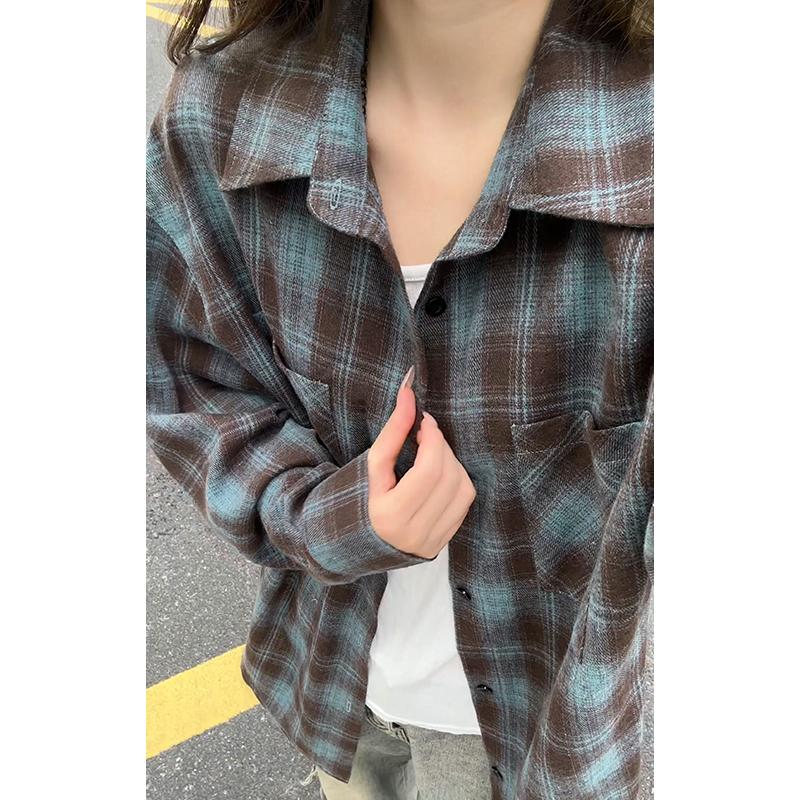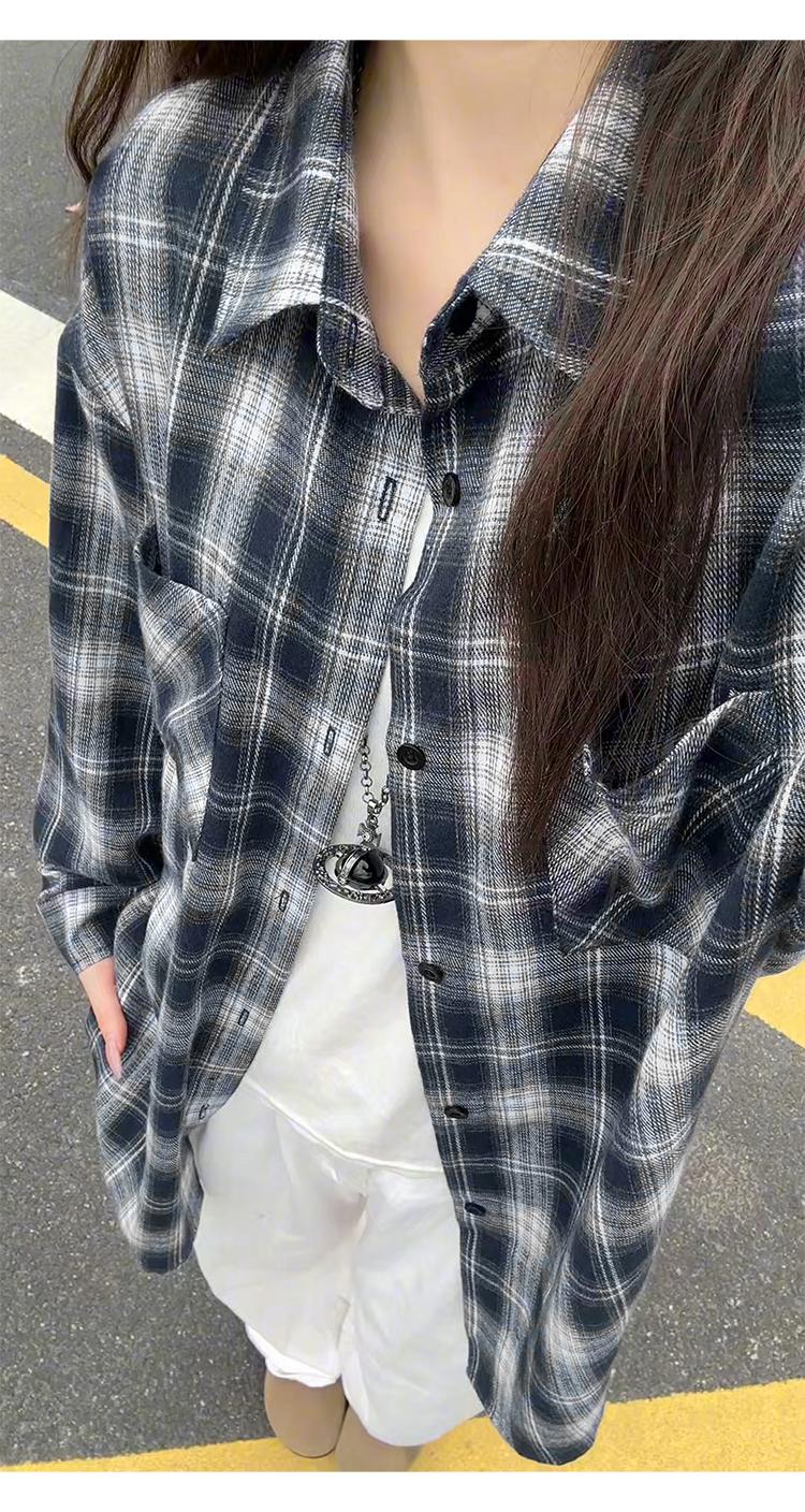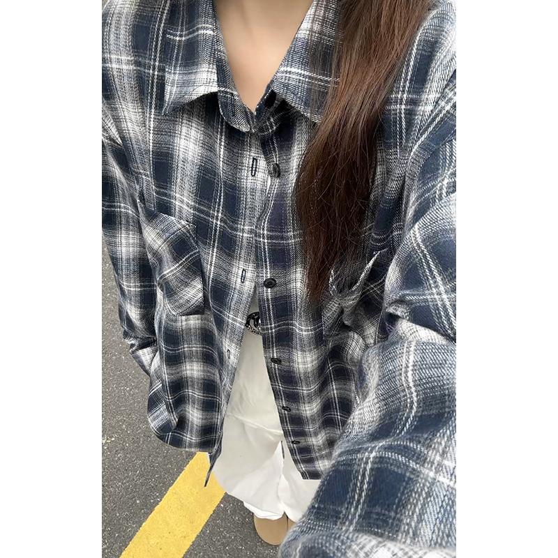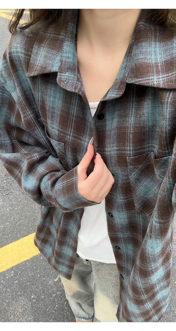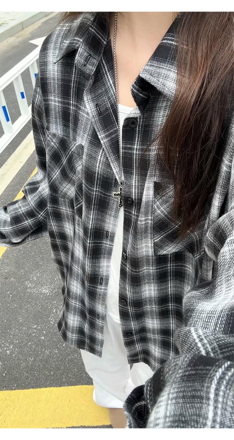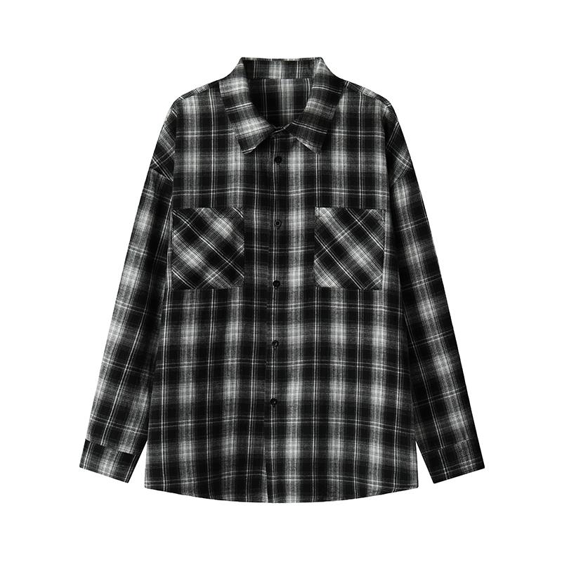 【YS2147】秋季新款格子翻領時尚長袖襯衫外套舒適大碼襯衫