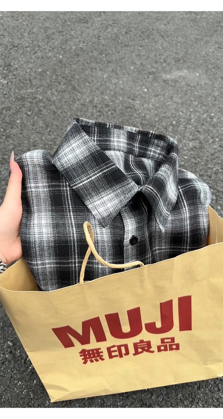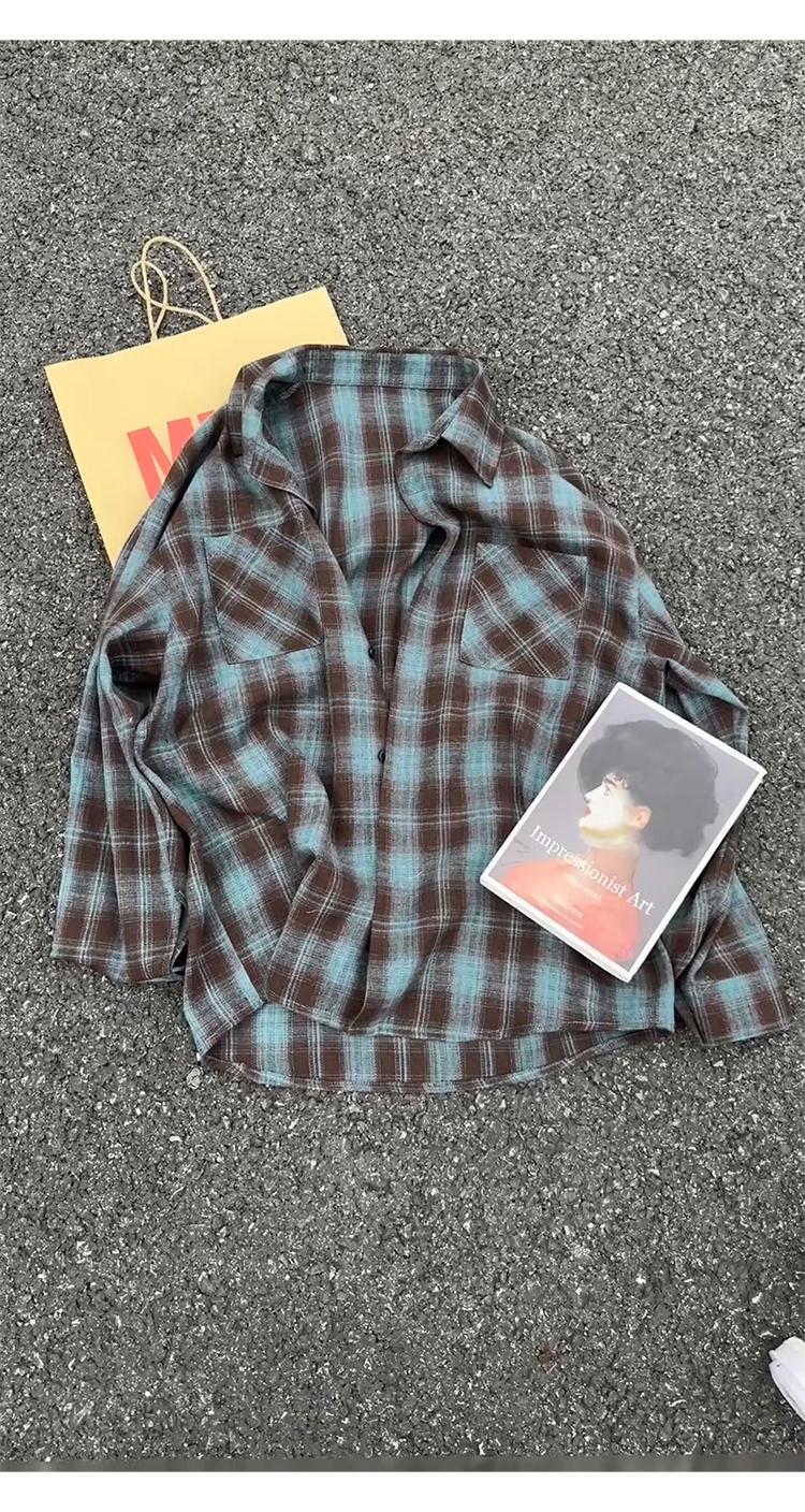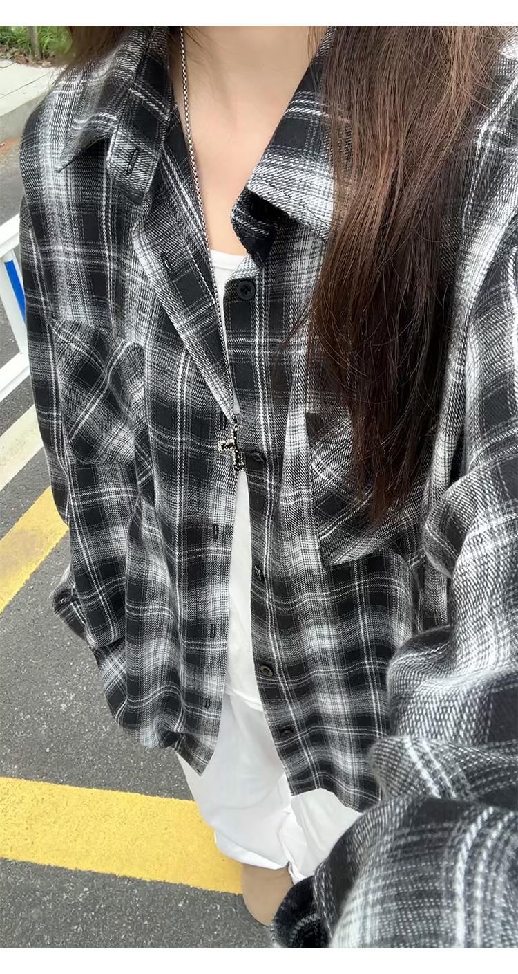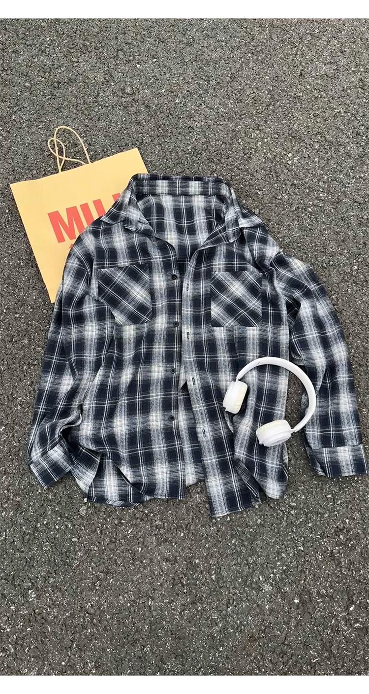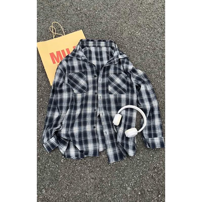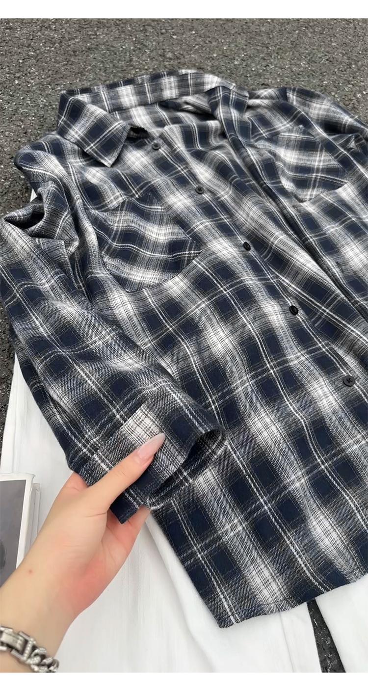 【YS2147】秋季新款格子翻領時尚長袖襯衫外套舒適大碼襯衫