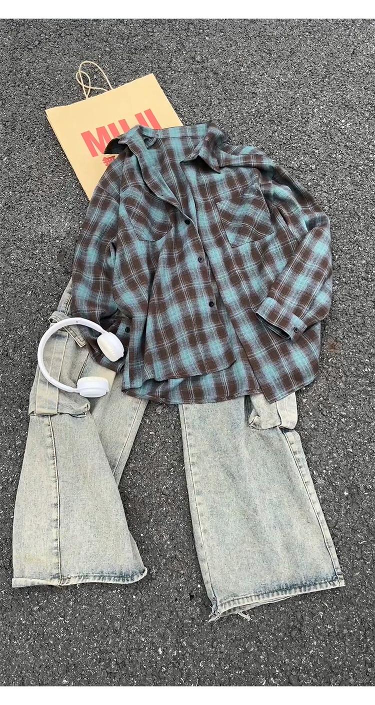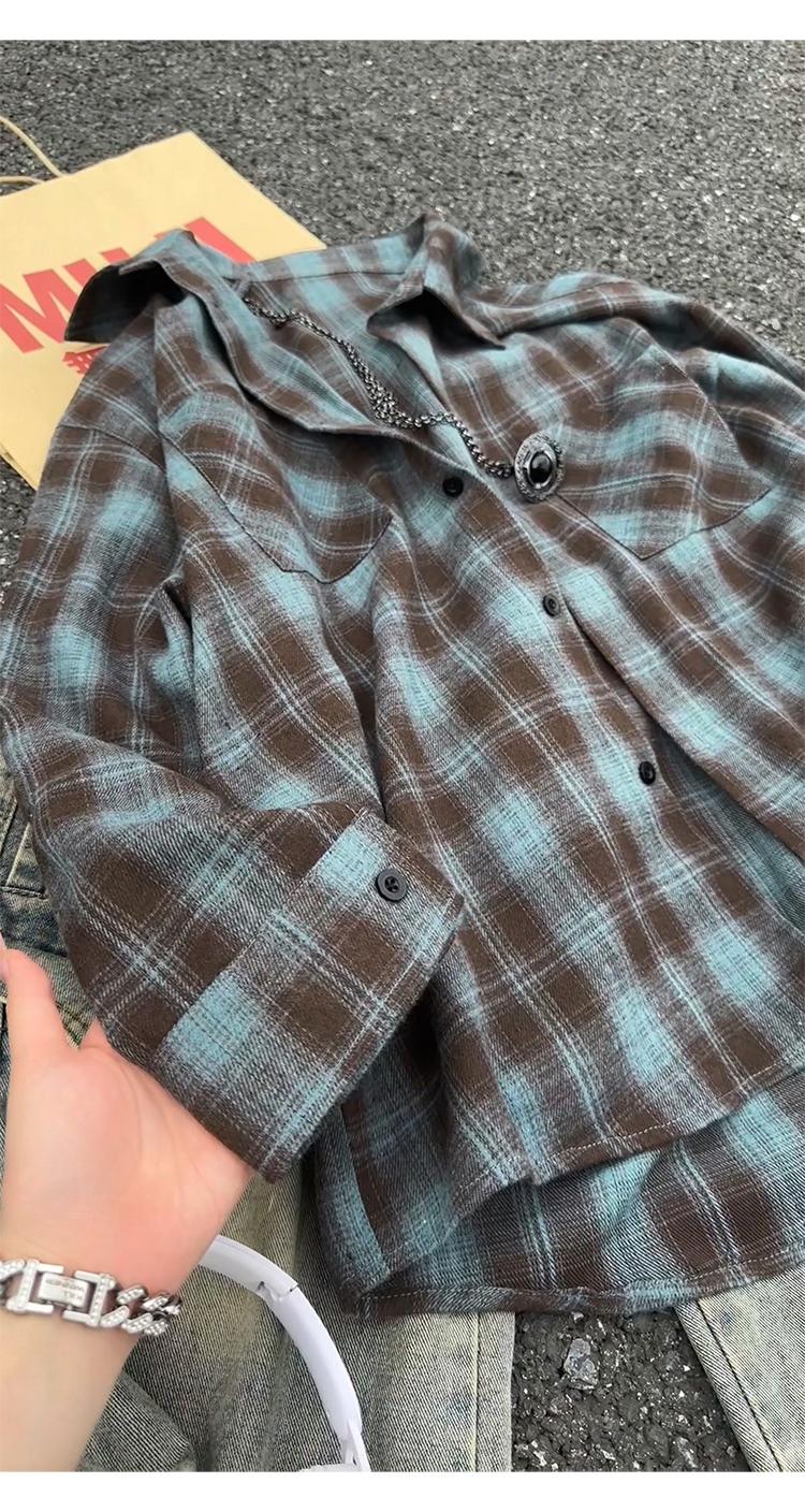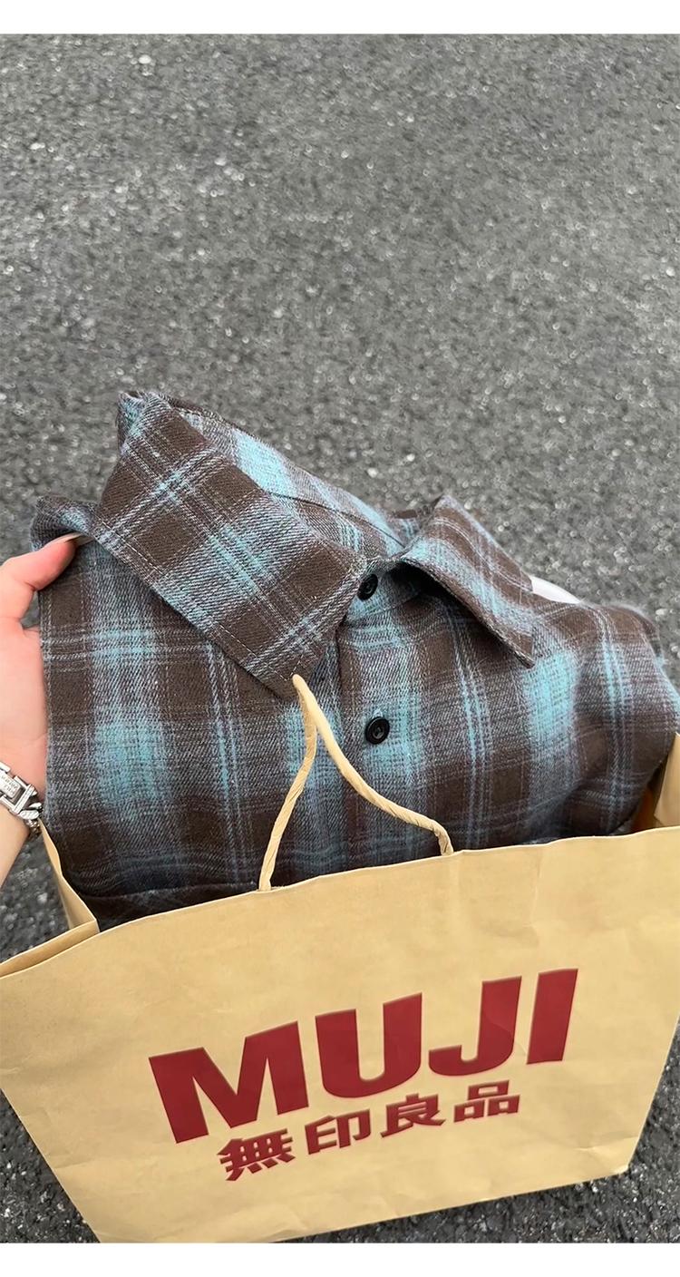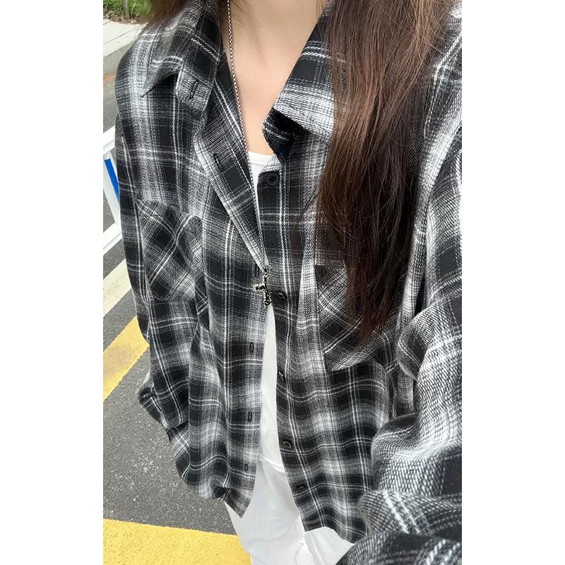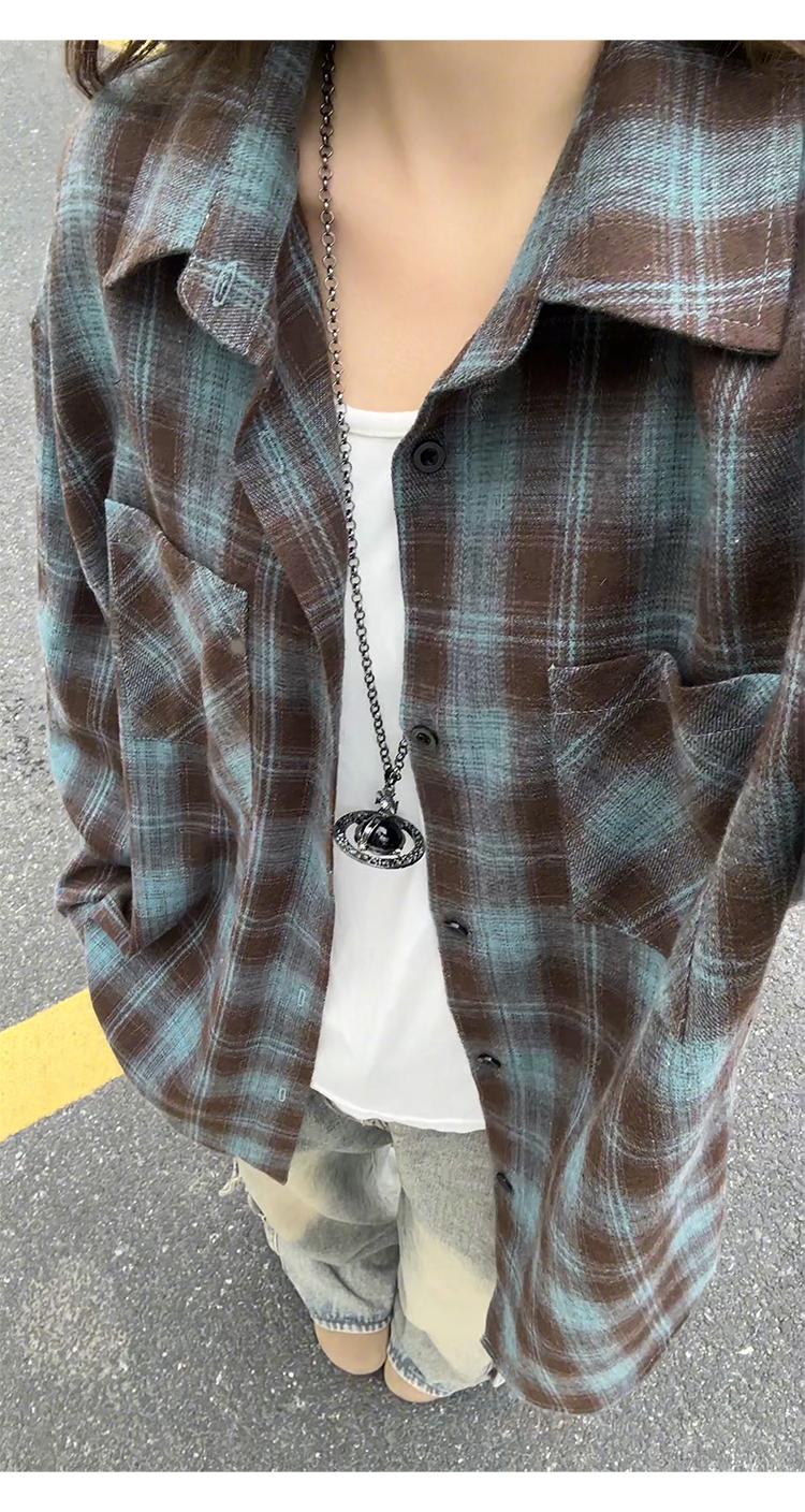 【YS2147】秋季新款格子翻領時尚長袖襯衫外套舒適大碼襯衫