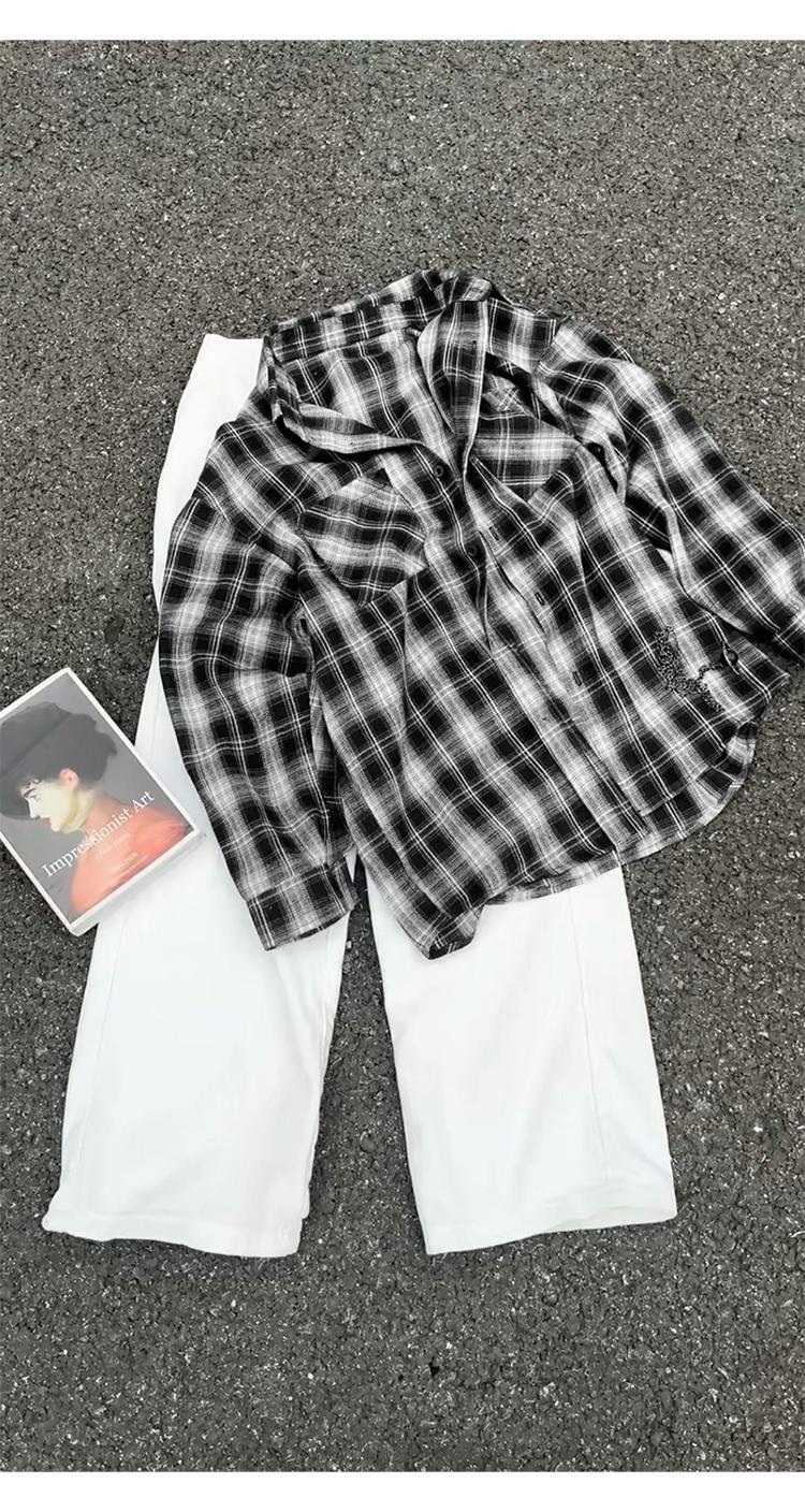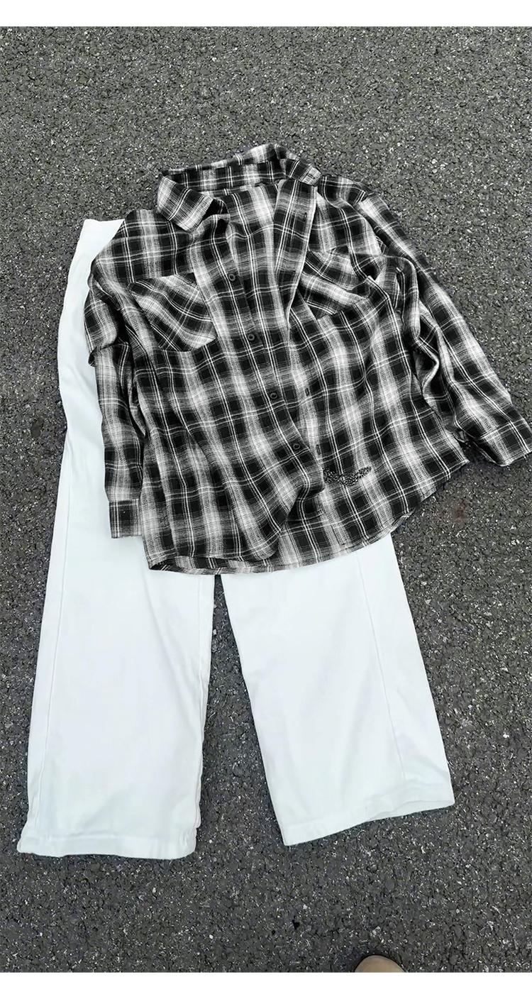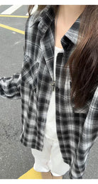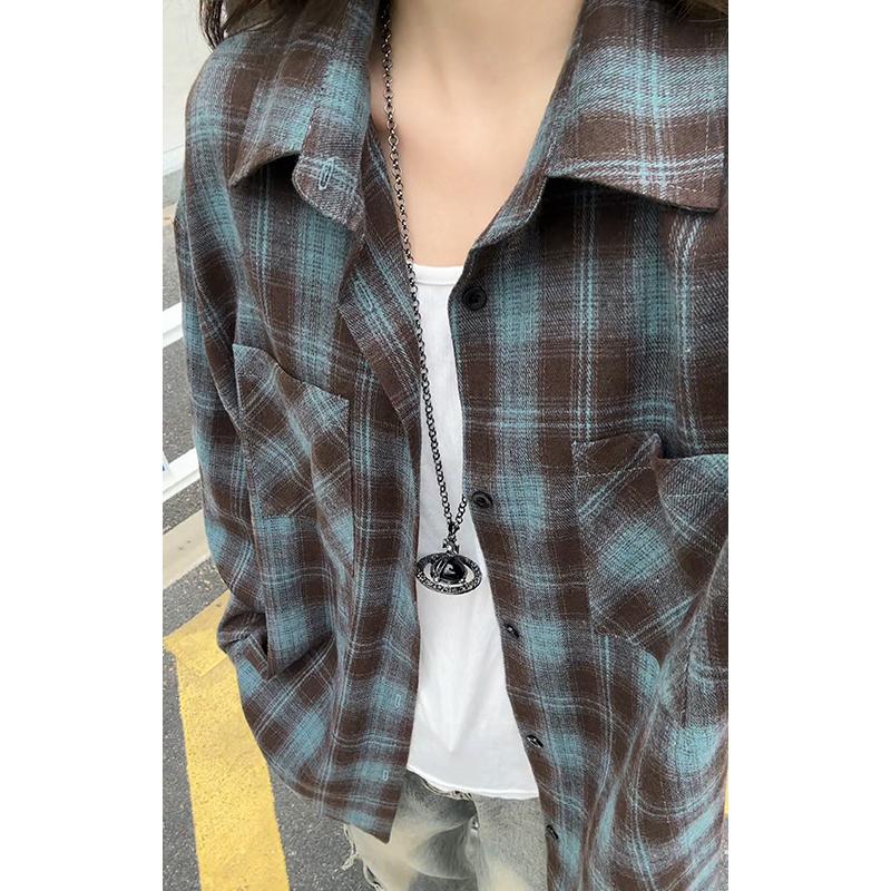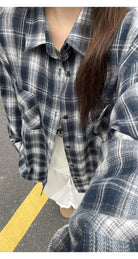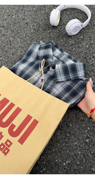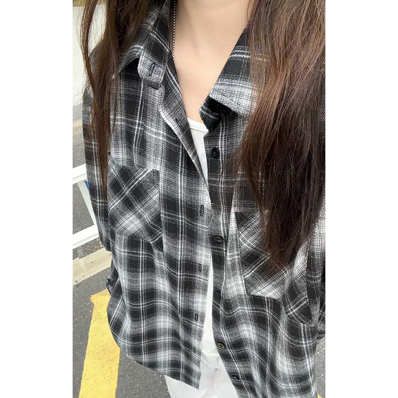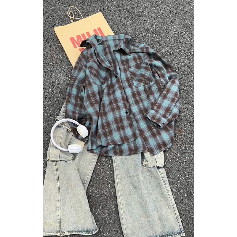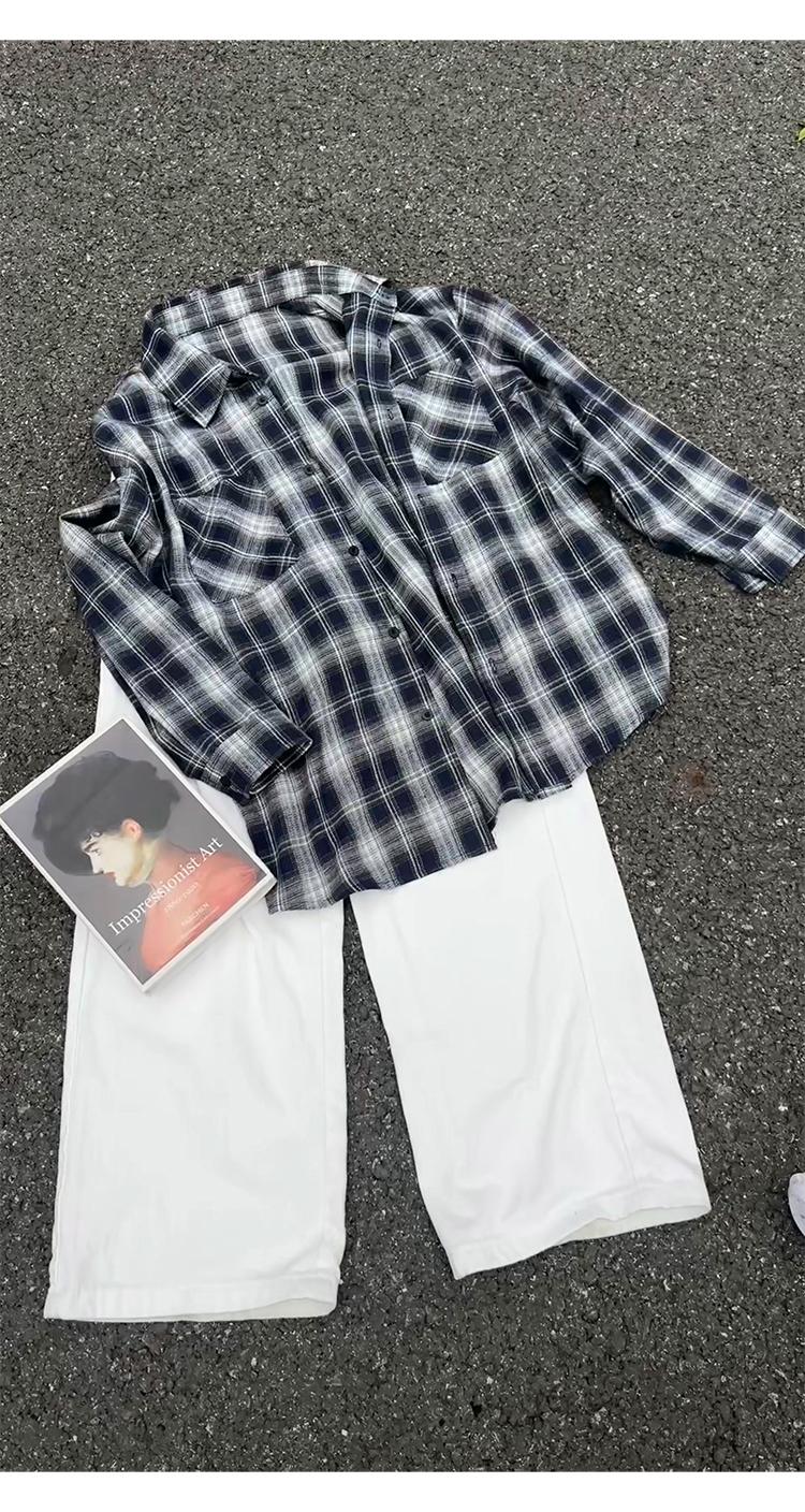 【YS2147】秋季新款格子翻領時尚長袖襯衫外套舒適大碼襯衫