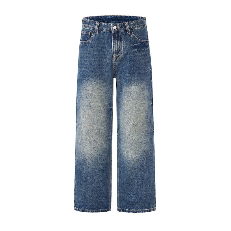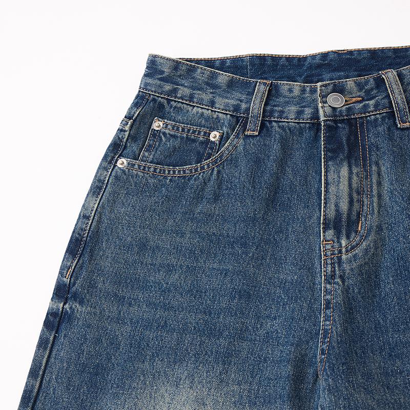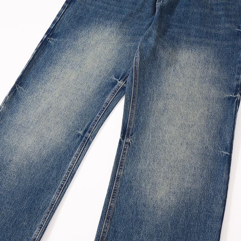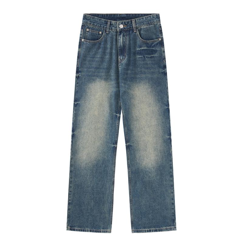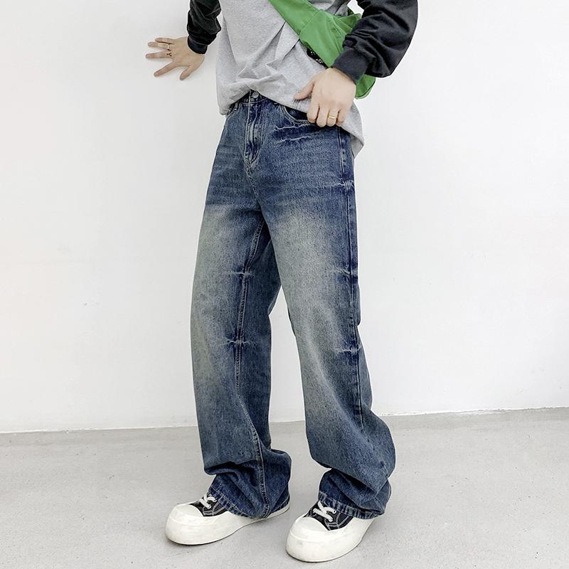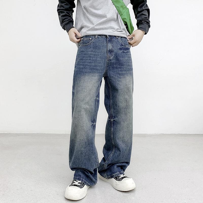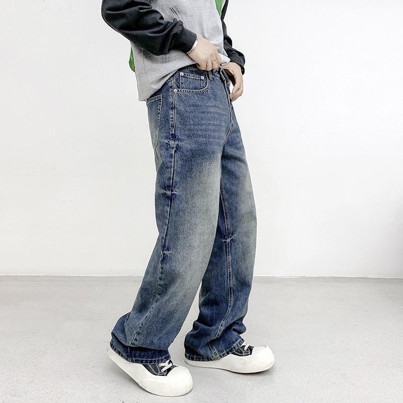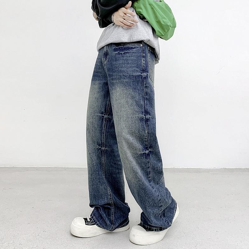 【YS2152】潮牌小衆設計貓須水洗直筒寬鬆牛仔褲