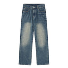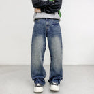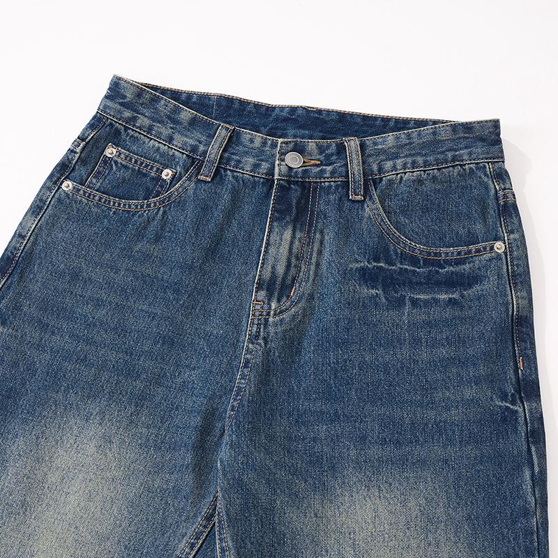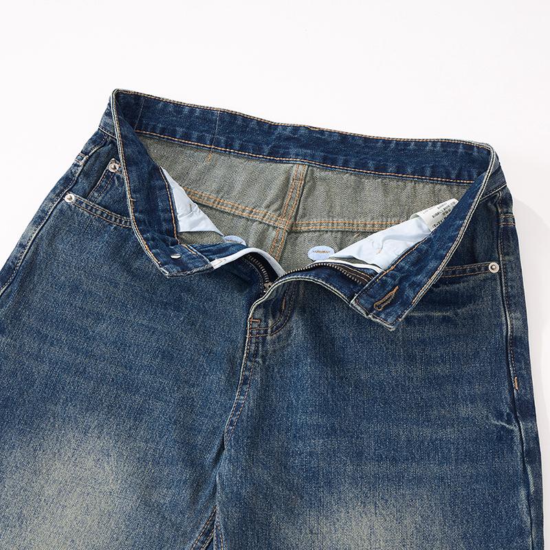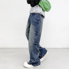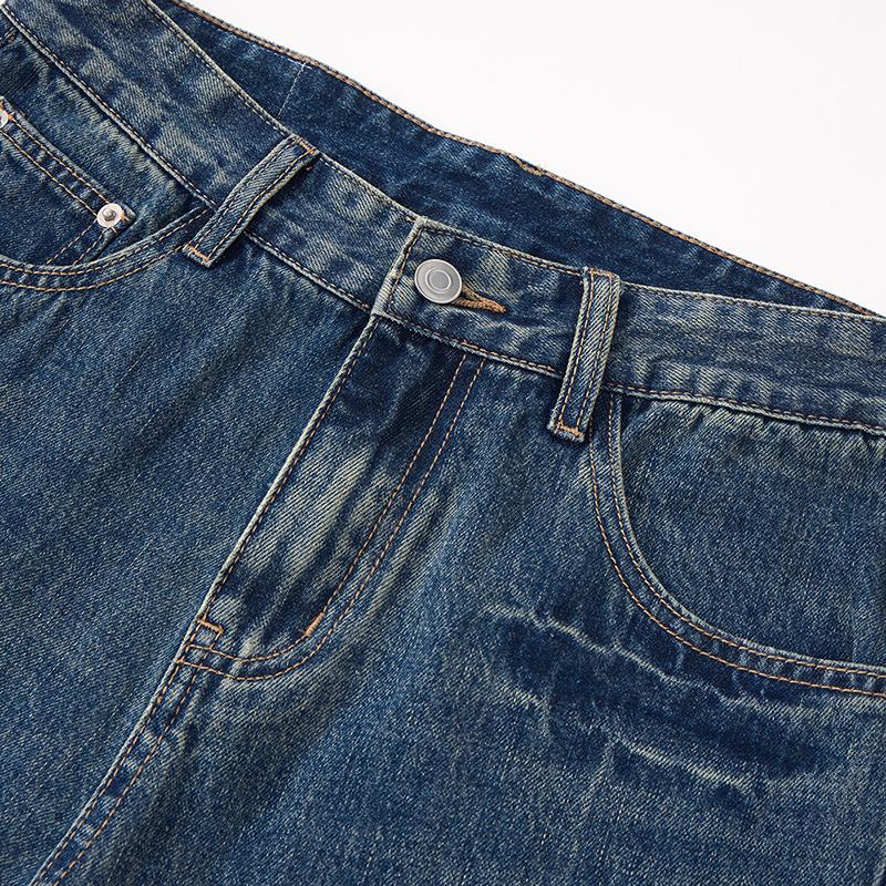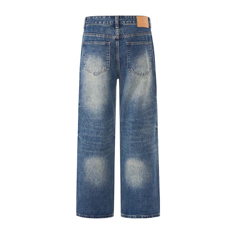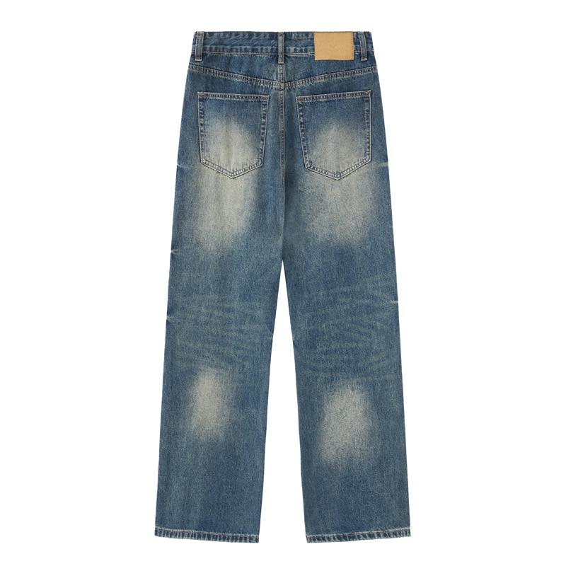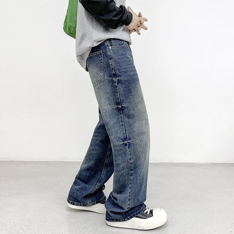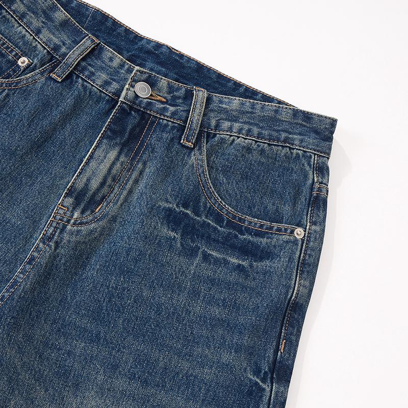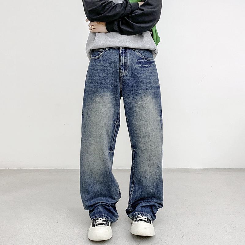 【YS2152】潮牌小衆設計貓須水洗直筒寬鬆牛仔褲