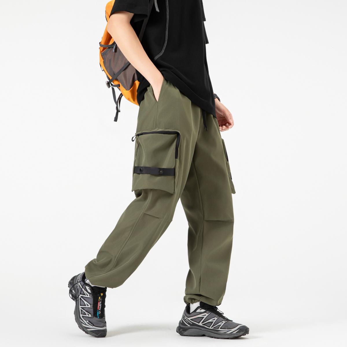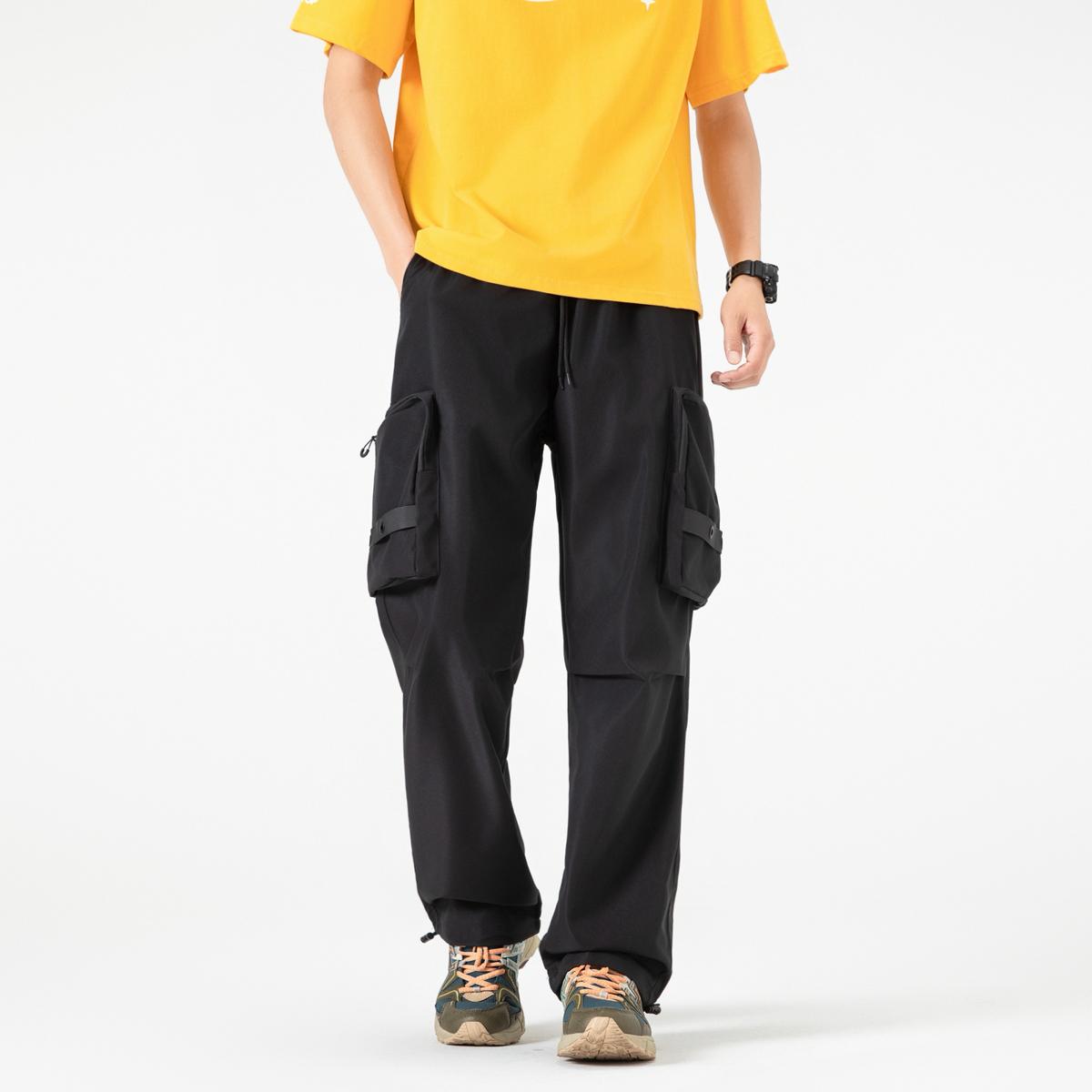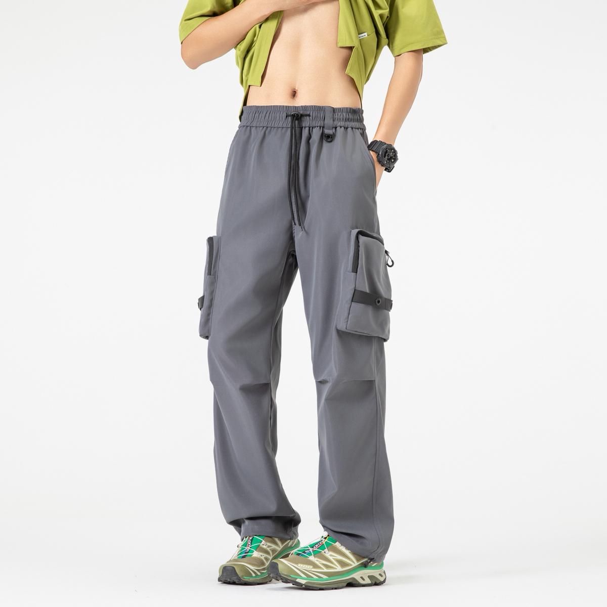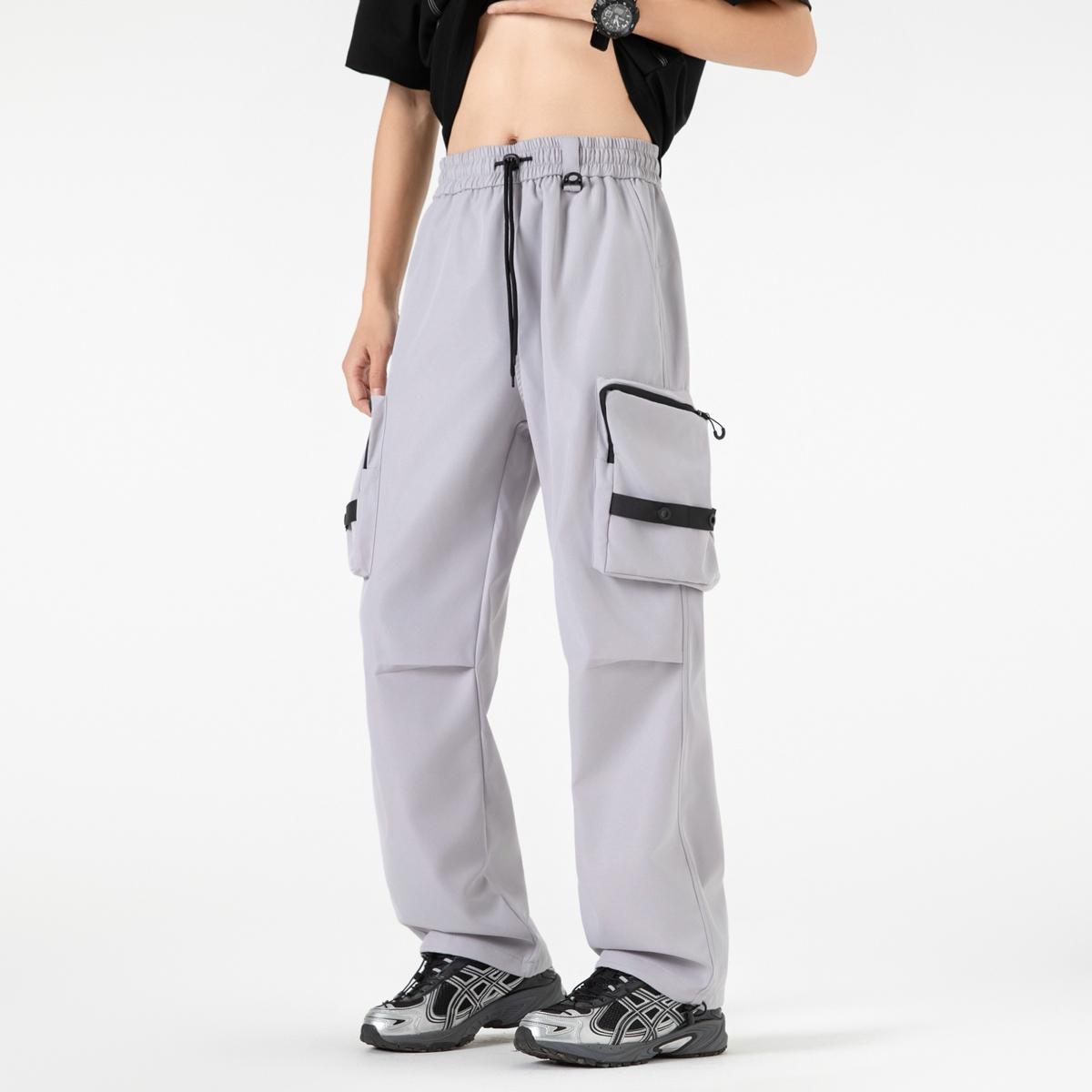 【YS2156】潮牌美式運動口袋設計工裝休閒褲(男女同款情侶裝)