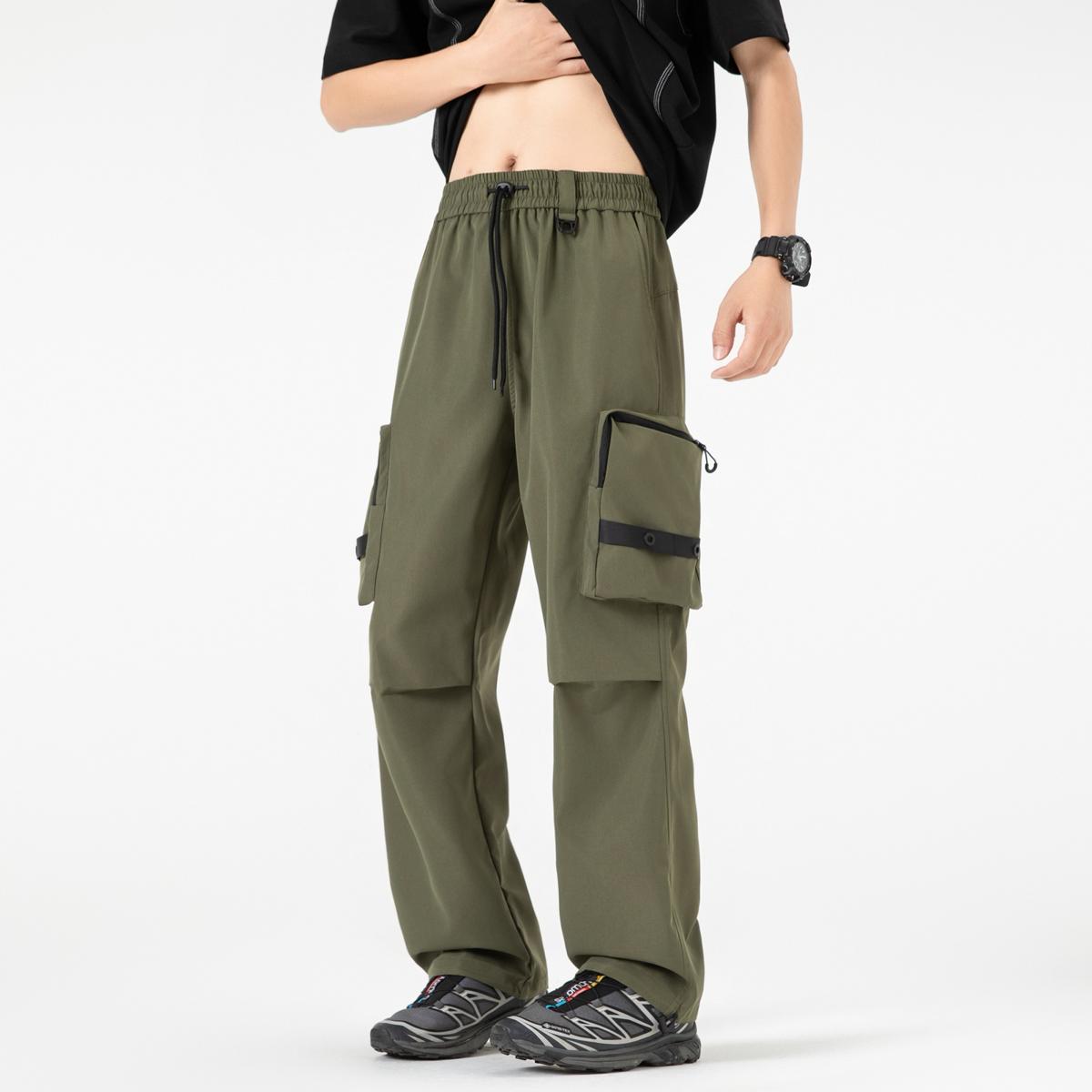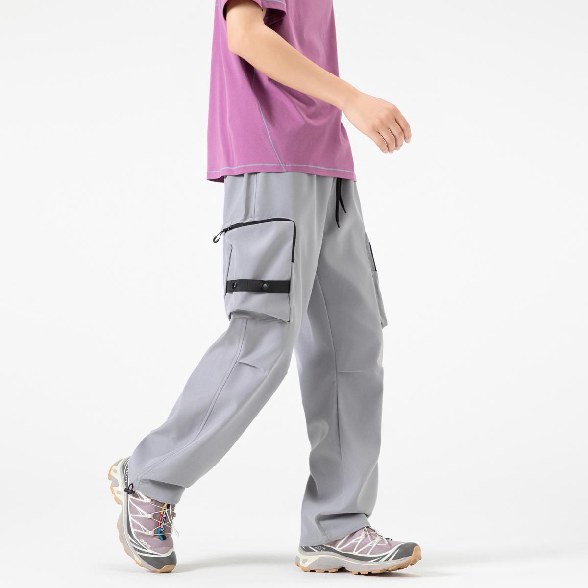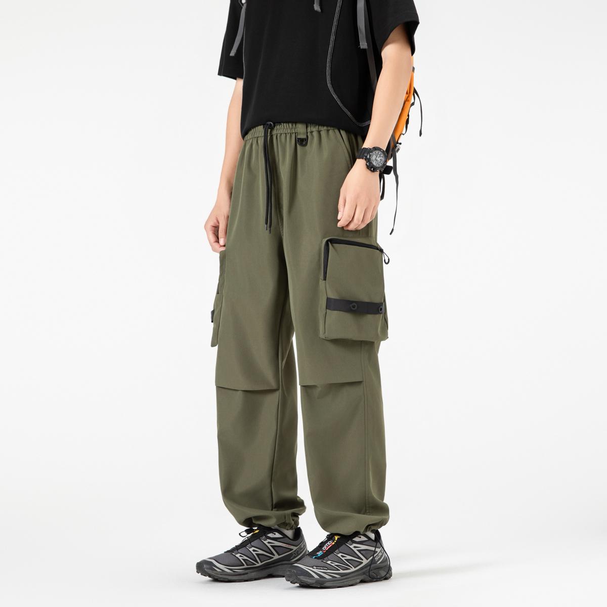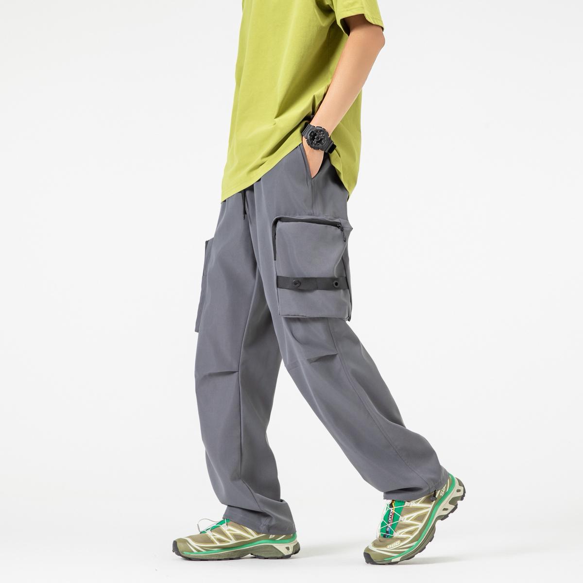 【YS2156】潮牌美式運動口袋設計工裝休閒褲(男女同款情侶裝)