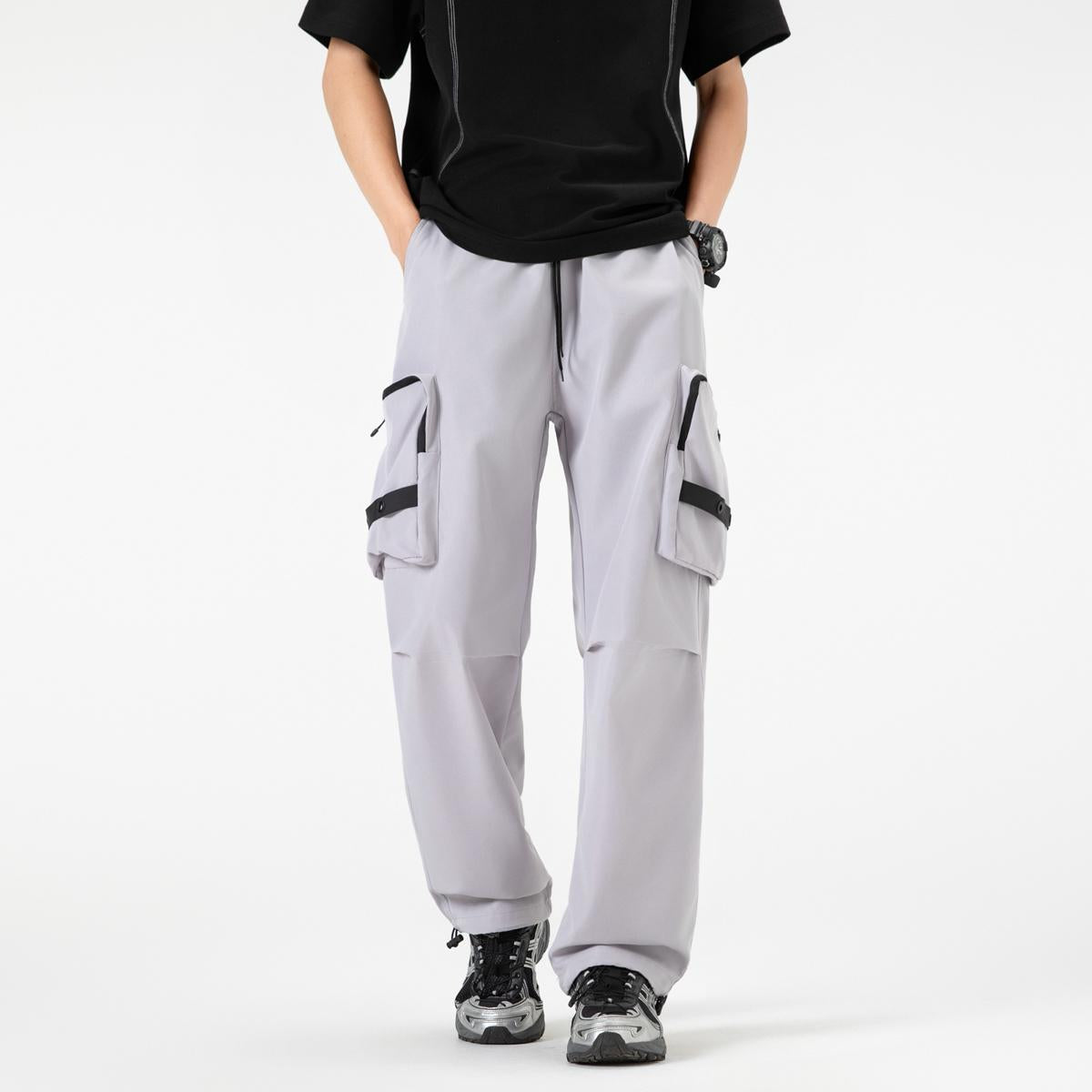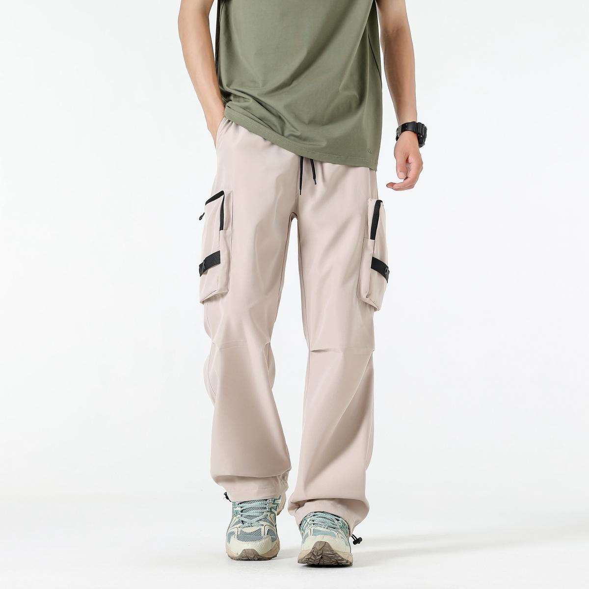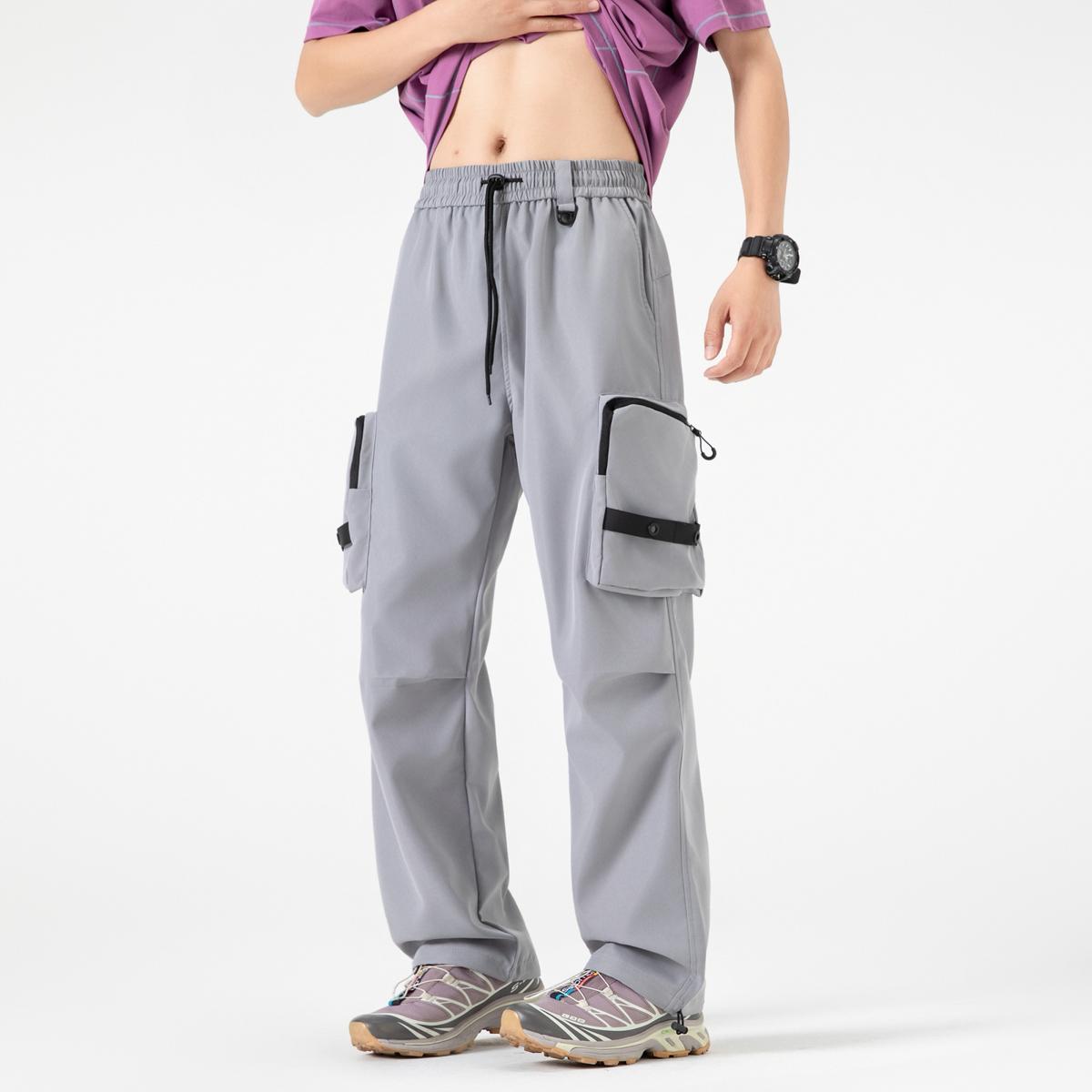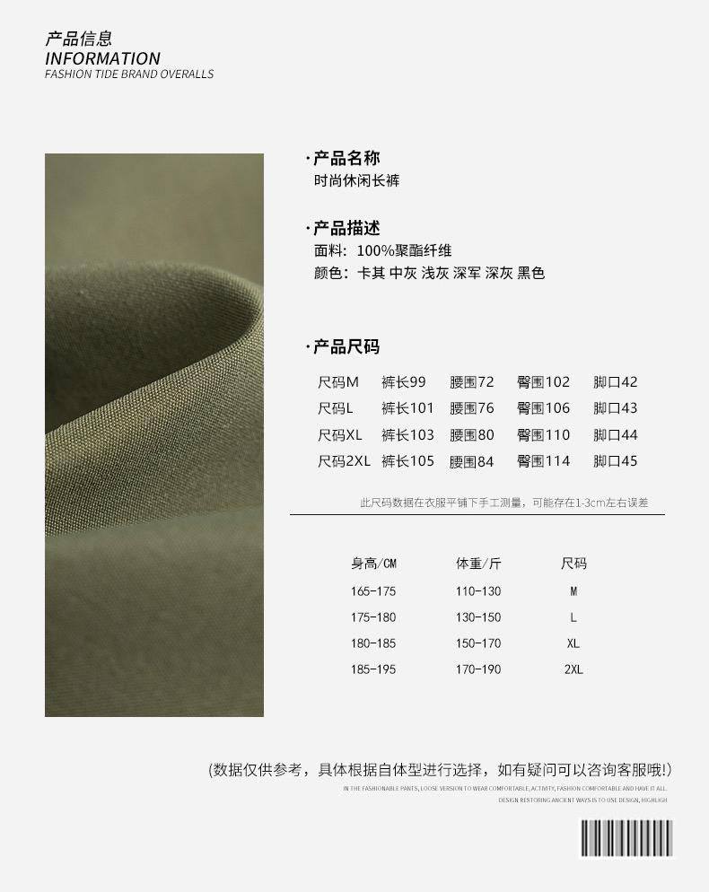 【YS2156】潮牌美式運動口袋設計工裝休閒褲(男女同款情侶裝)