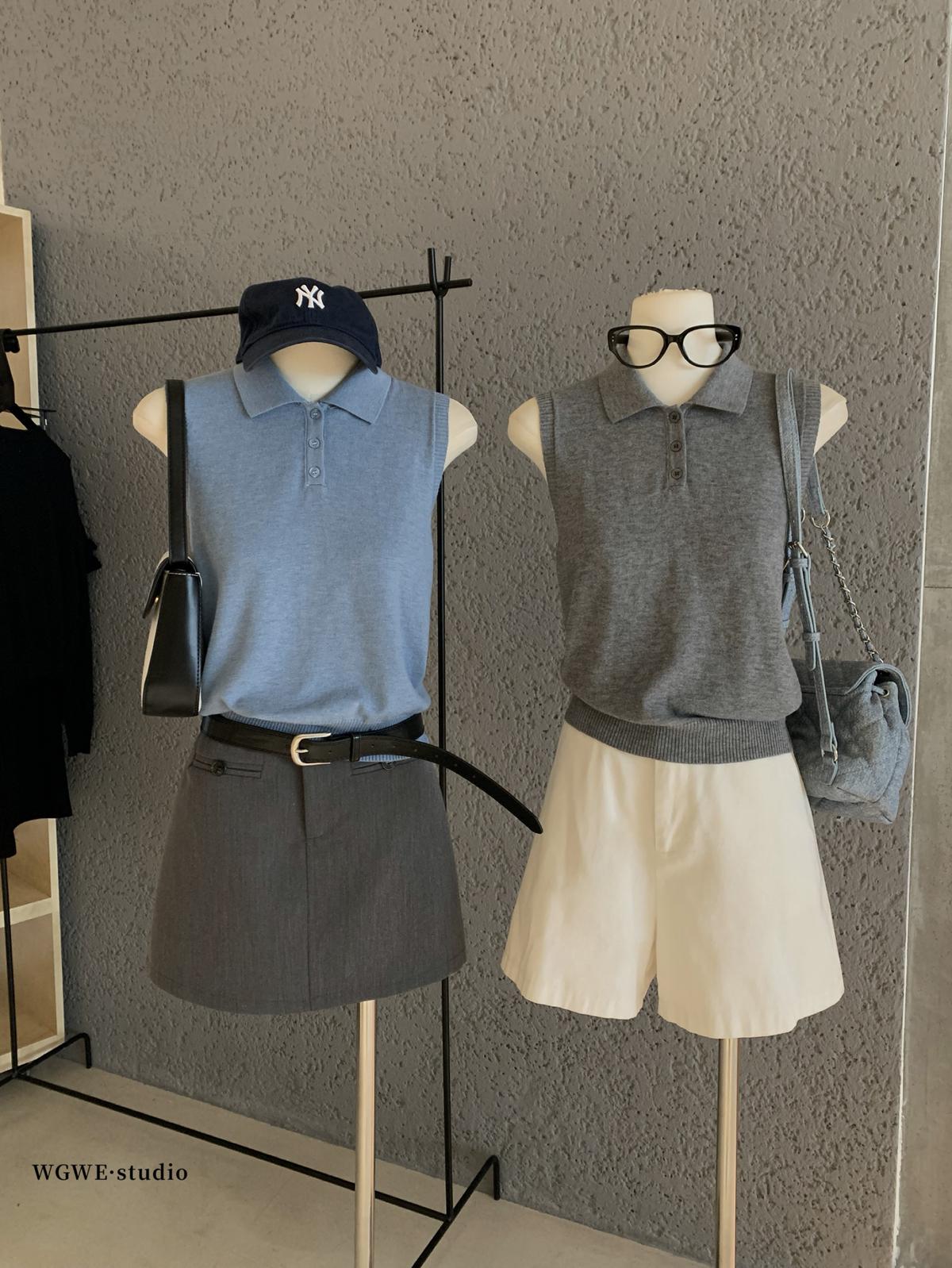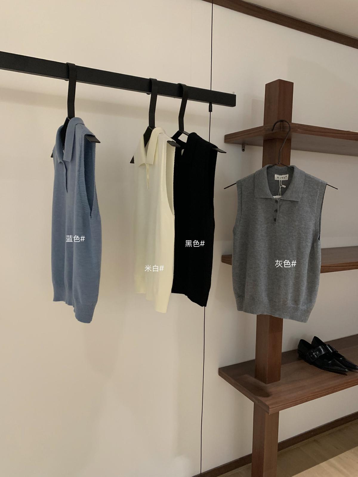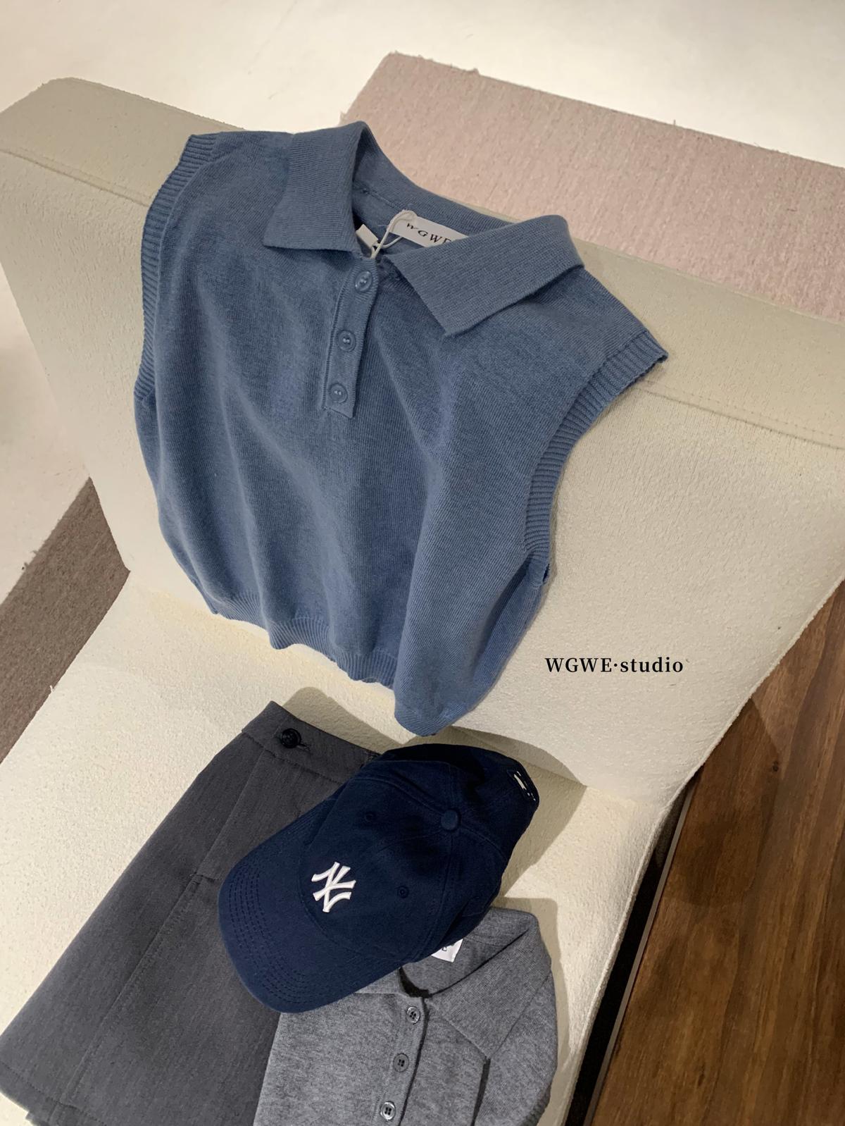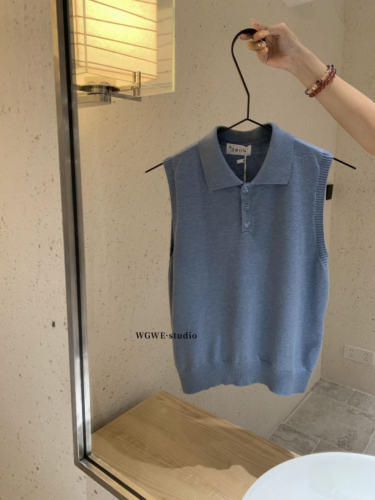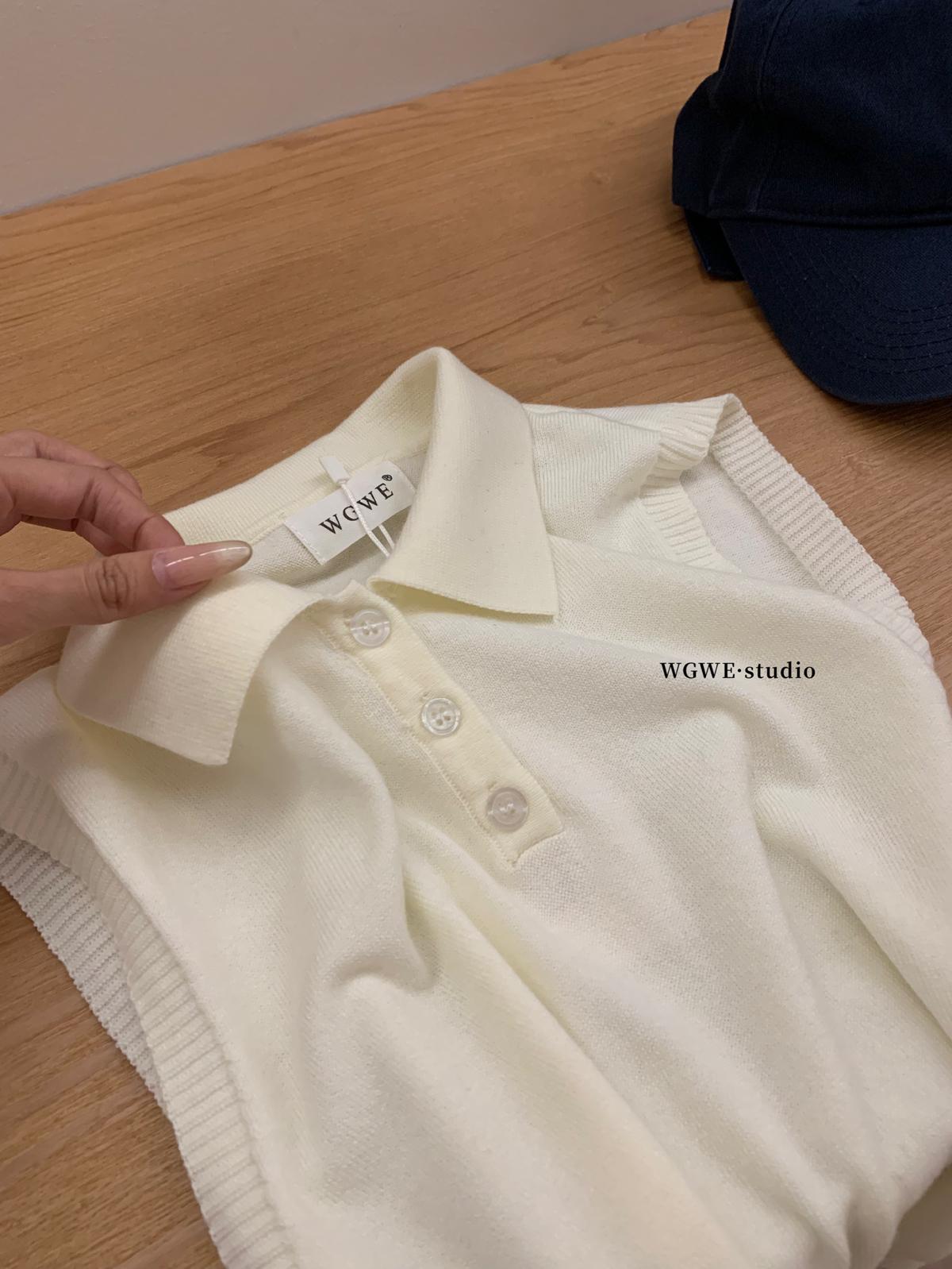 【C6915】通勤百搭polo領針織背心修身氣質設計感上衣針織衫