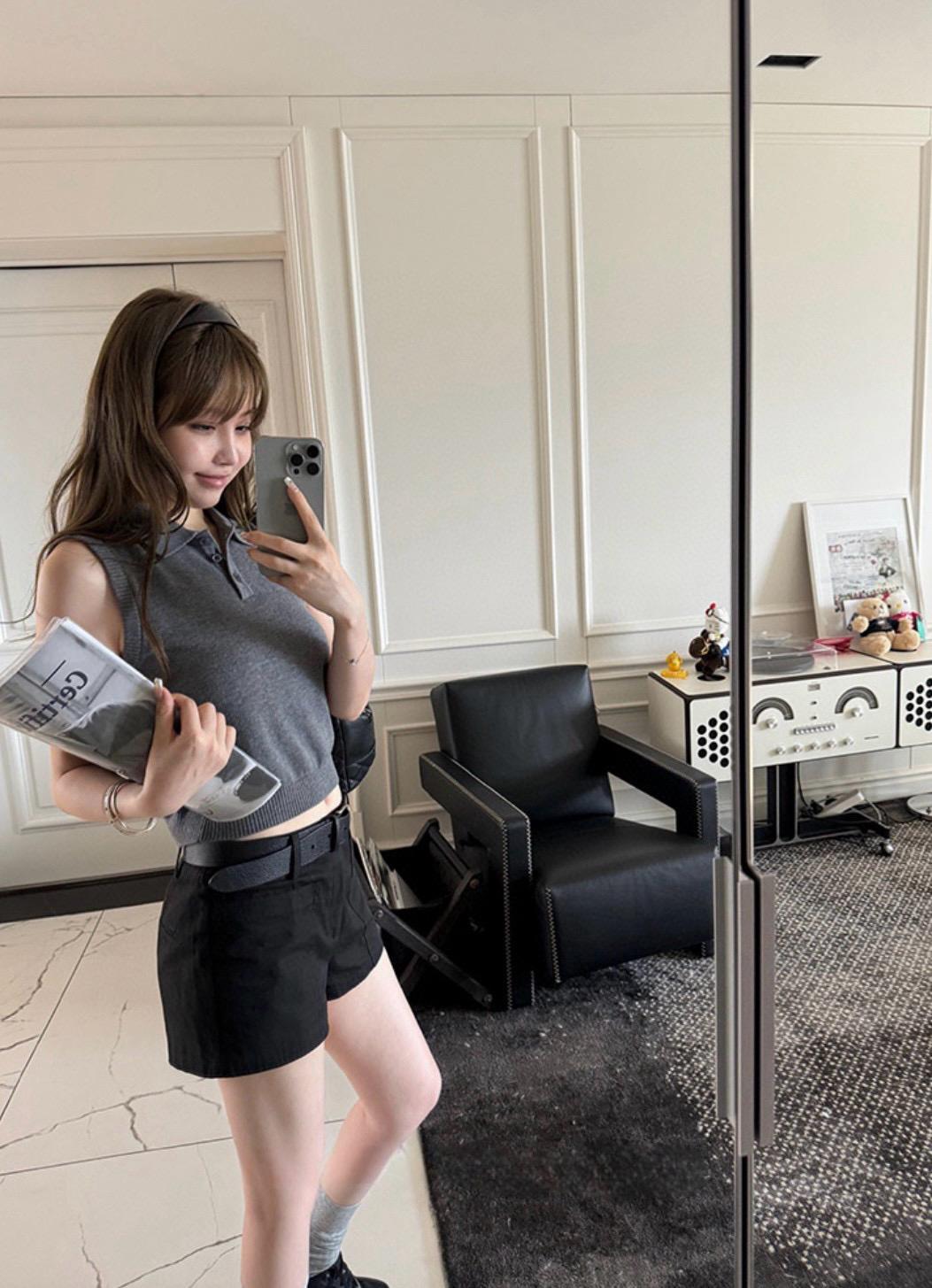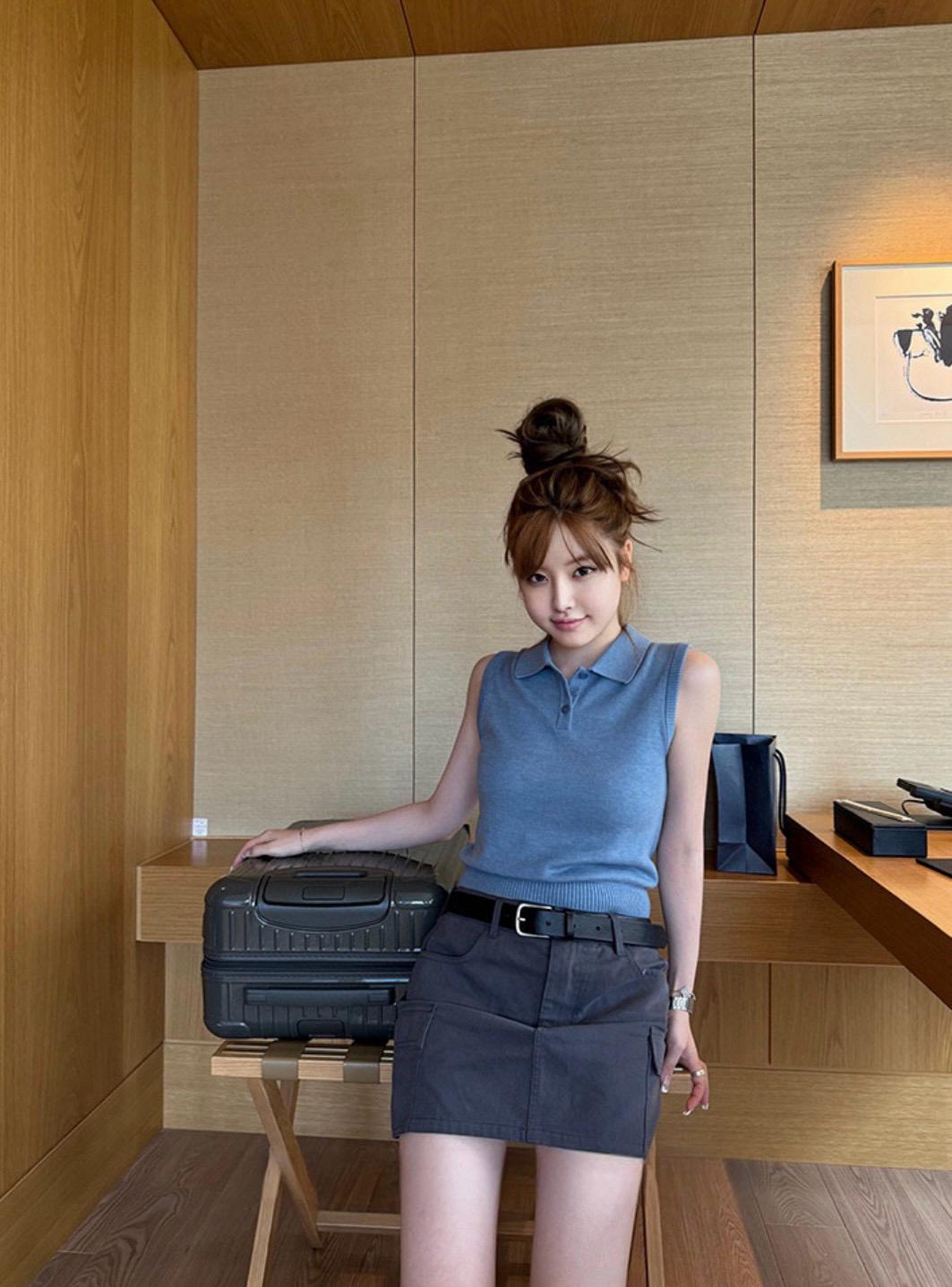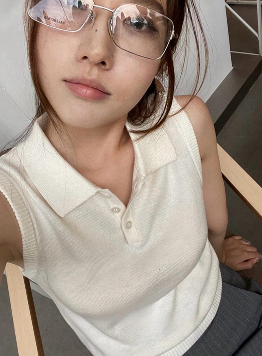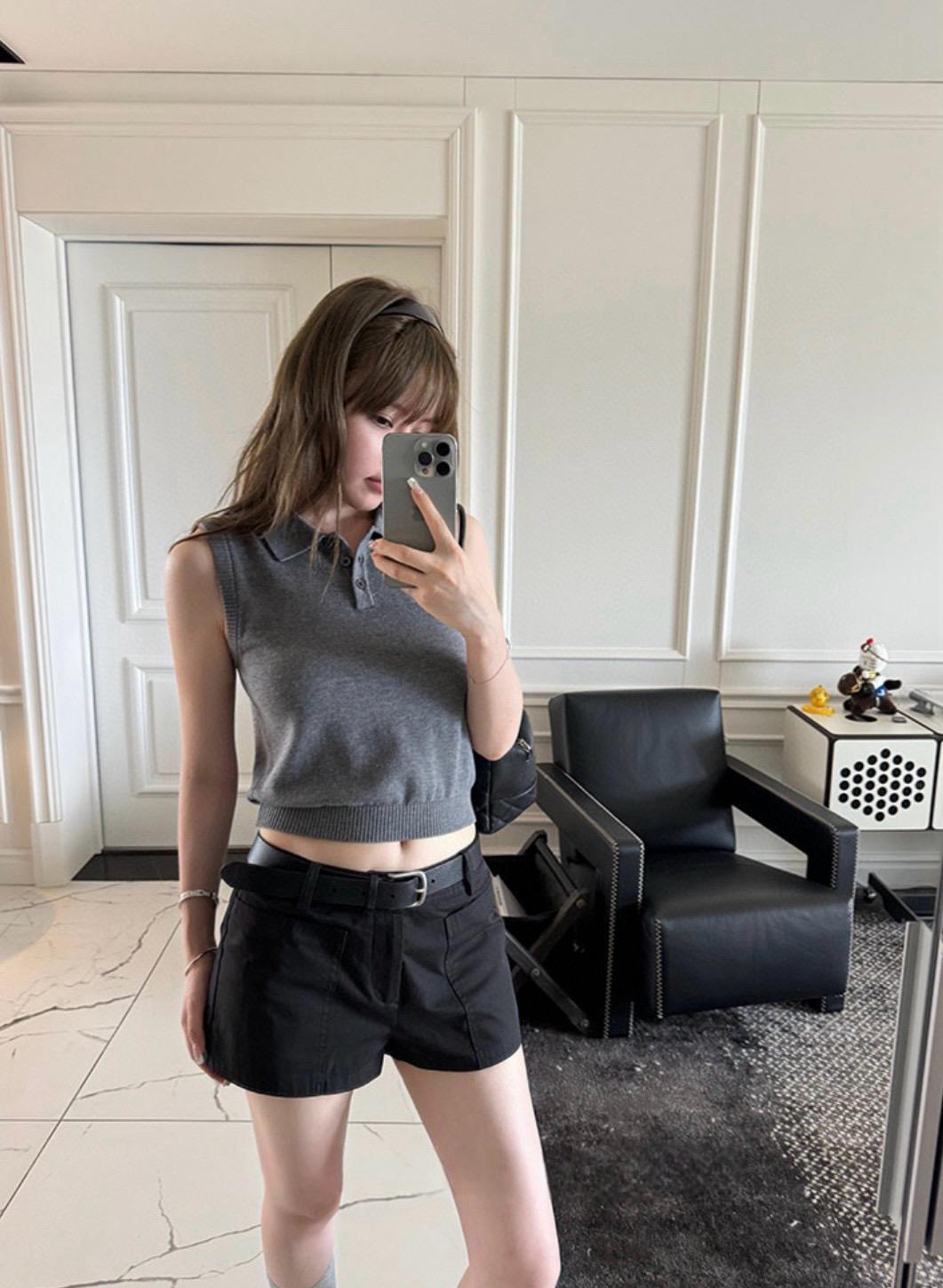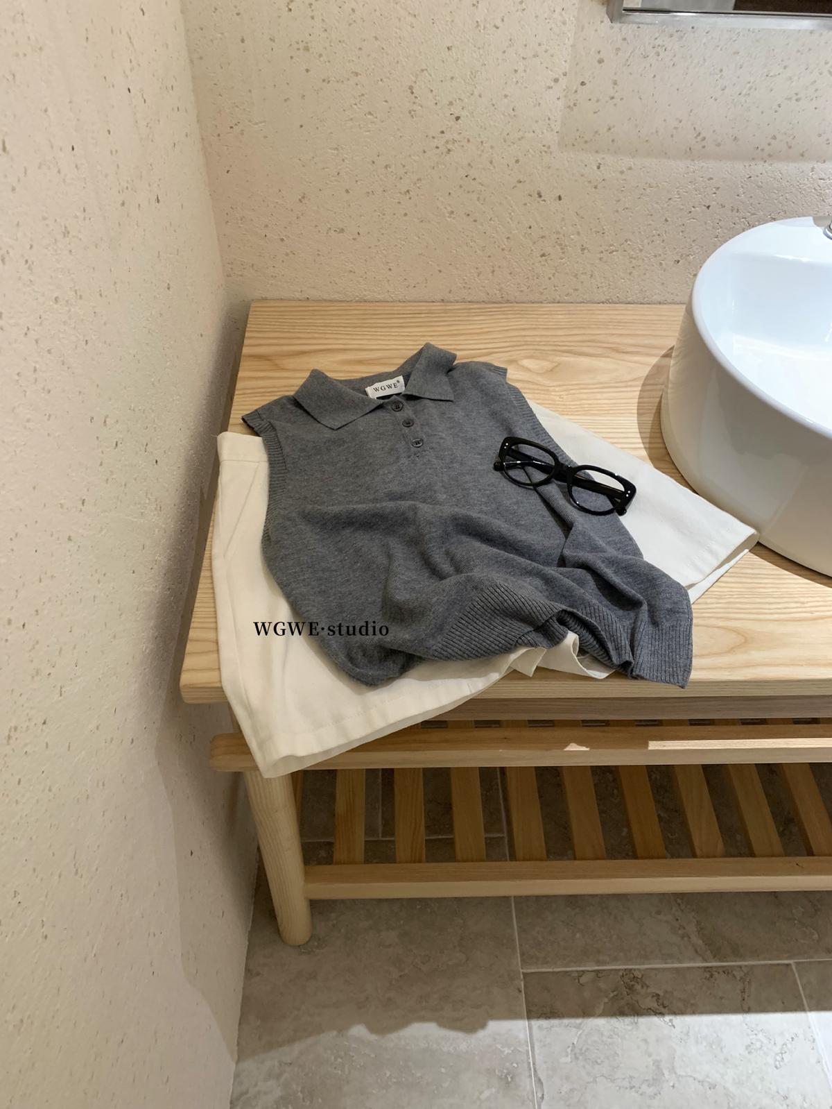 【C6915】通勤百搭polo領針織背心修身氣質設計感上衣針織衫