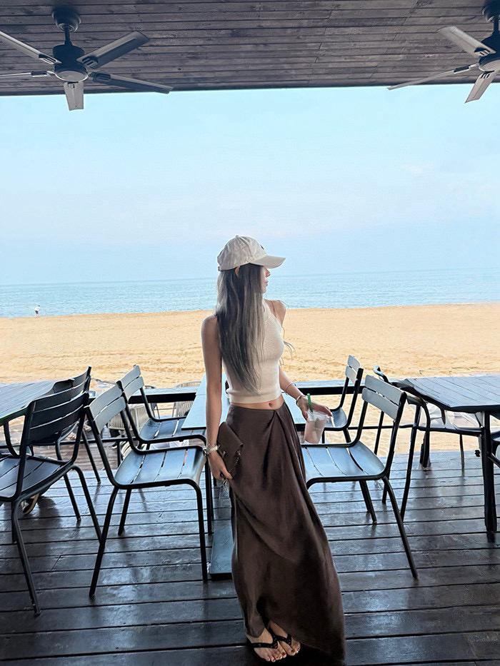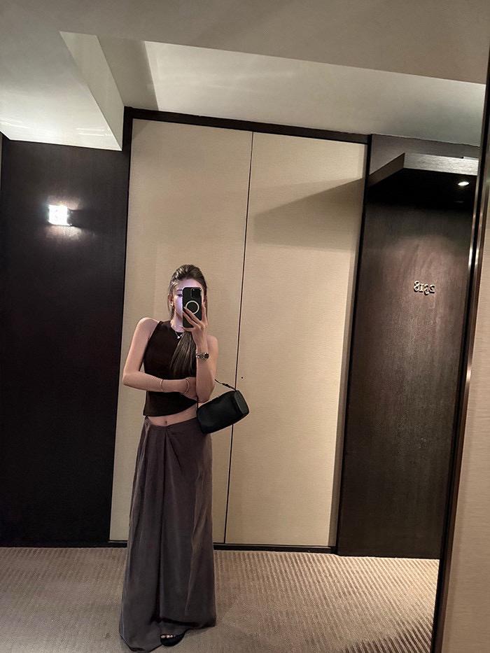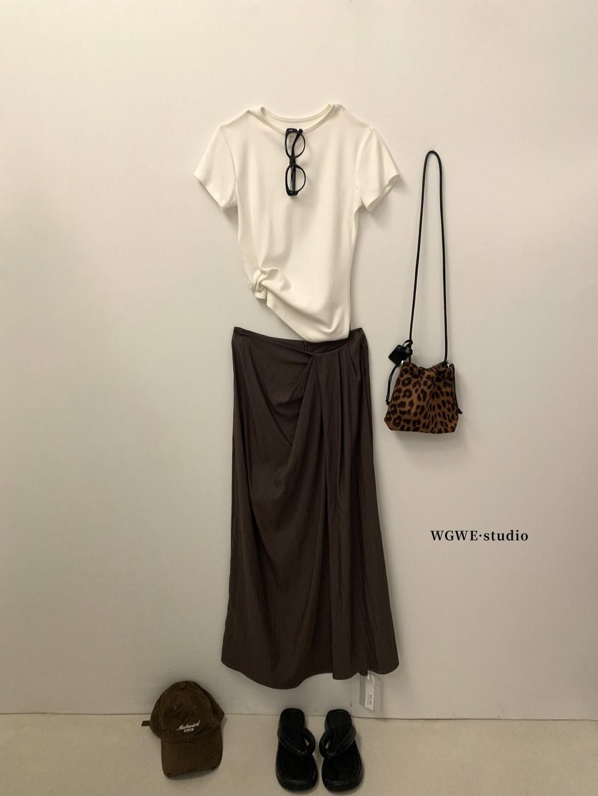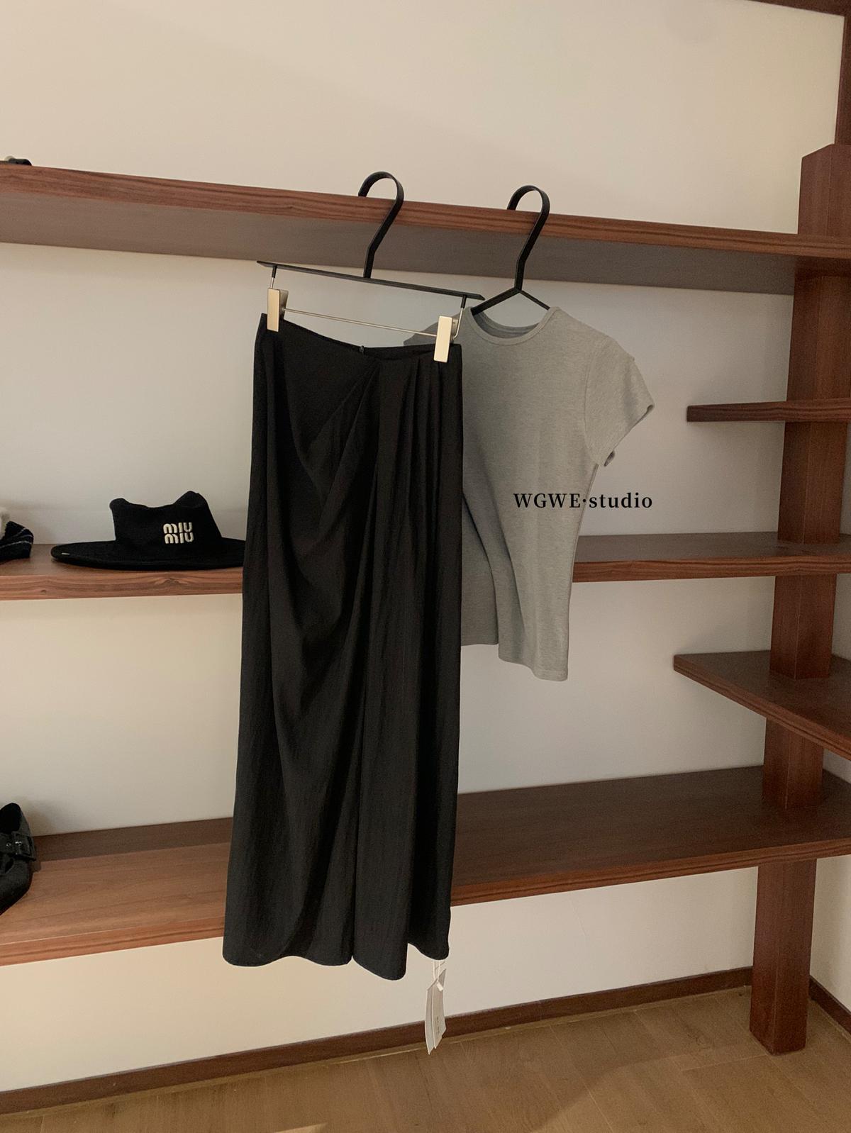 【C6916】疊褶設計感氣質顯白親膚垂墜感直筒半身裙