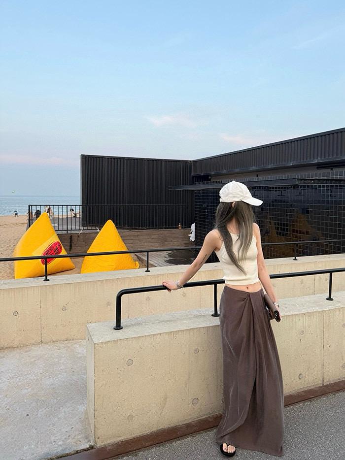 3. 【C6916】疊褶設計感氣質顯白親膚垂墜感直筒半身裙