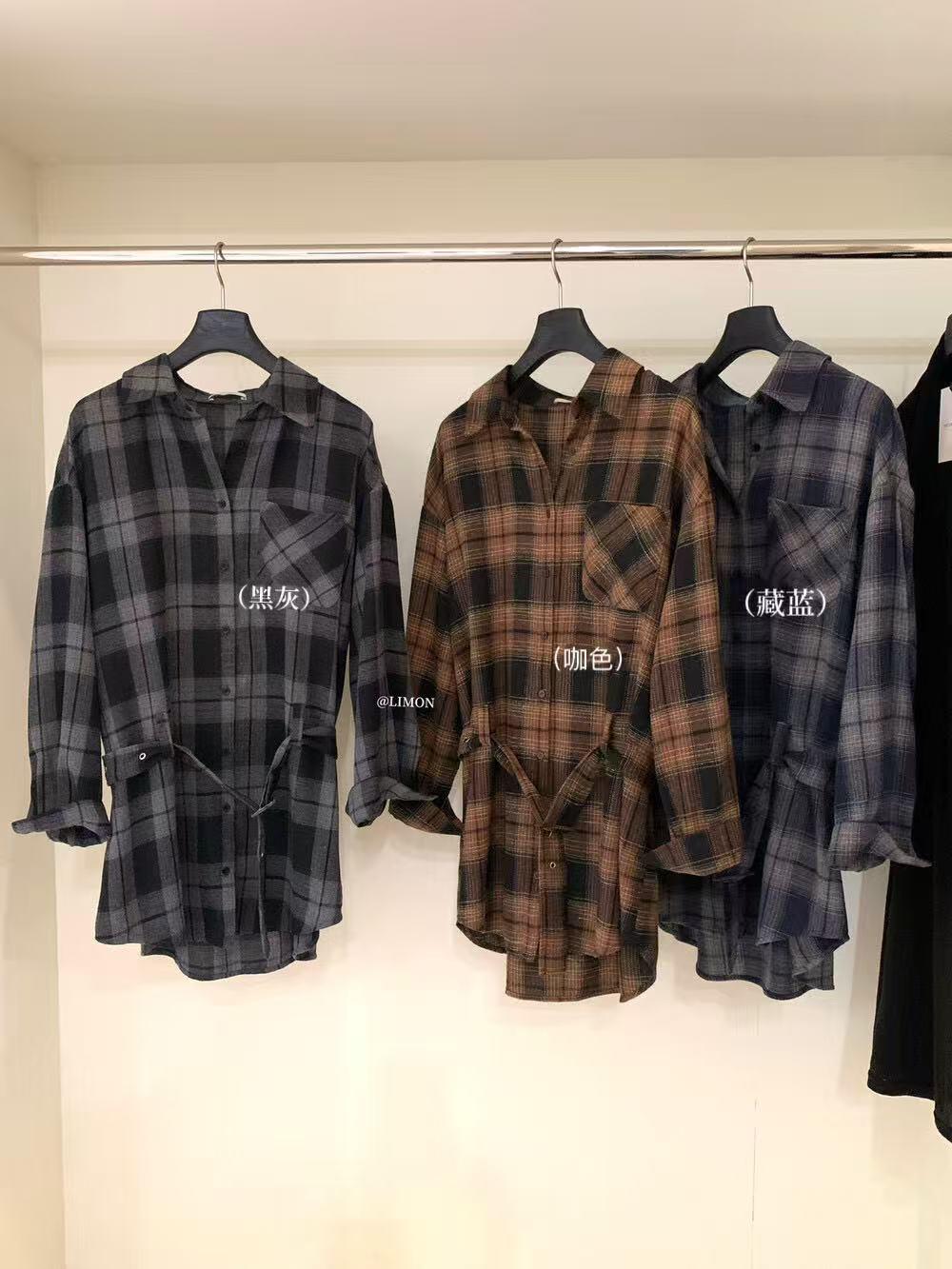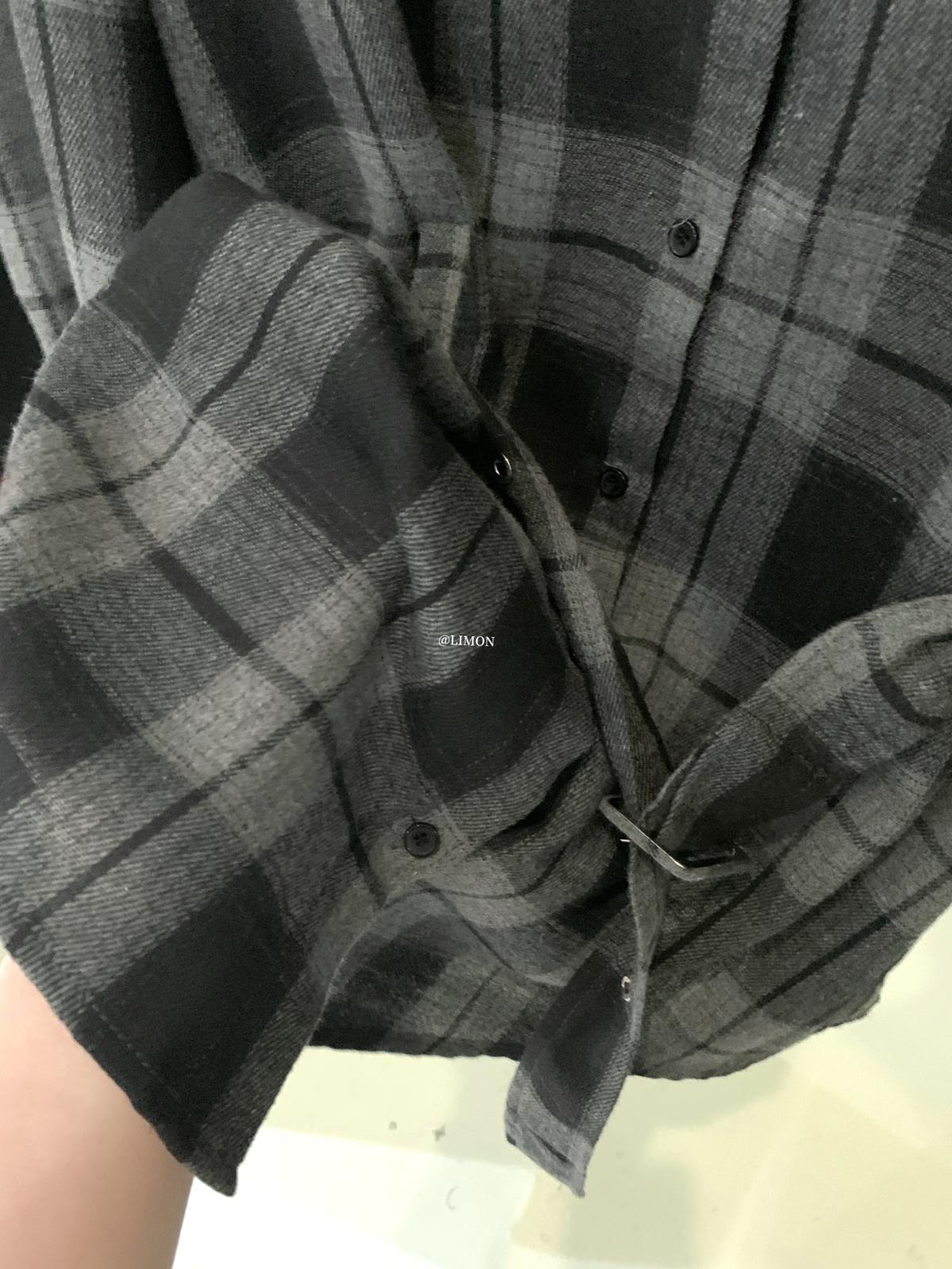 3. 【C6941】復古設計感磨毛格紋襯衫(配腰帶)
