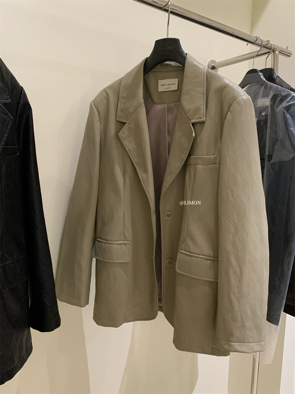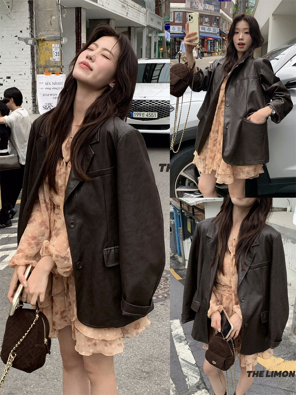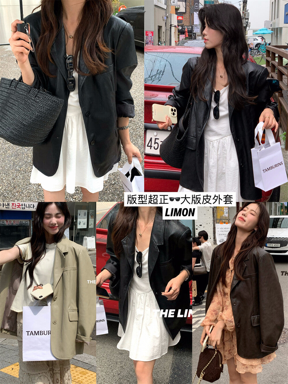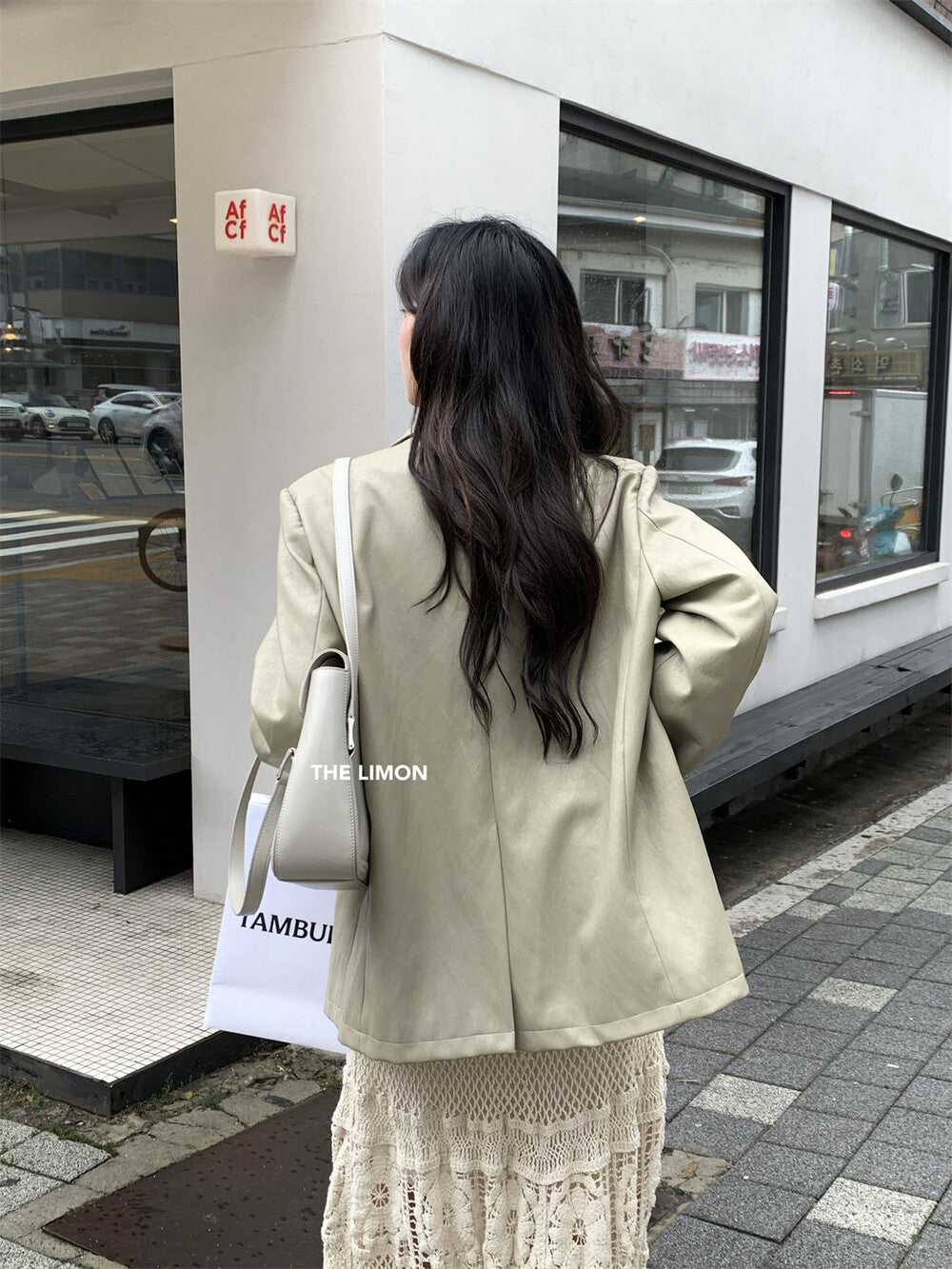 【C6942】高級感寬鬆顯瘦氣質西裝皮衣