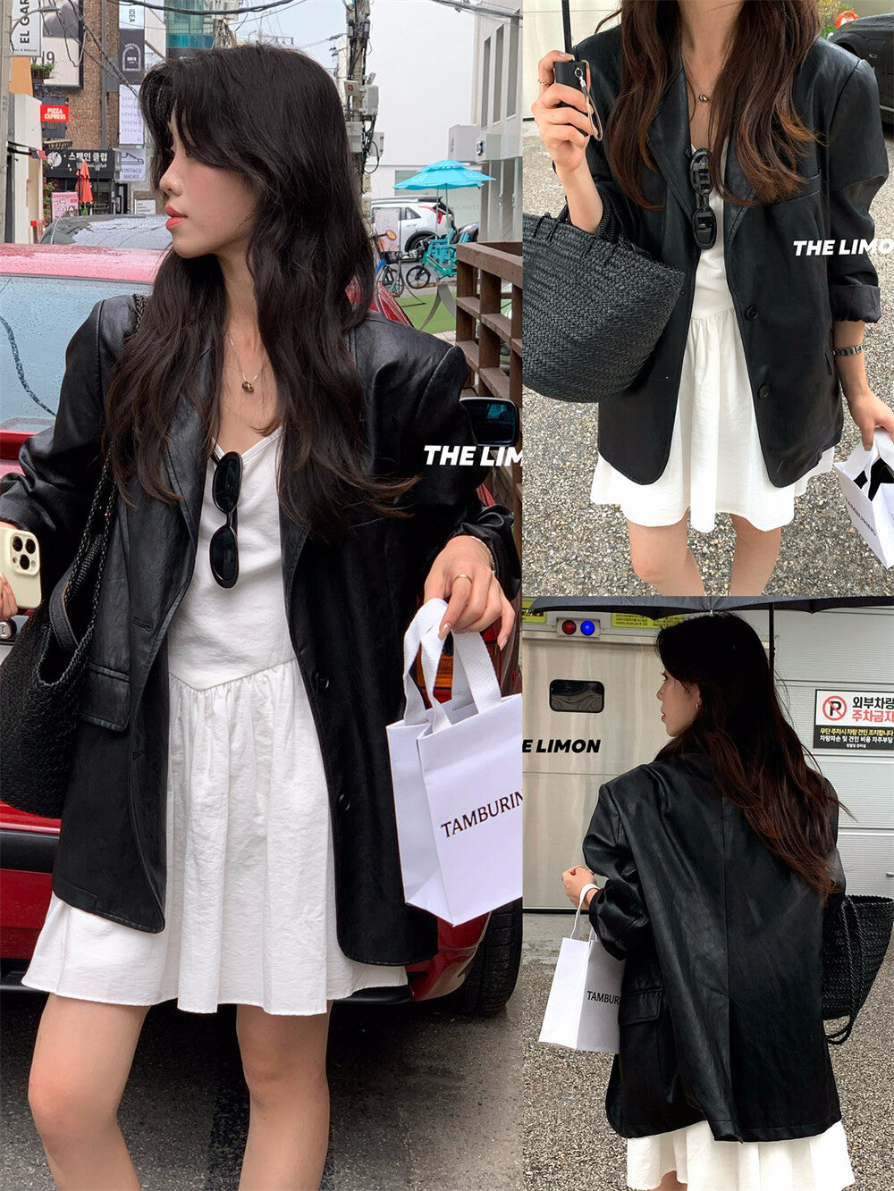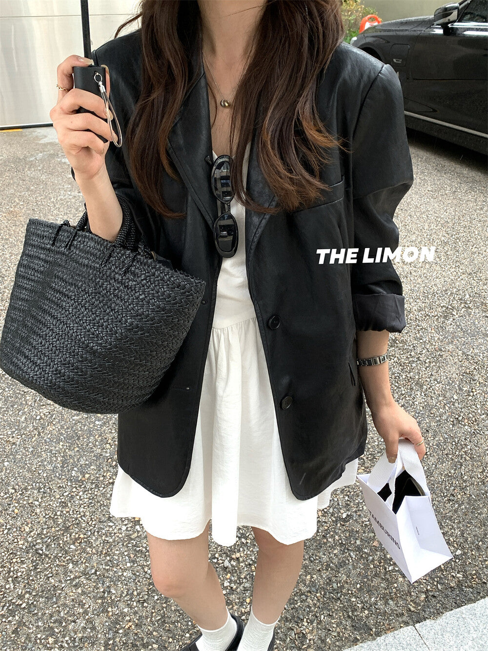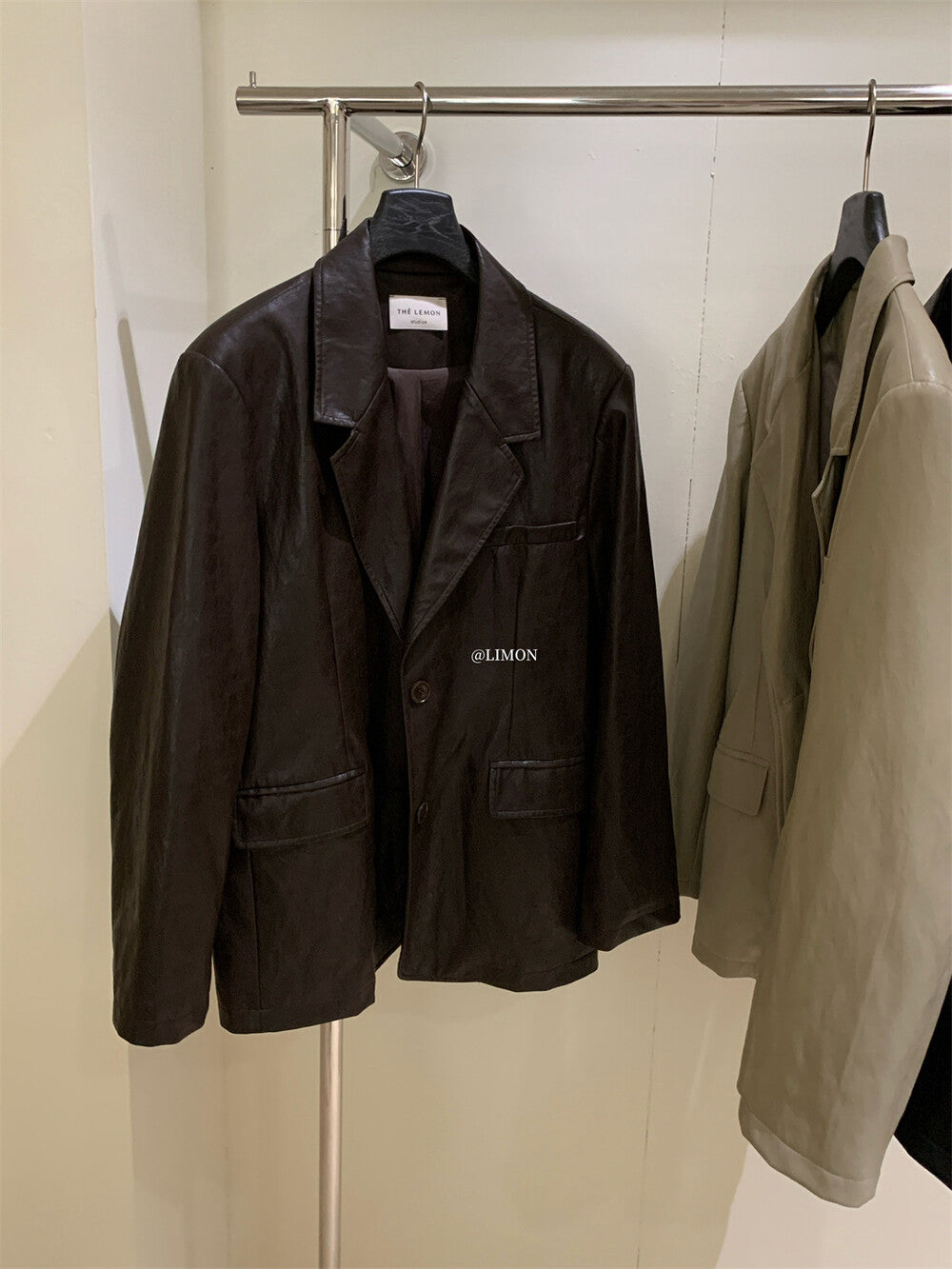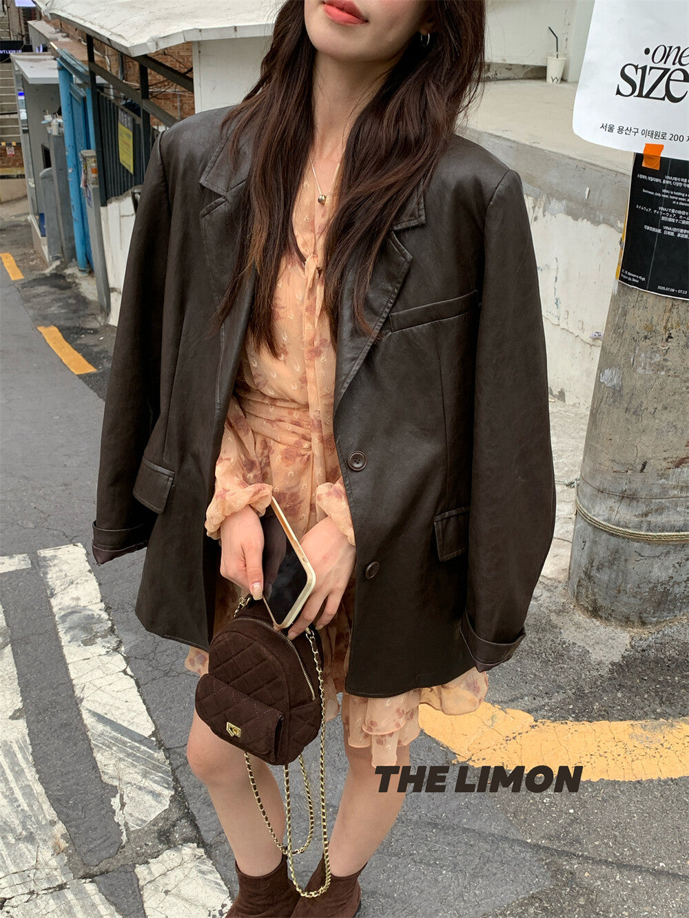 【C6942】高級感寬鬆顯瘦氣質西裝皮衣