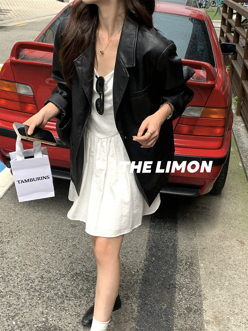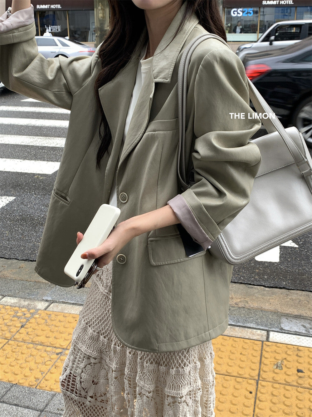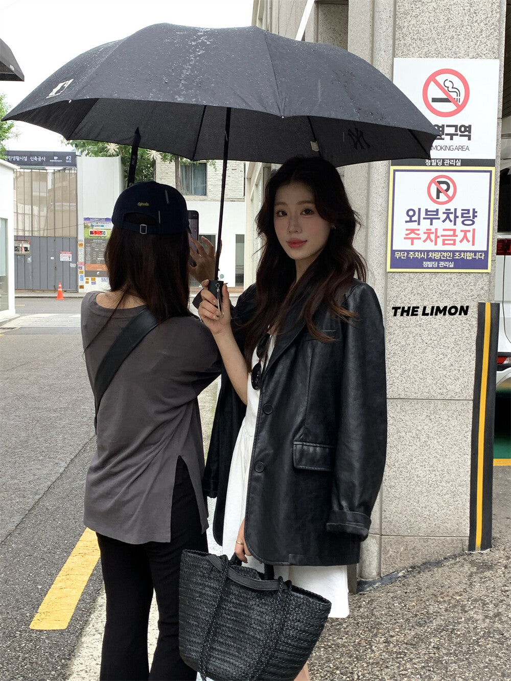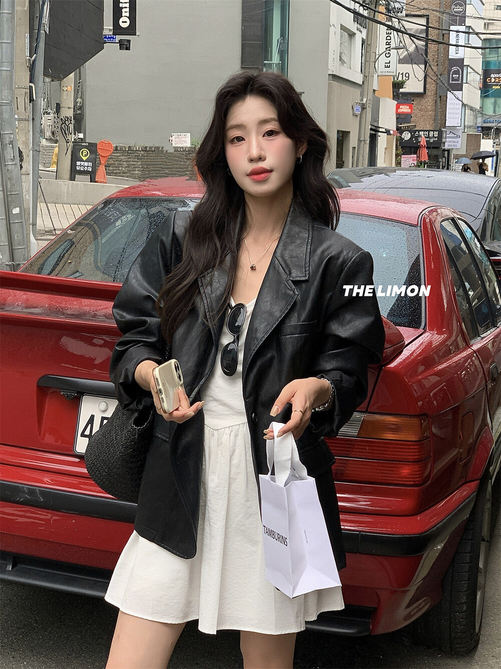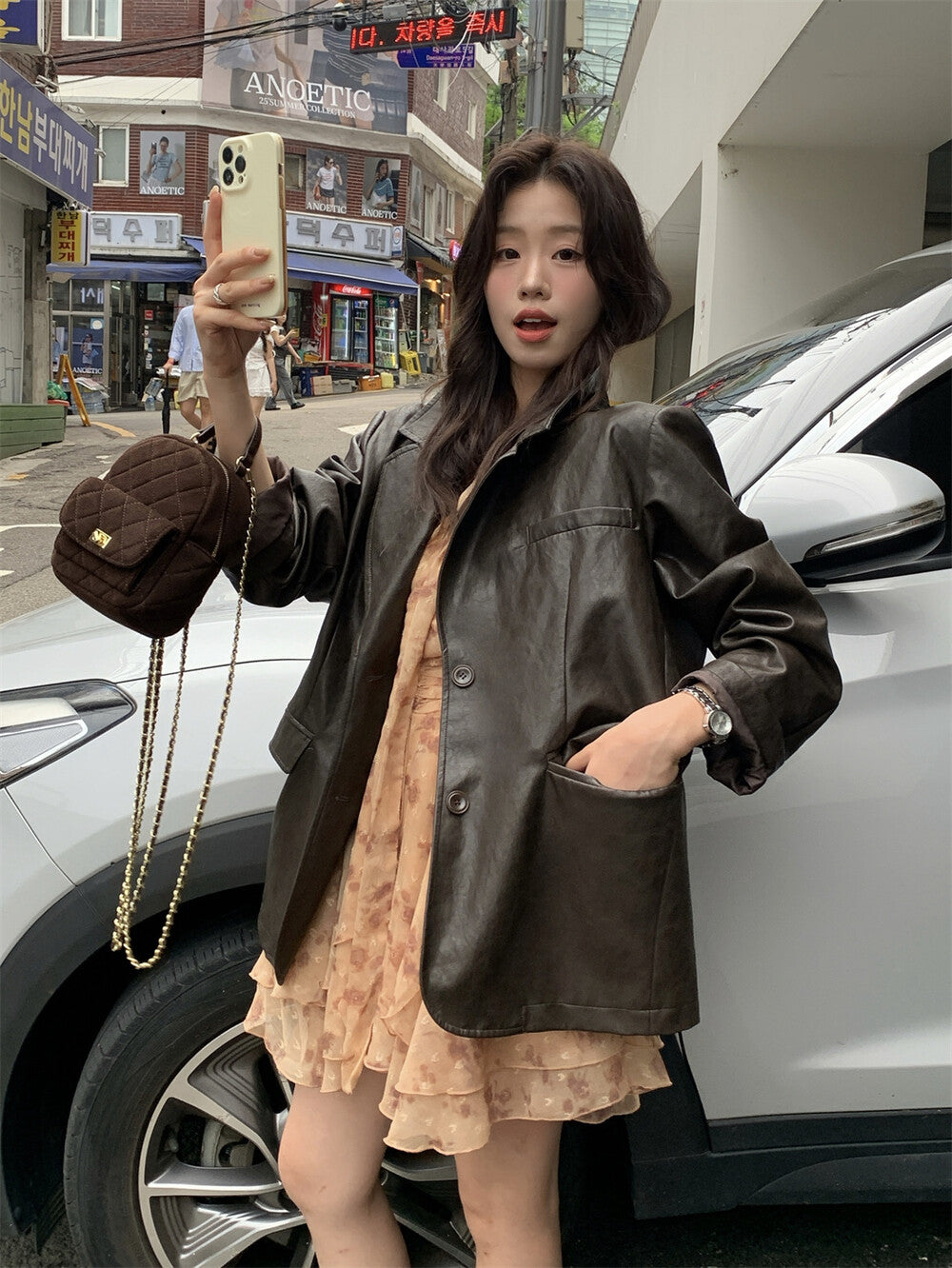 【C6942】高級感寬鬆顯瘦氣質西裝皮衣